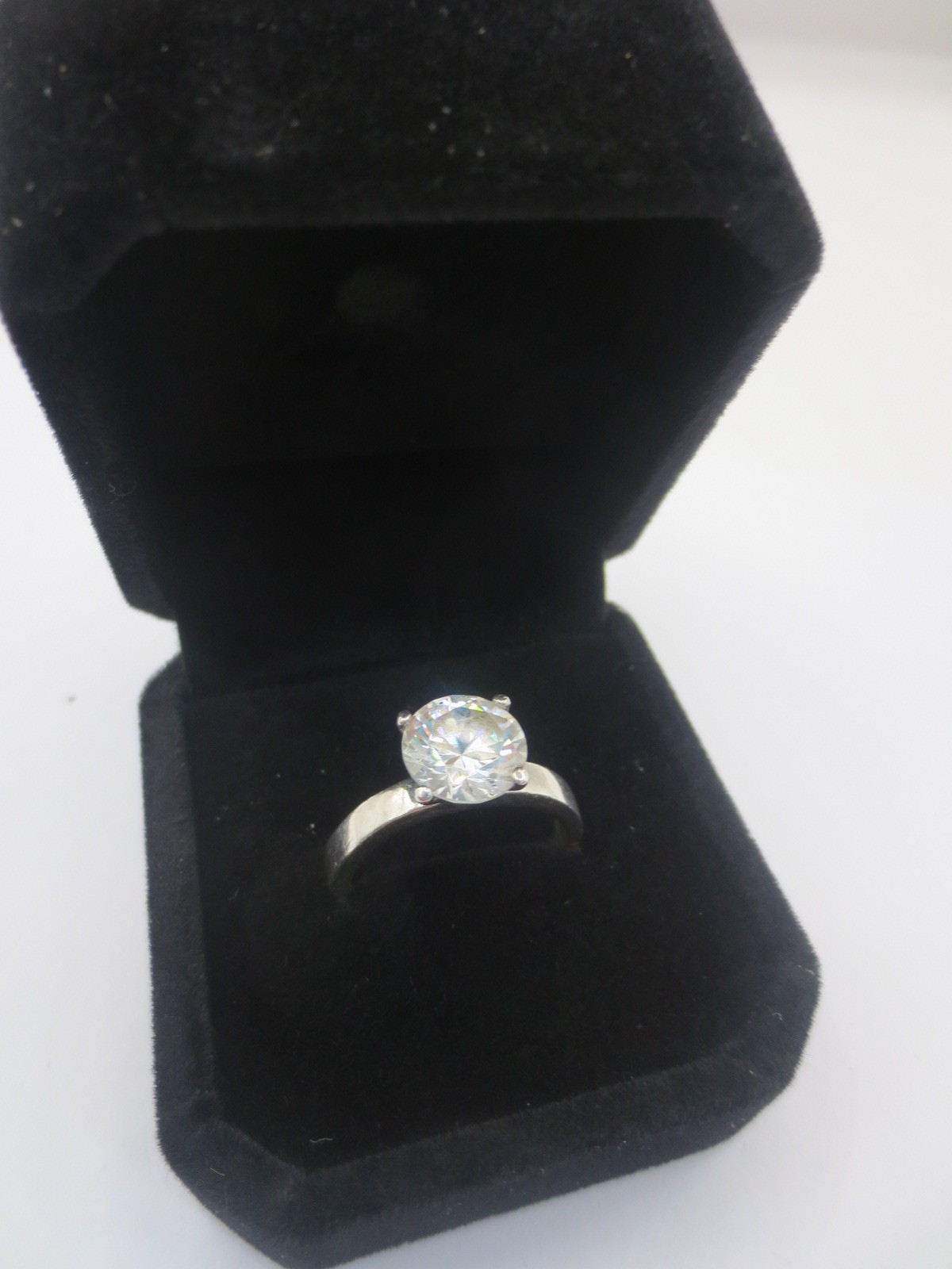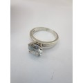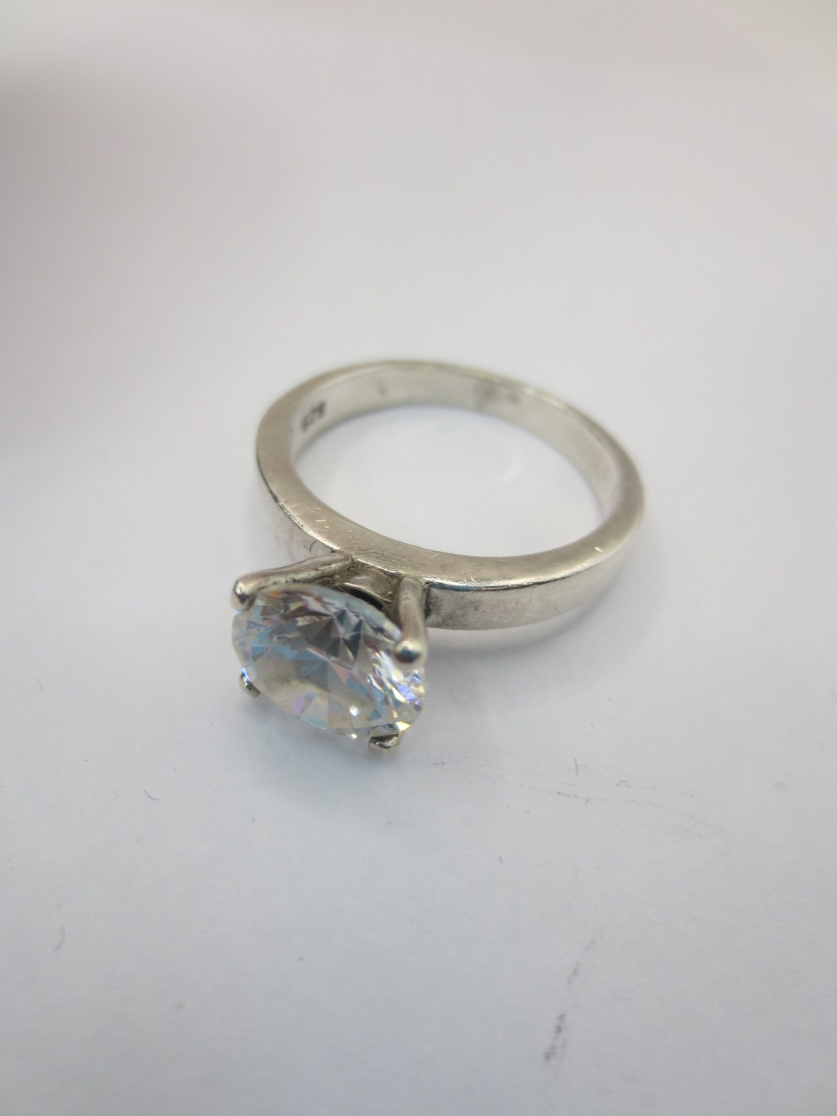 A 925 silver ring set with a solitaire clear stone, approx. 4.9g, ring size R, with a black presentation box
