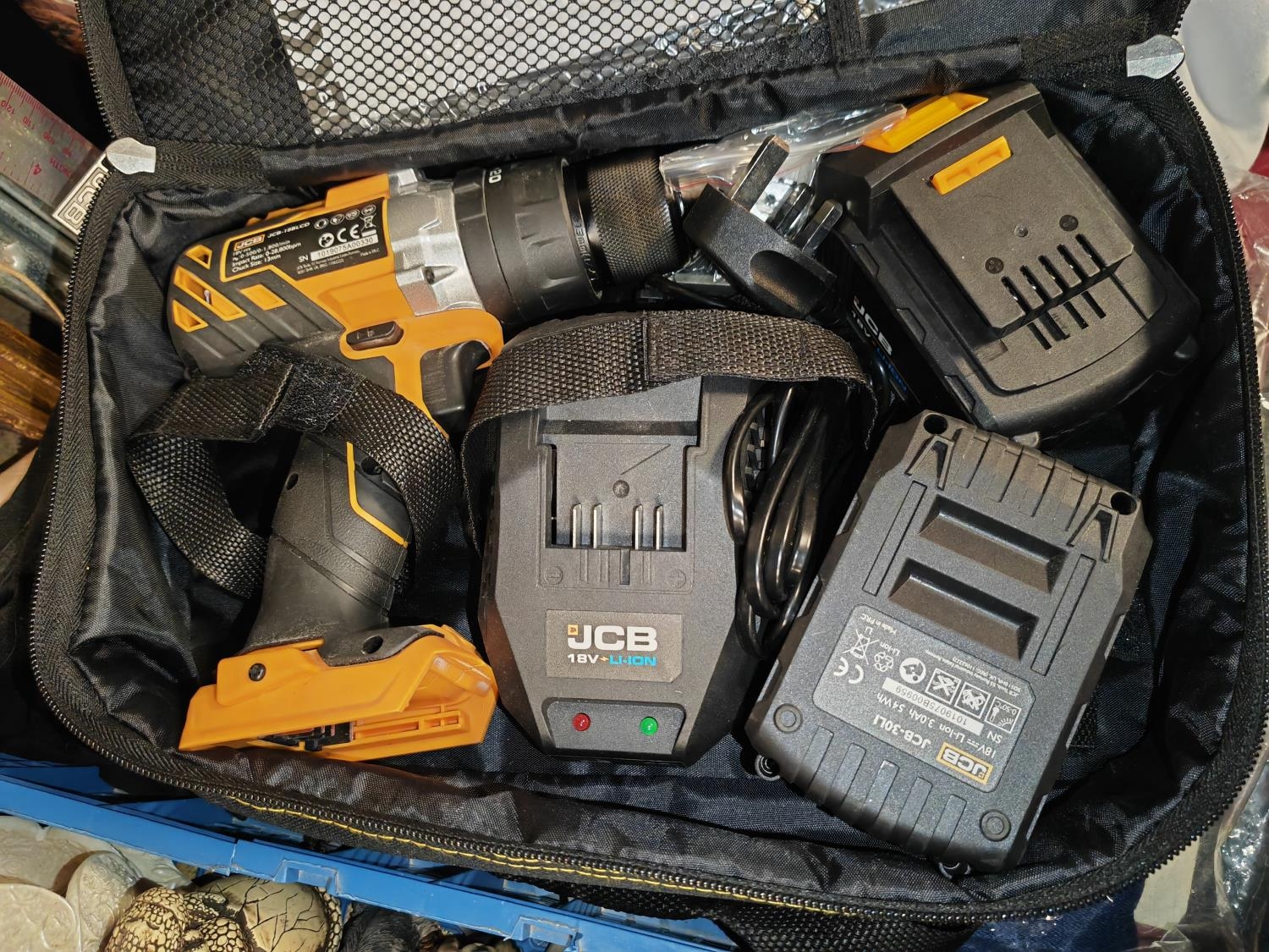 Jcb Cordless Drill With 2 Batteries Plus Charger And Bag Working