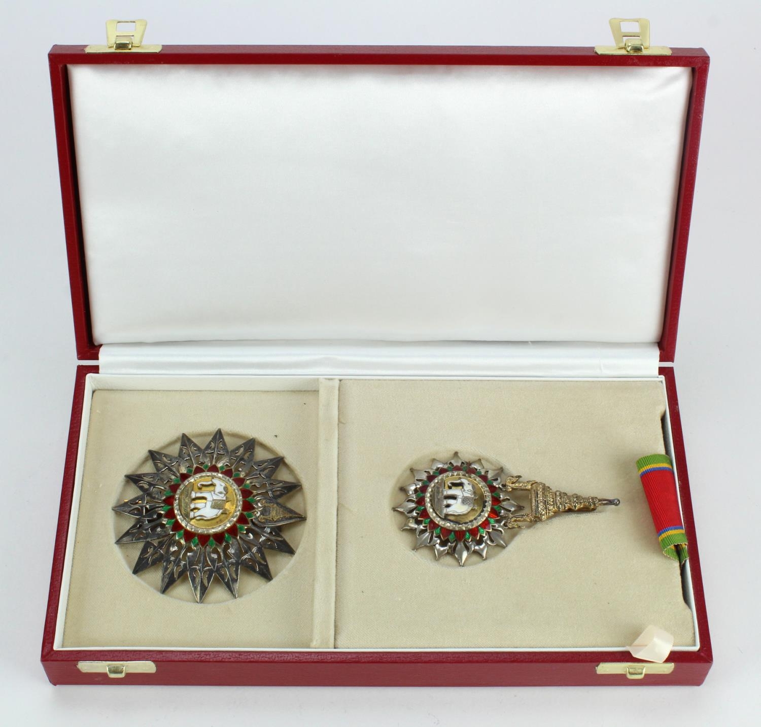 Thailand Order of the White Elephant Knight Commanders set in fitted case with ribbon.