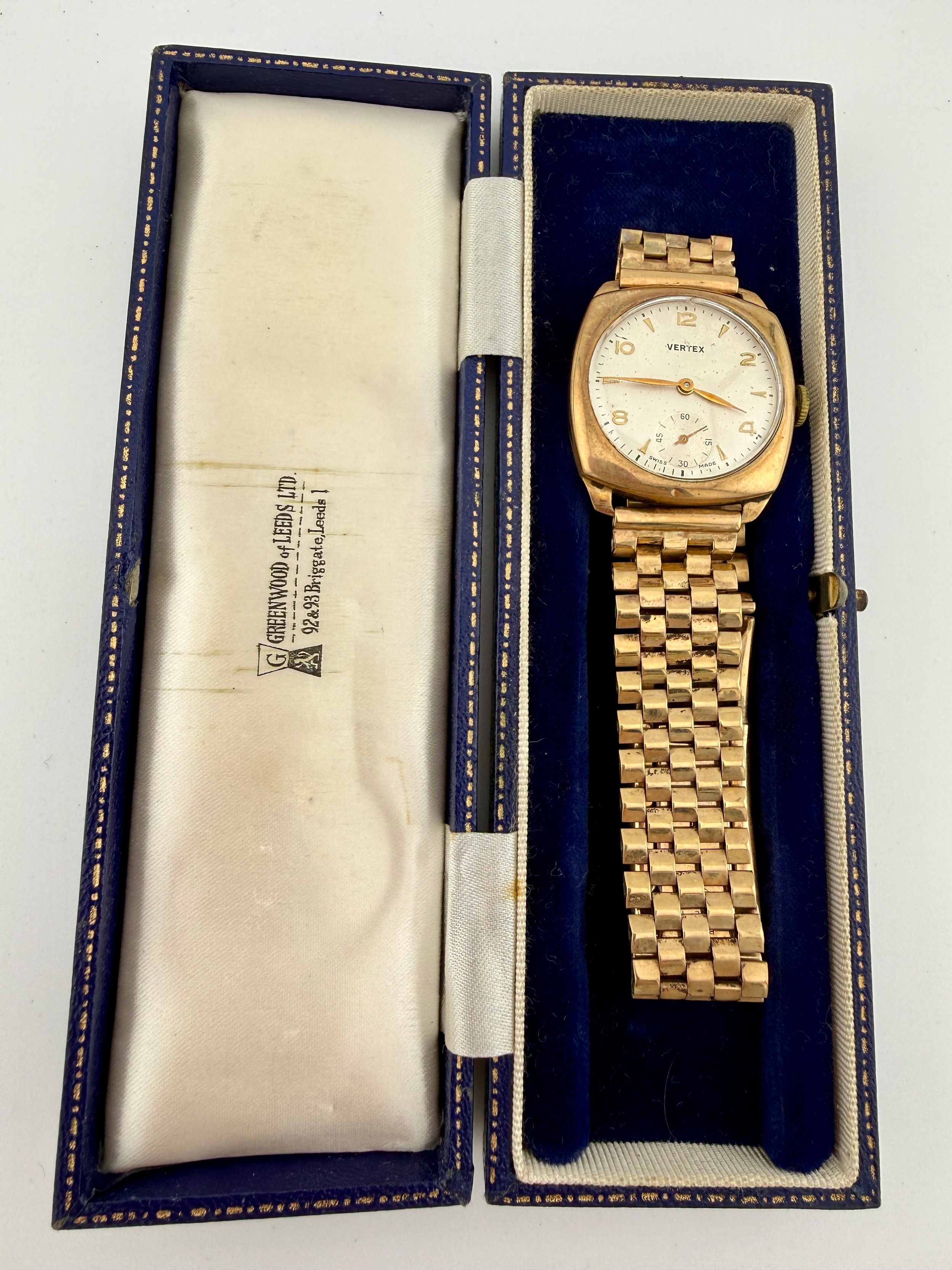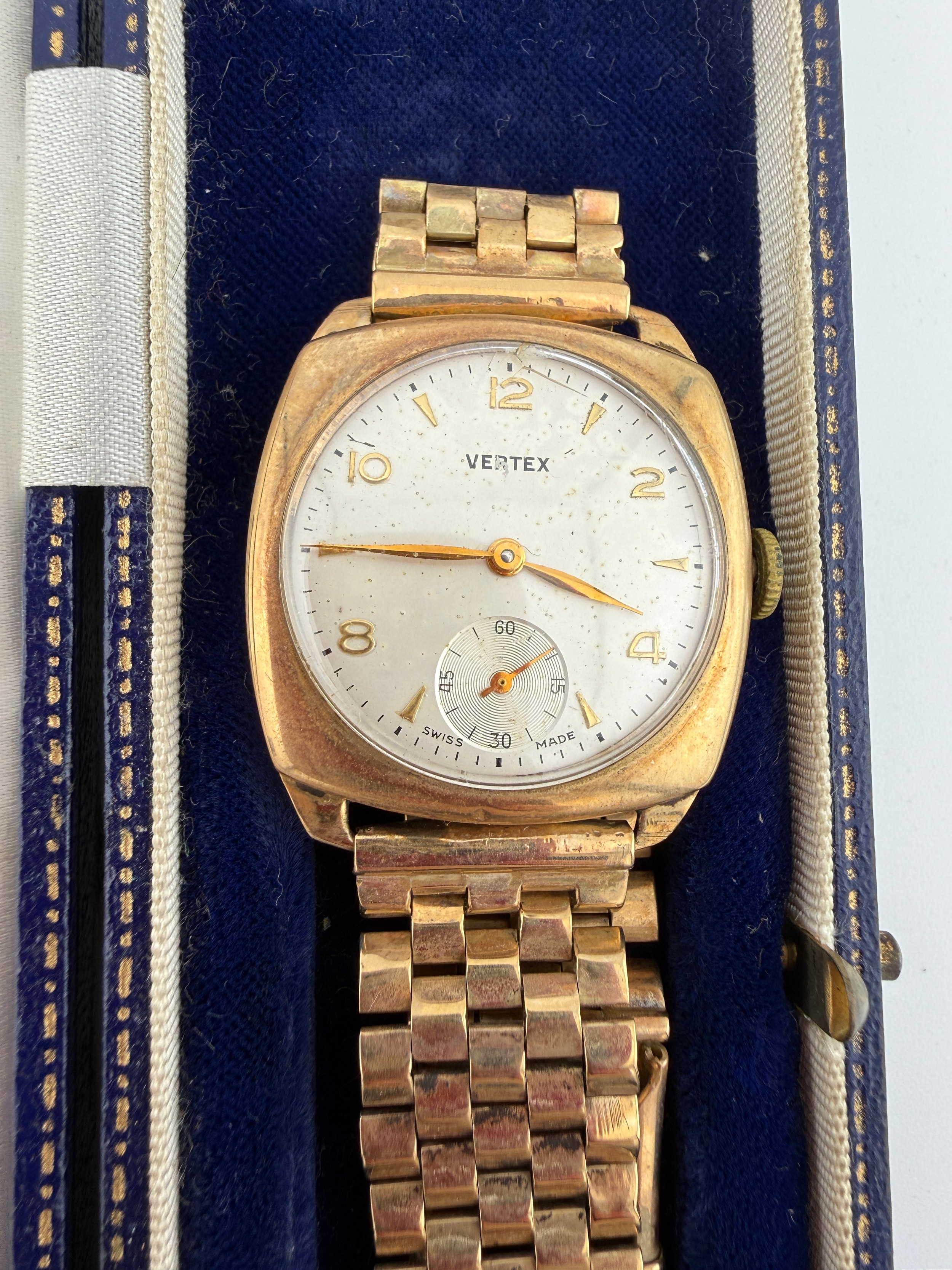 A gentleman’s Vertex 9 carat gold cased wristwatch. Weight 51.5gm.