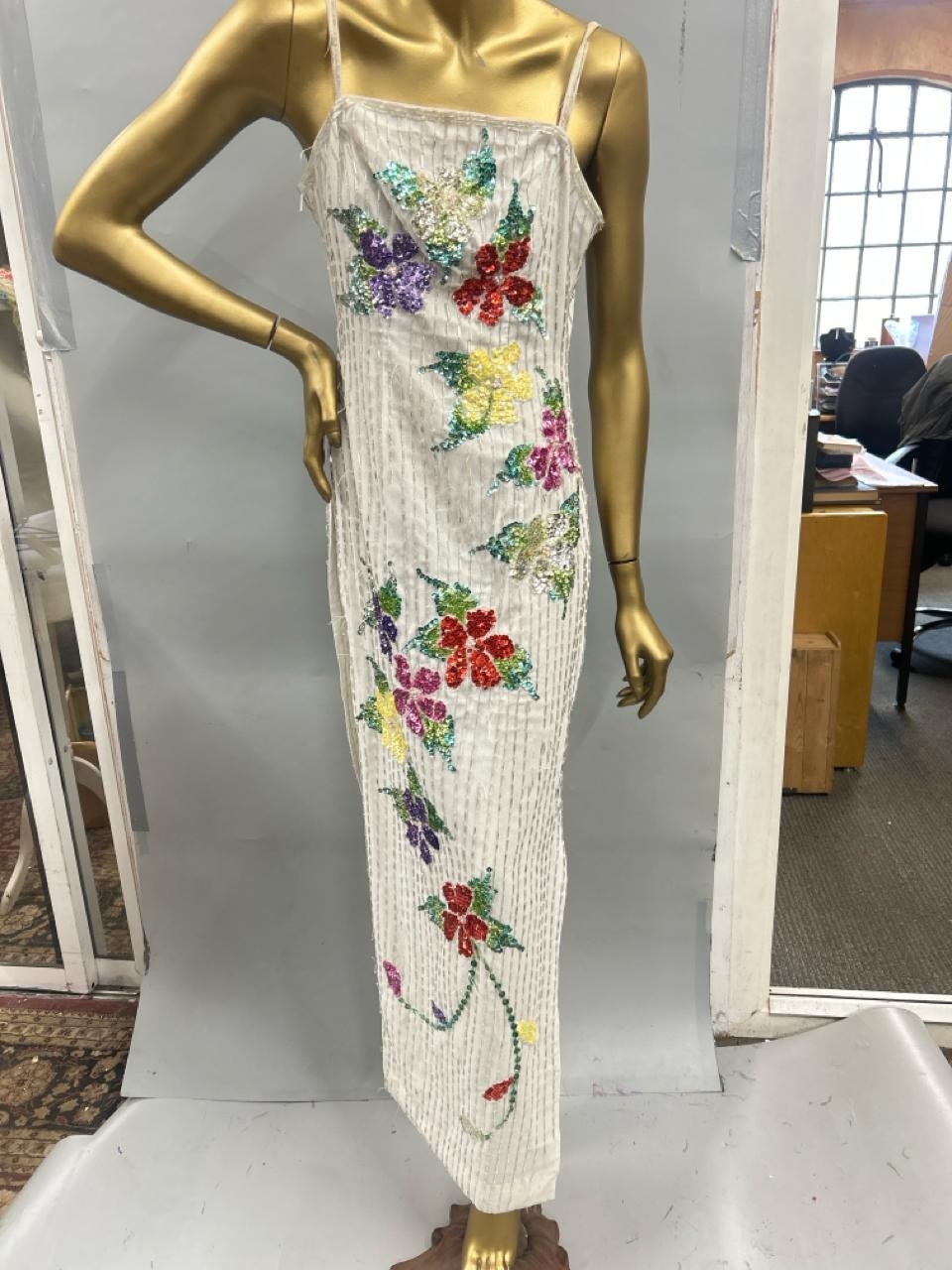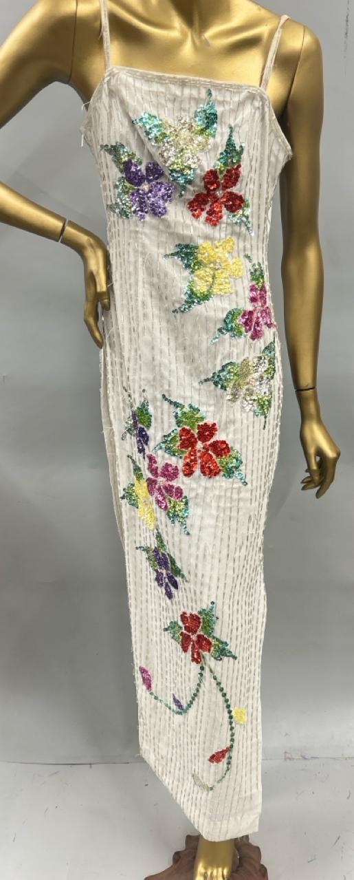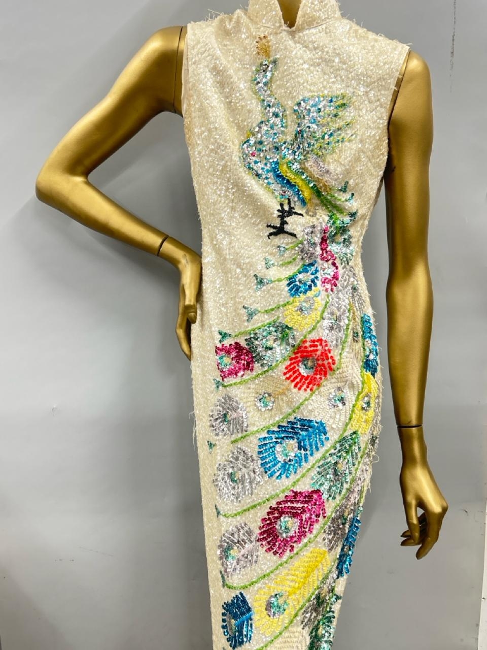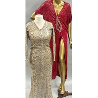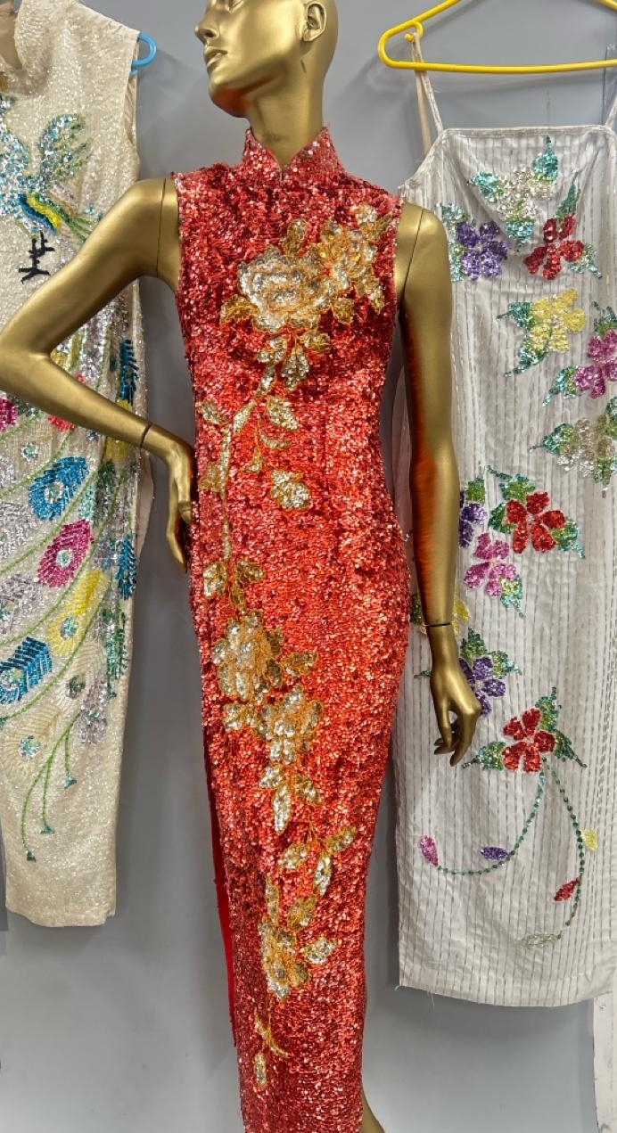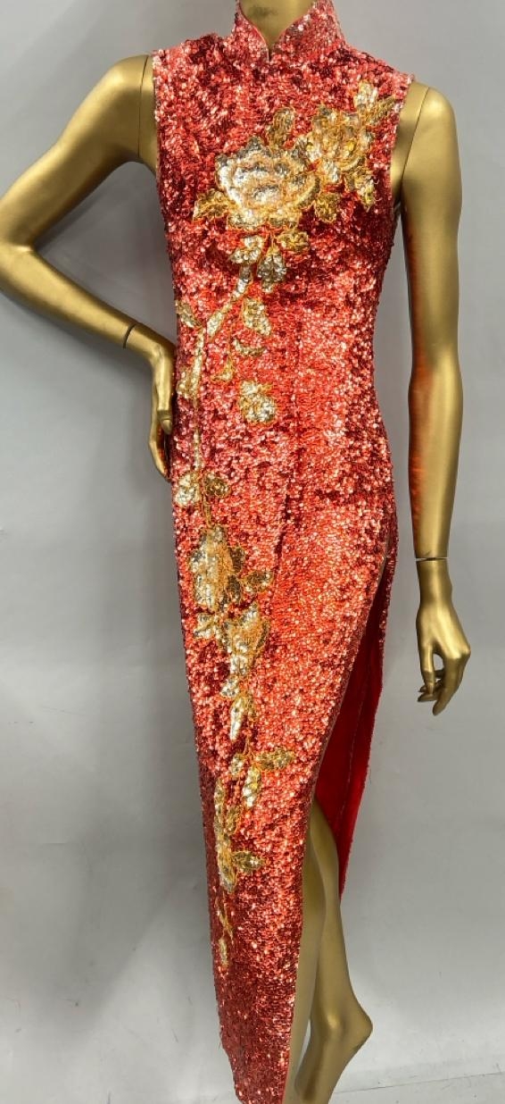 Three stage worn oriental style long sequined dresses / Rail 3