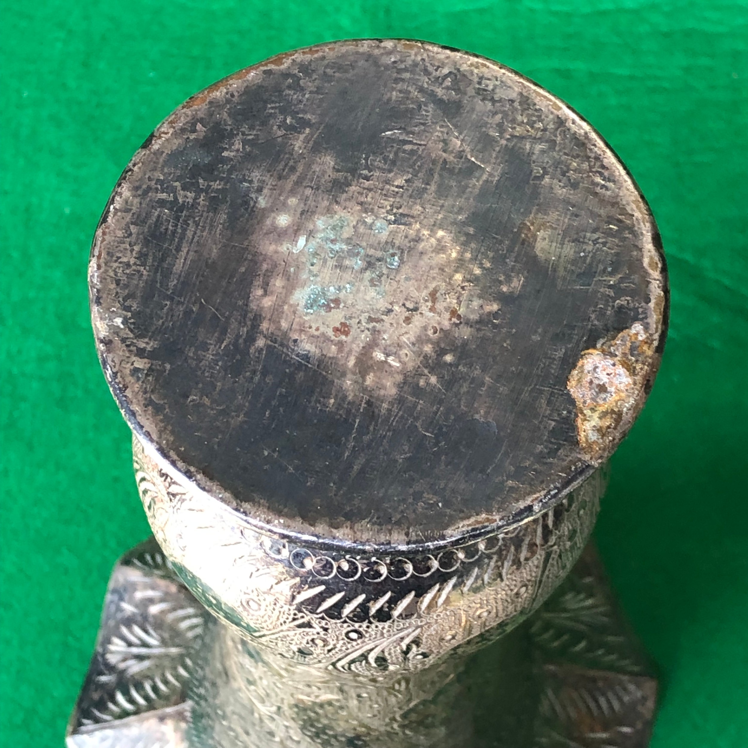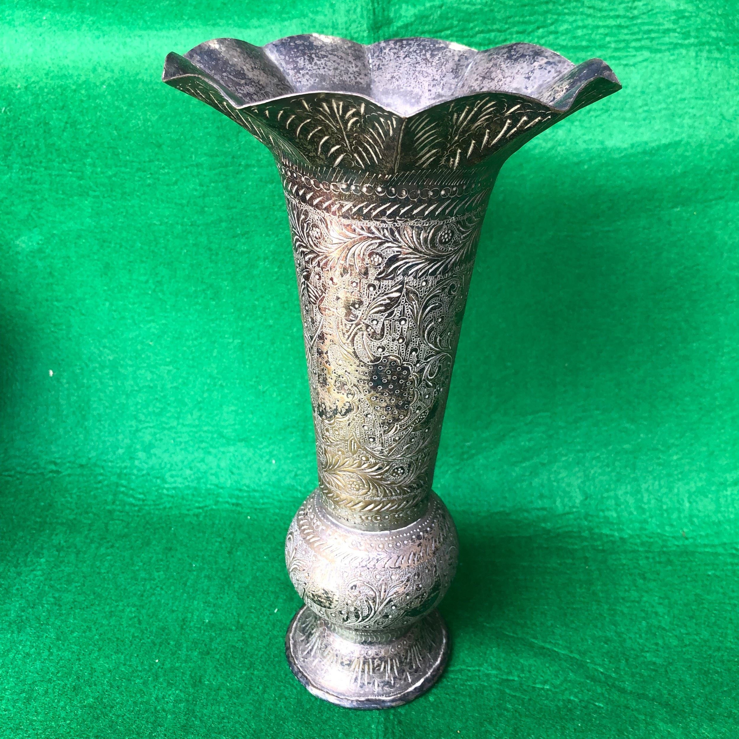 Silver plated on brass. Indian engraved vase