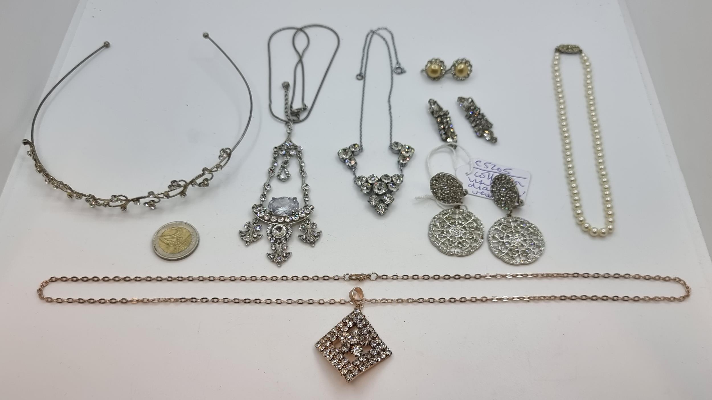 A nice collection of diamante jewellery. Consisting of necklaces, bracelets and earrings (with clasp fittings).