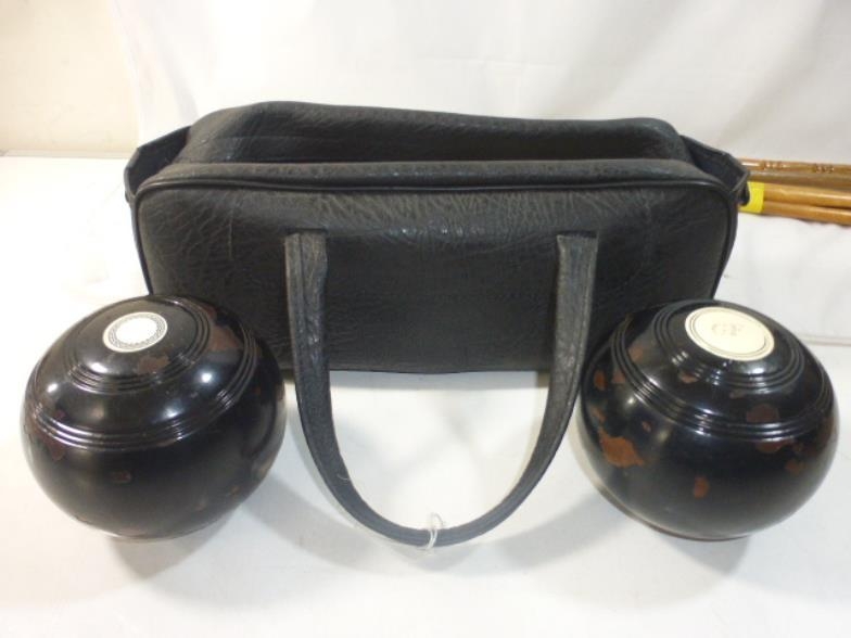 Pair of Crown Green Bowls in Case