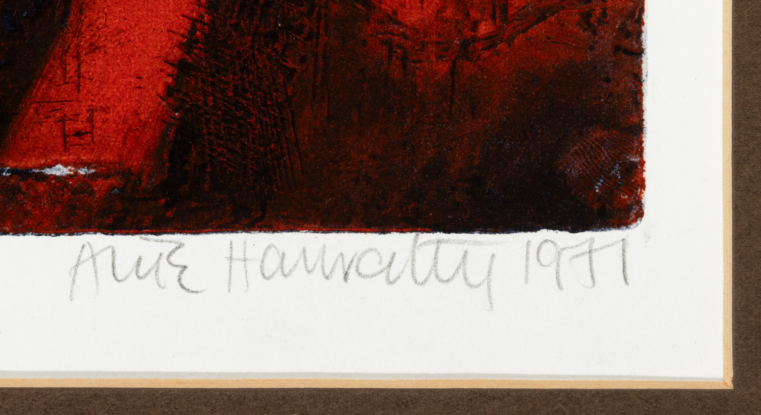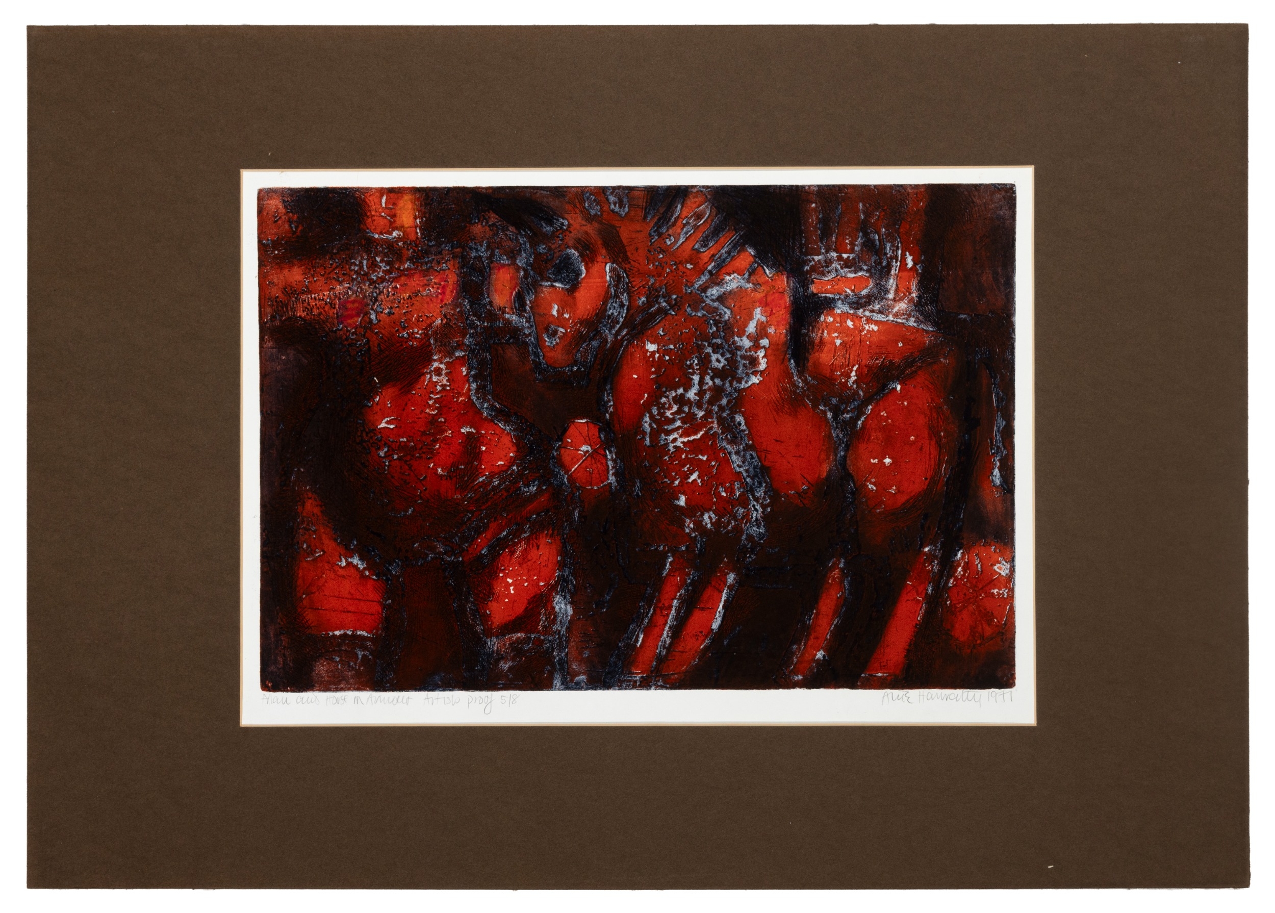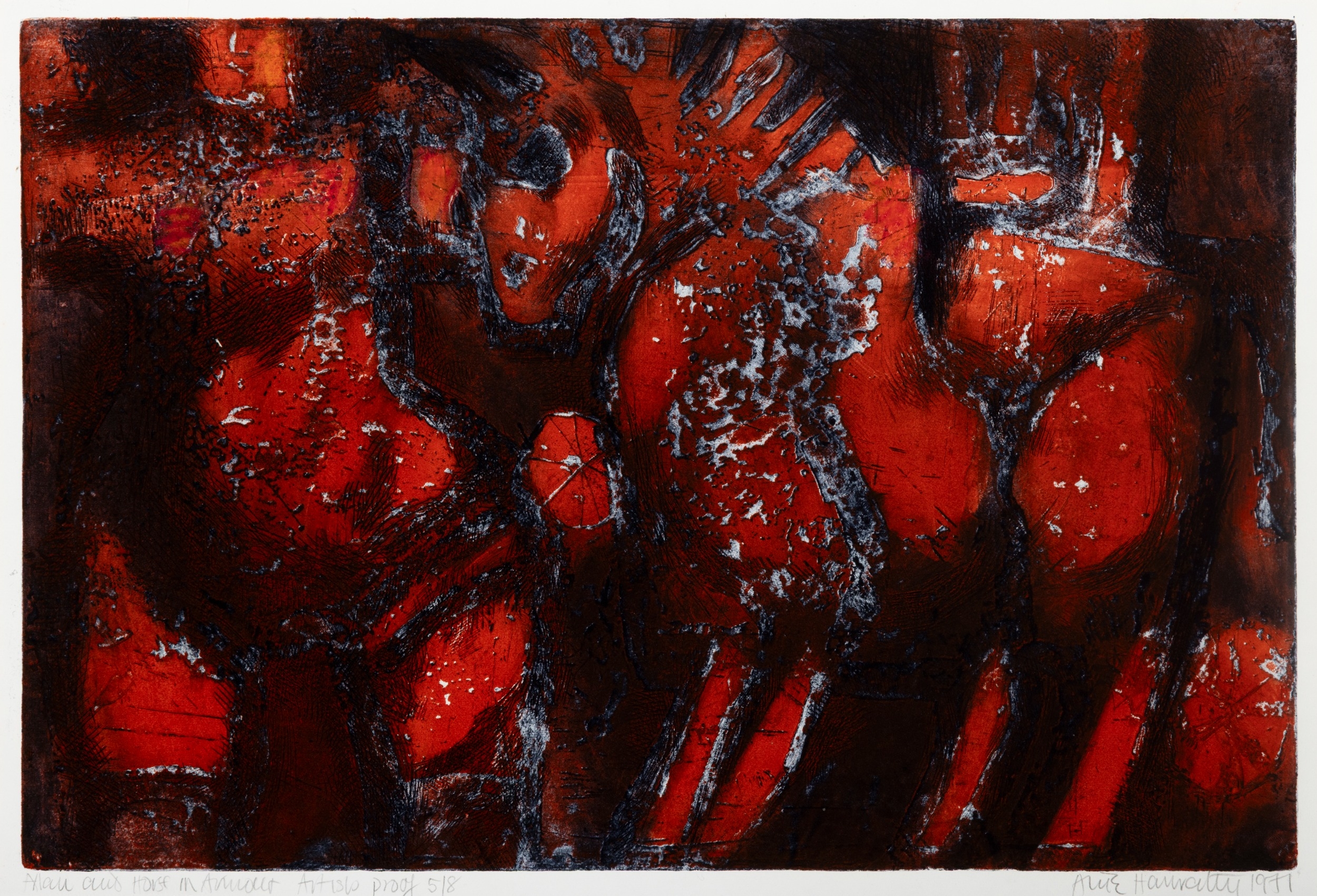 Alice Hanratty (1939-2025) Man and Horse Etching and aquatint, 33.5 x 47.5cm Signed, dated 1971, inscribed and numbered 5/8 Unframed