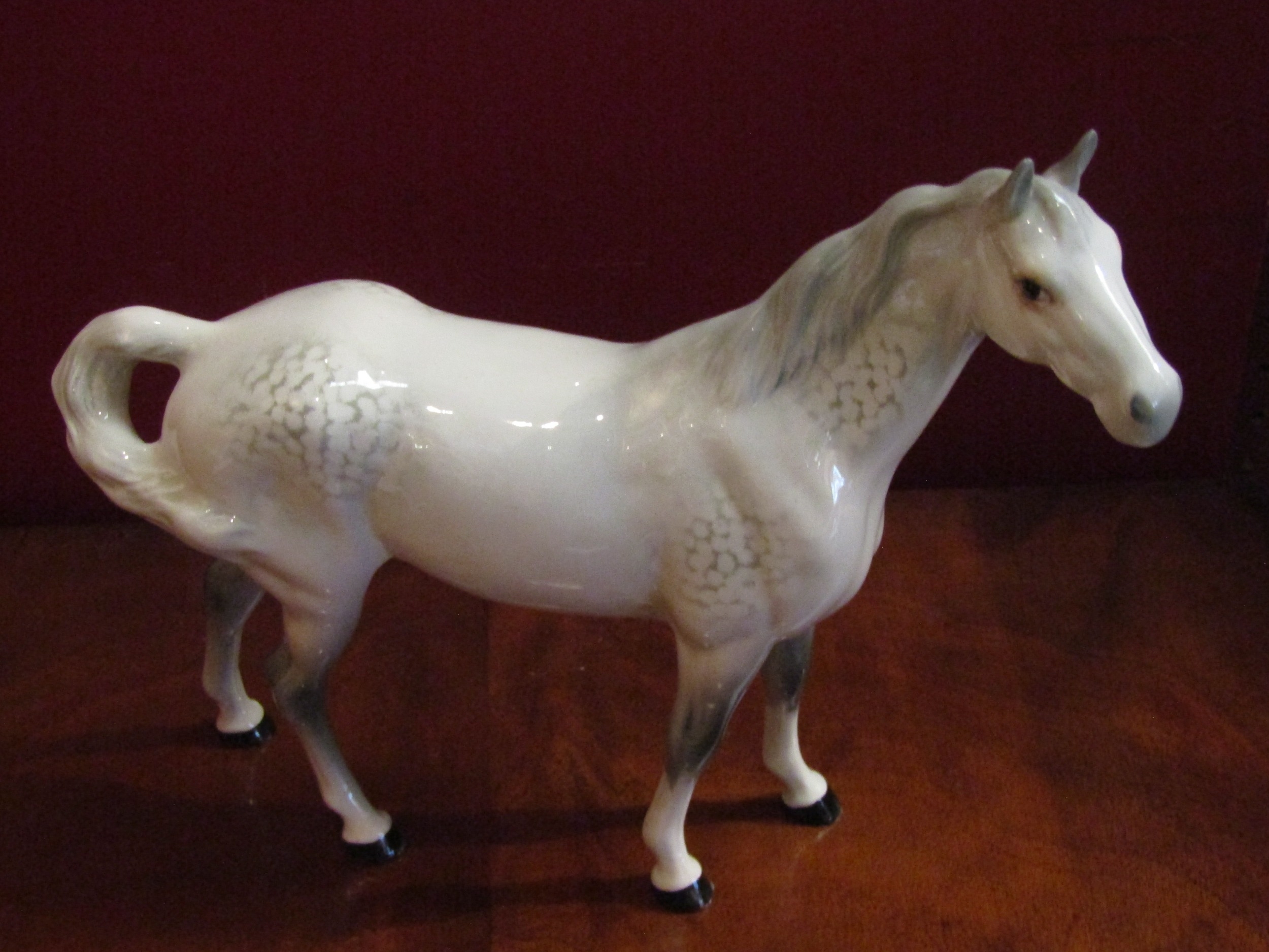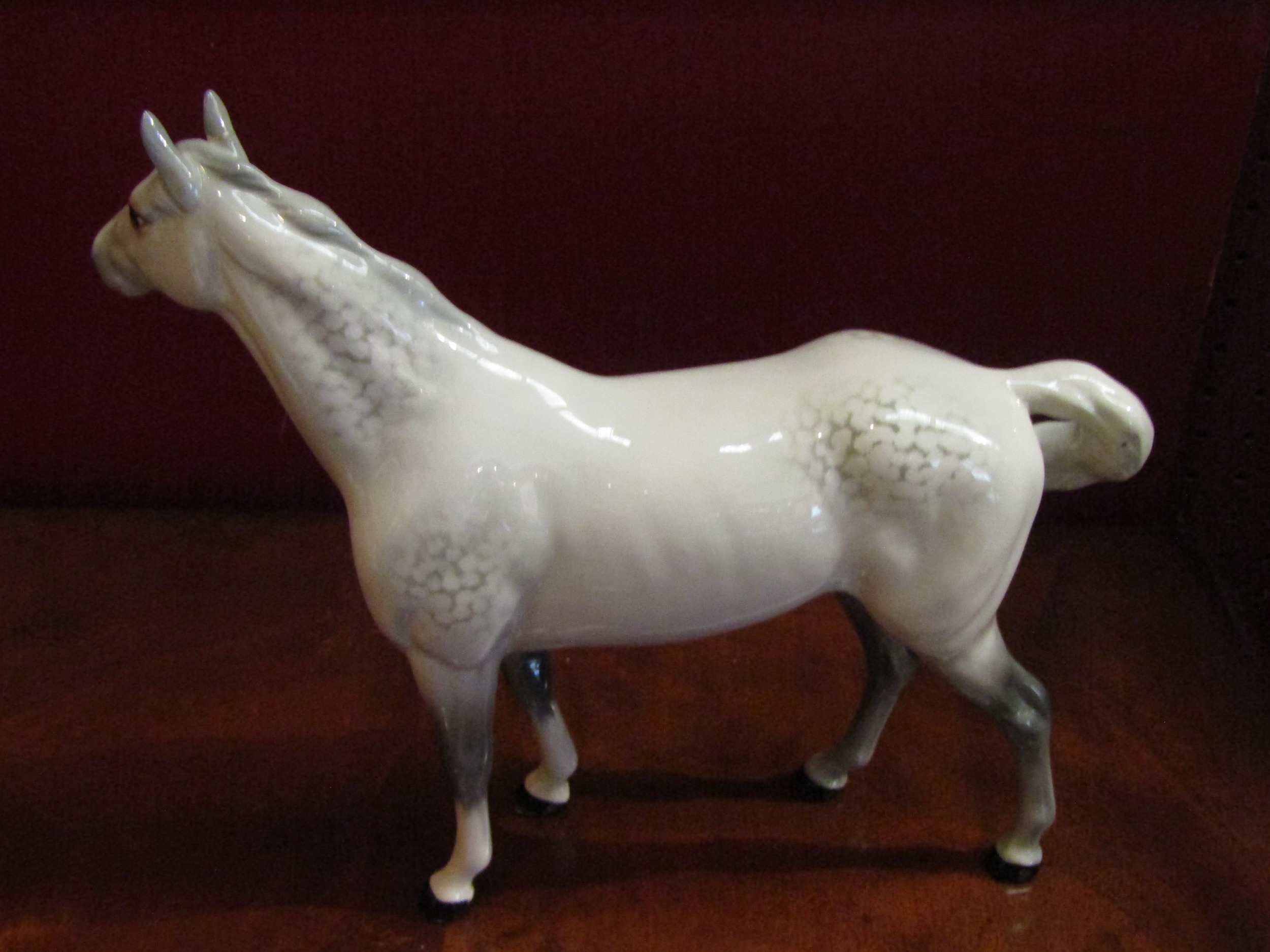A Beswick swish tail horse in grey gloss, glue repair to ear