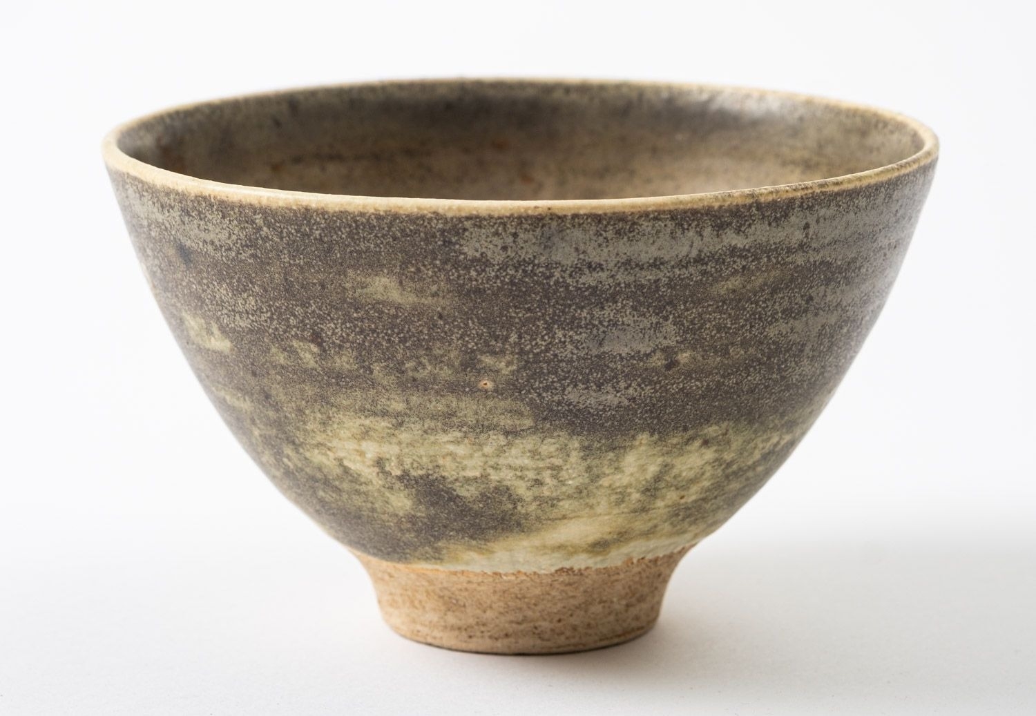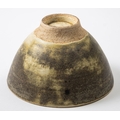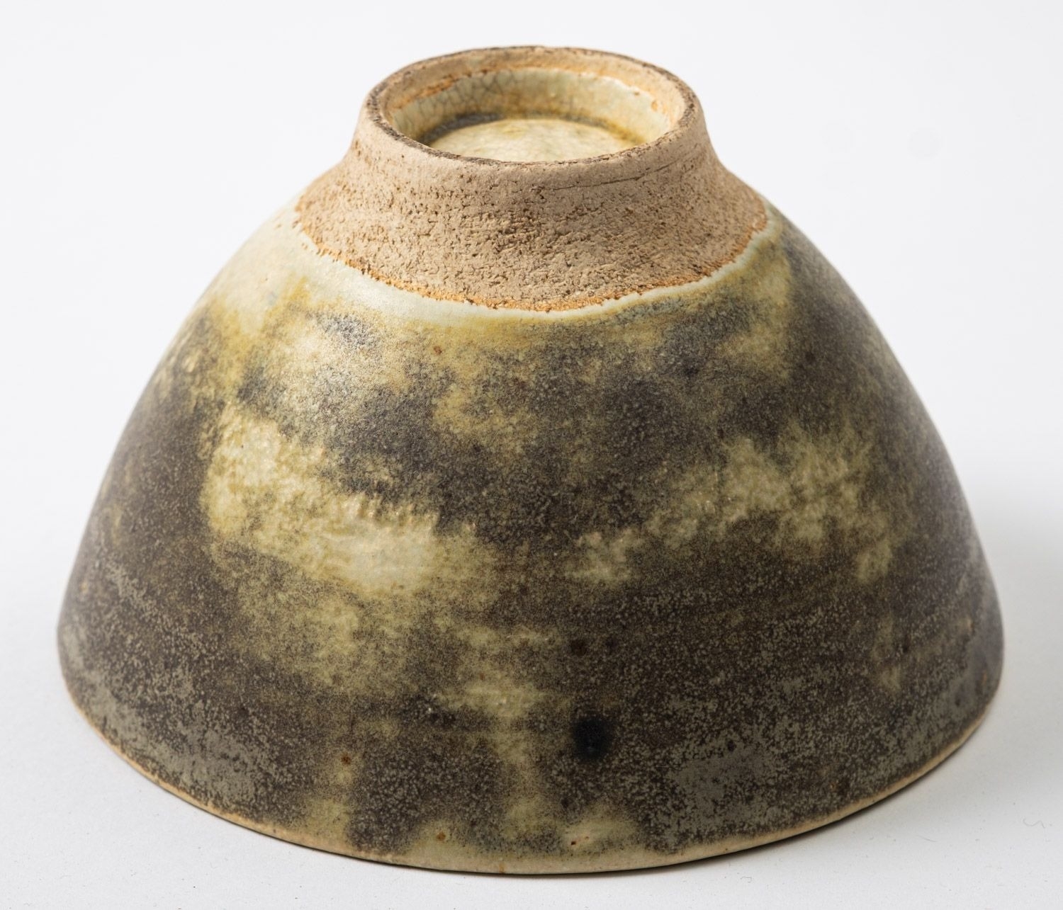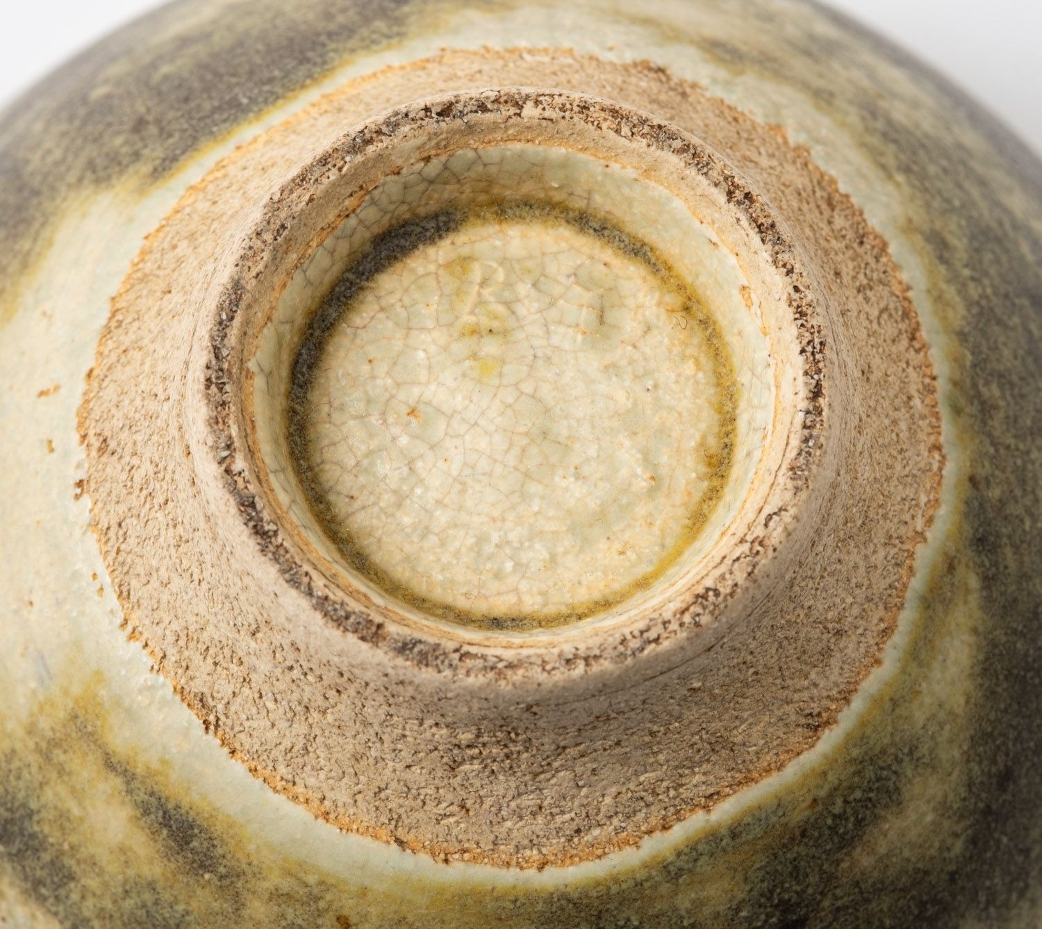 *Dame Lucie Rie DBE [1902-1995] and Hans Coper [1920 - 1981] a stoneware footed bowl, with muted grey green exterior and grey brown interior, impressed personal seals, 14.5cm diameter.