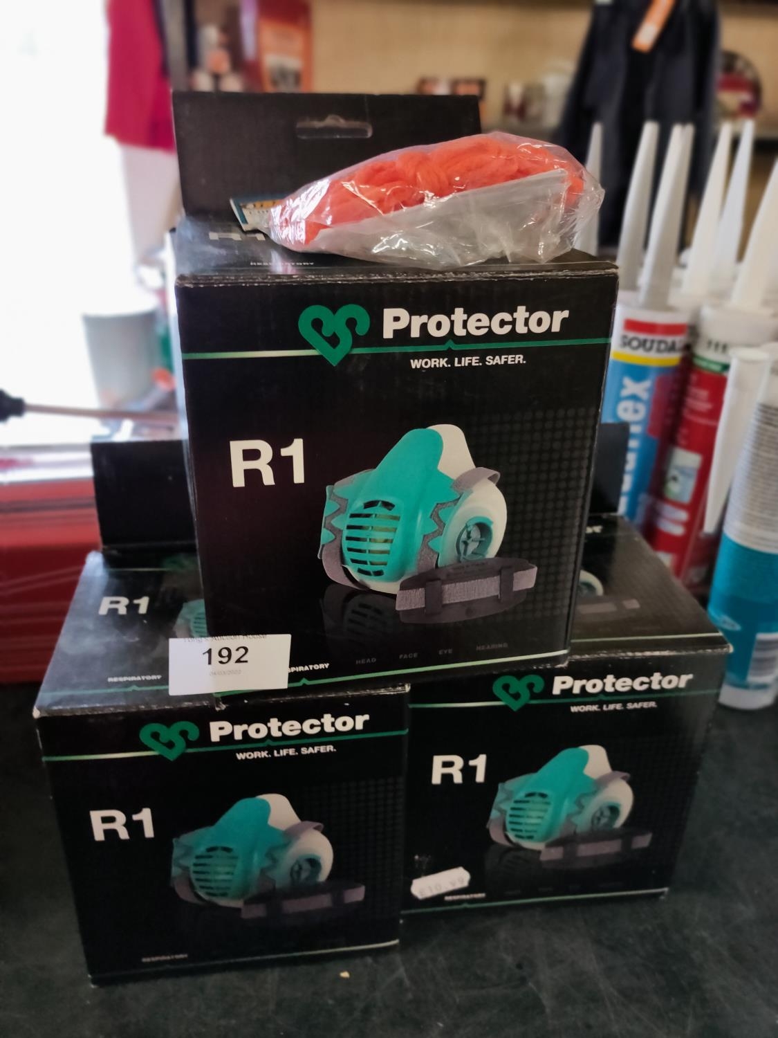 PROTECTOR THREE RESPIRATORY MASKS ALSO EAR DEFENDERS