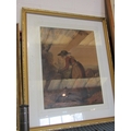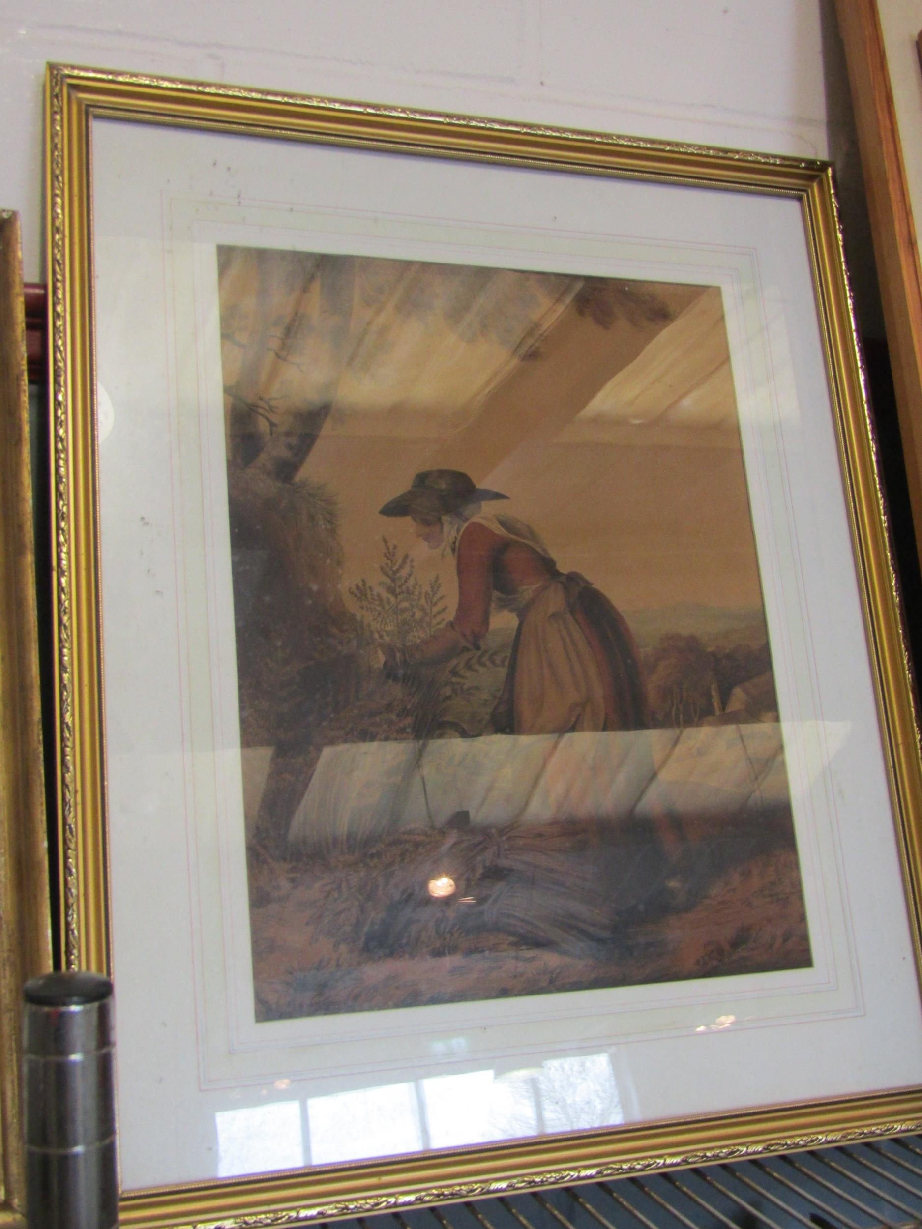 A gilt-framed watercolour of a farmworker, unsigned, 46cm x 35cm image size
