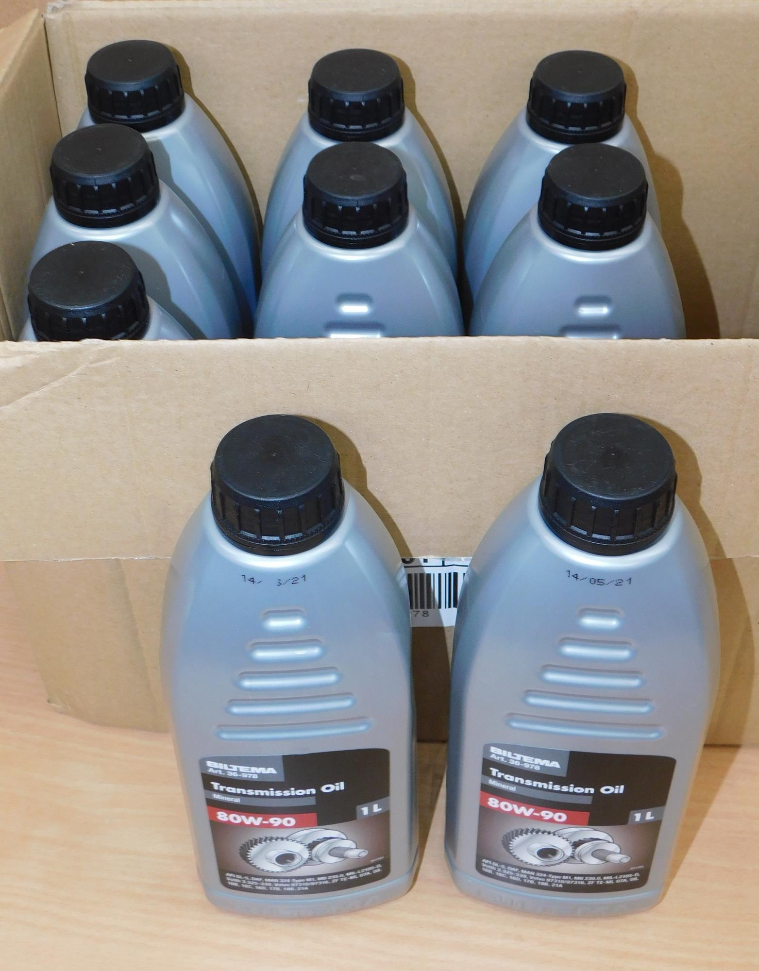 Box of 9x new litre 80W-90 gearbox oil bottles