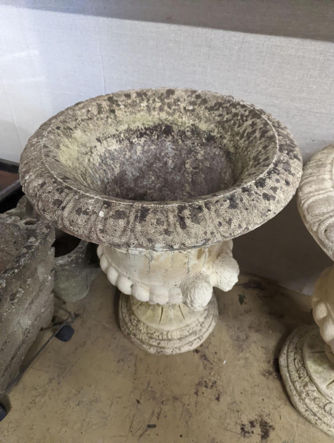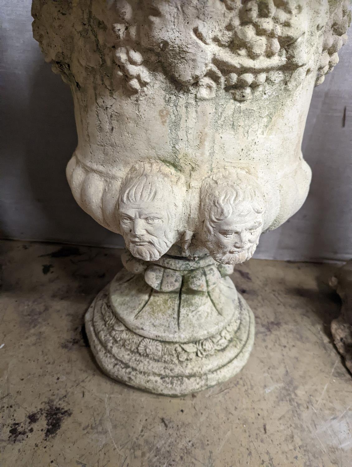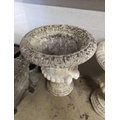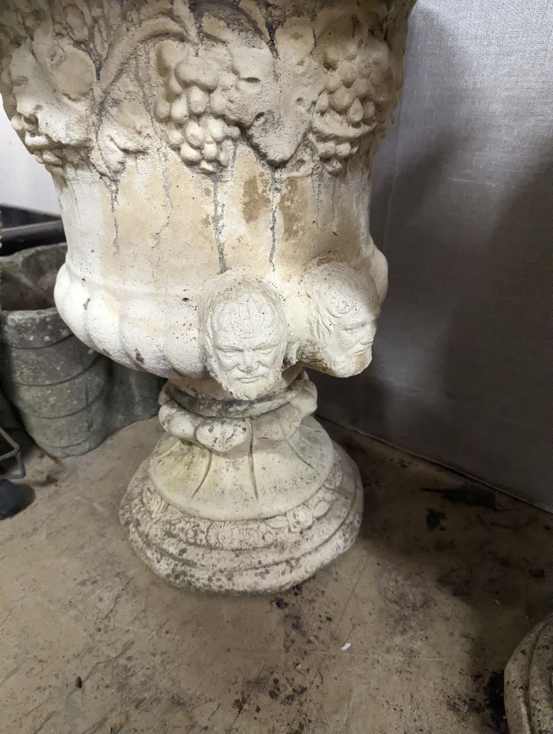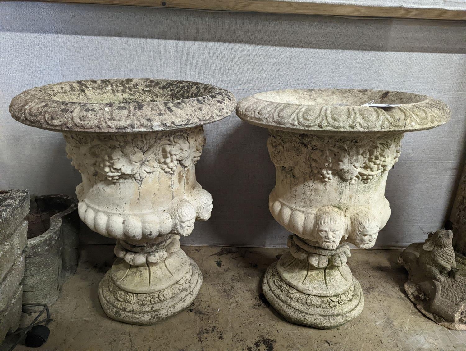 A pair of reconstituted stone campana garden urns, diameter 54cm, height 64cm