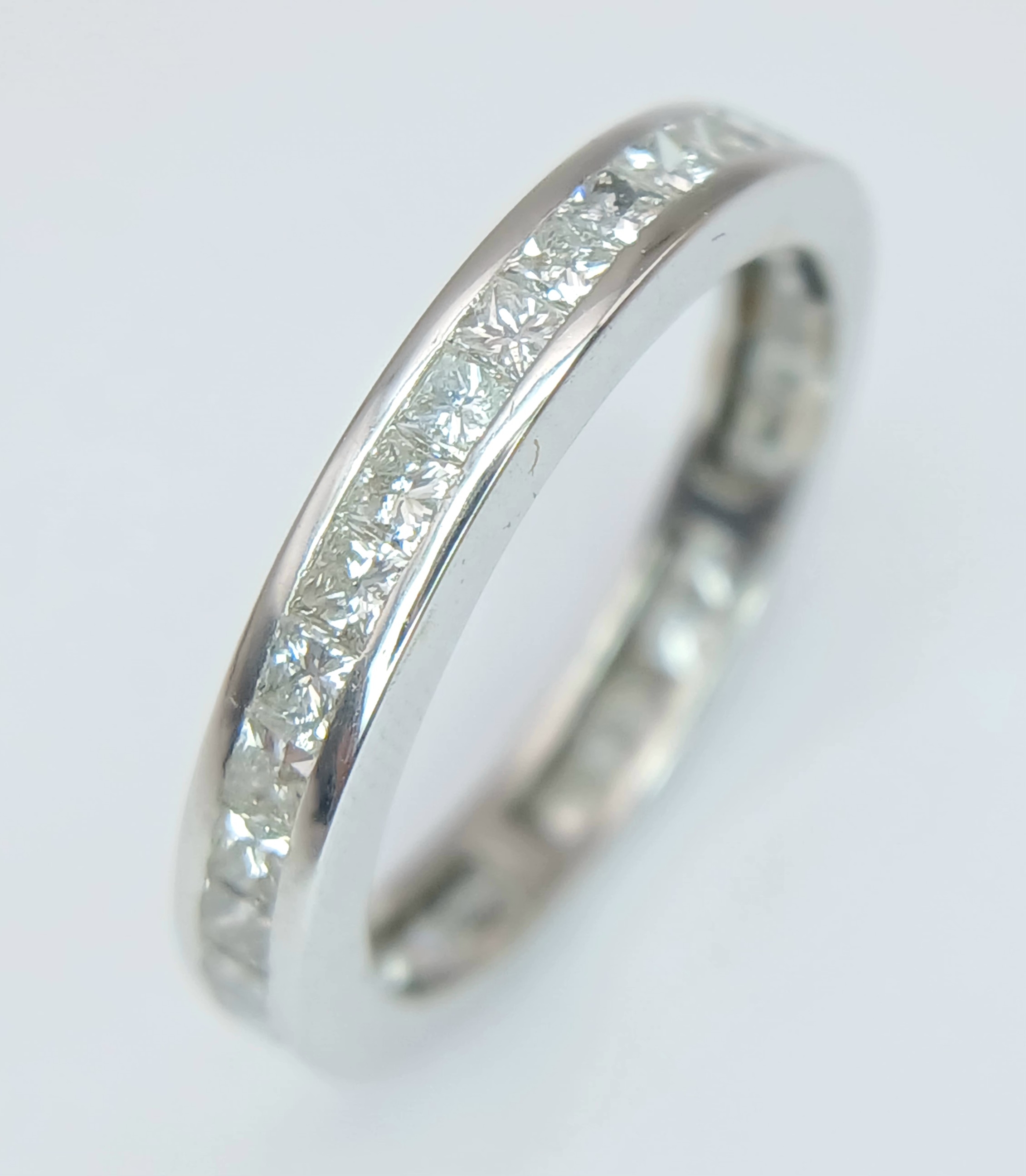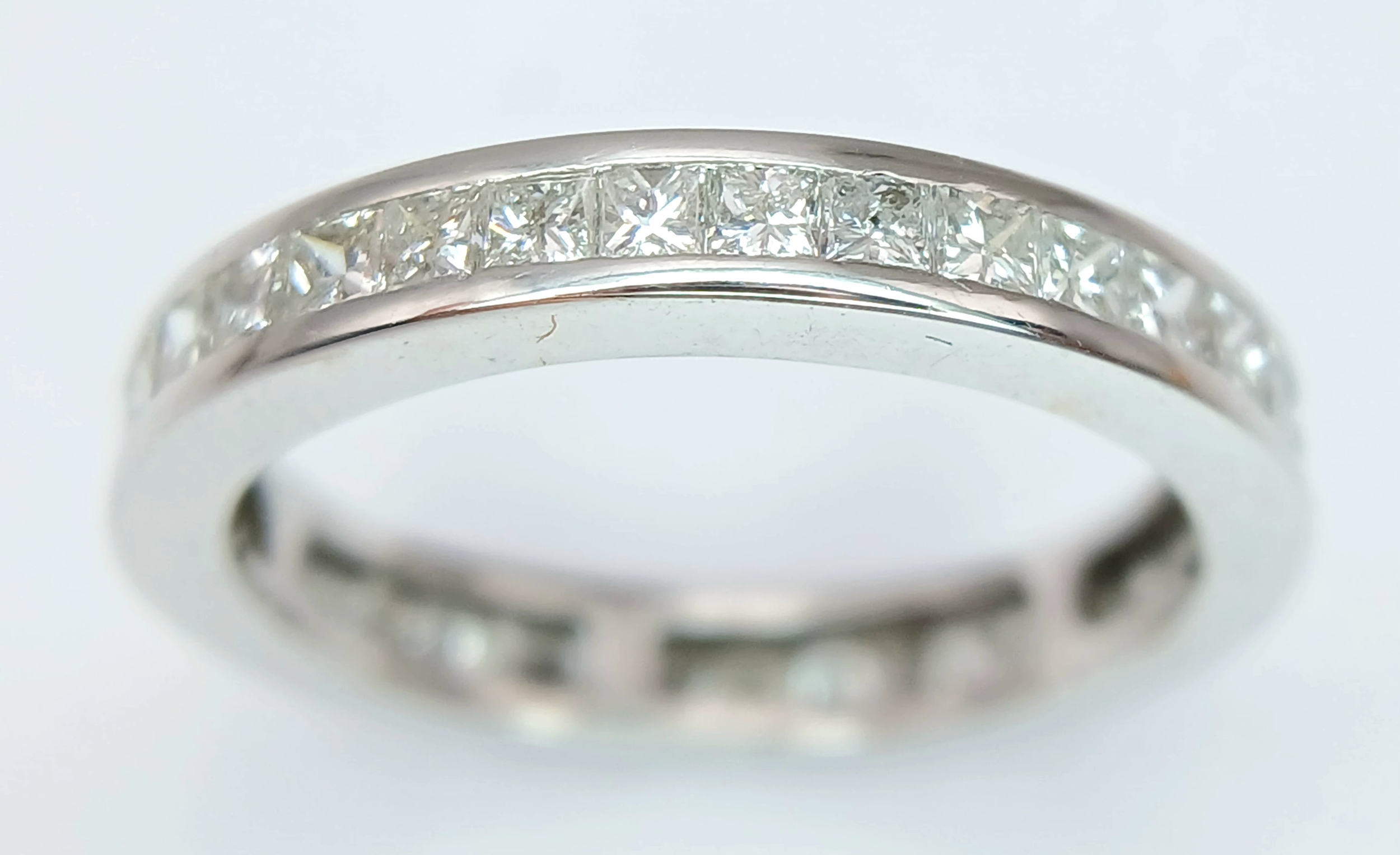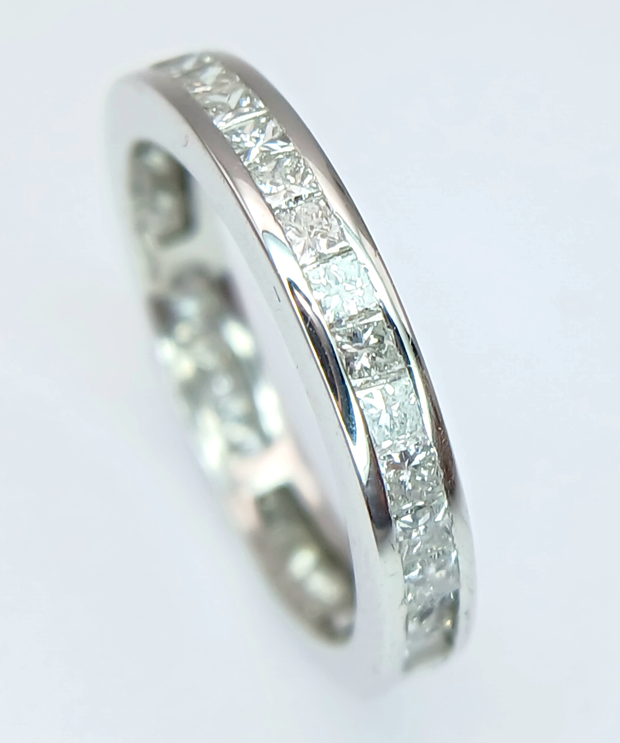 AN 18K WHITE GOLD, PRINCESS CUT, FULL ETERNITY RING. 2.00 CTW, 3G, SIZE M. MS RED 1001