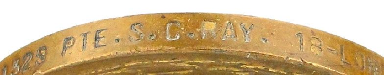 World War I British military Victory medal marked 1325 PTE.S.C.RAY.18-LOND.R. to the rim