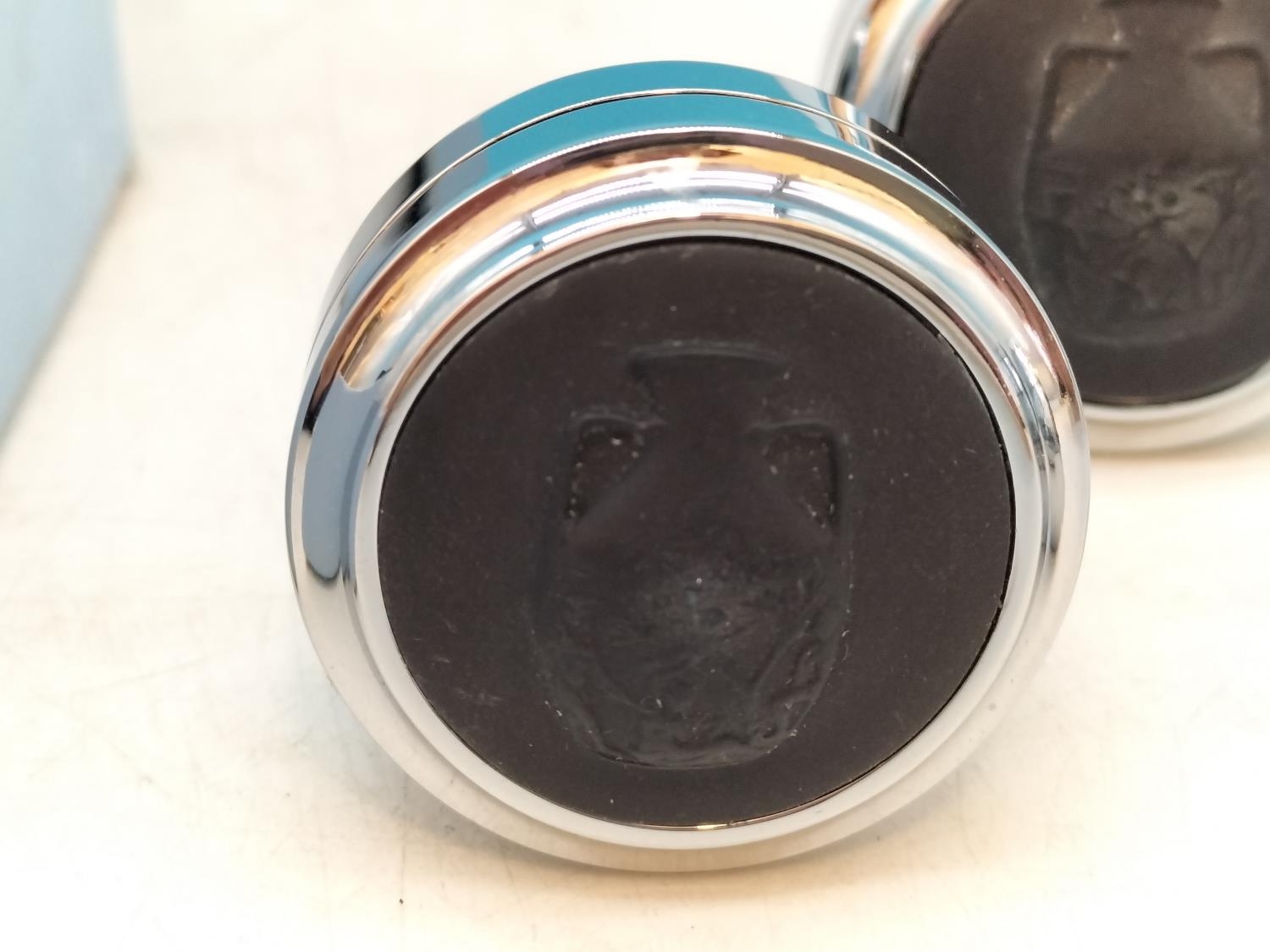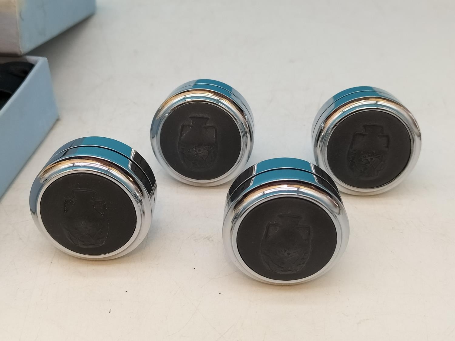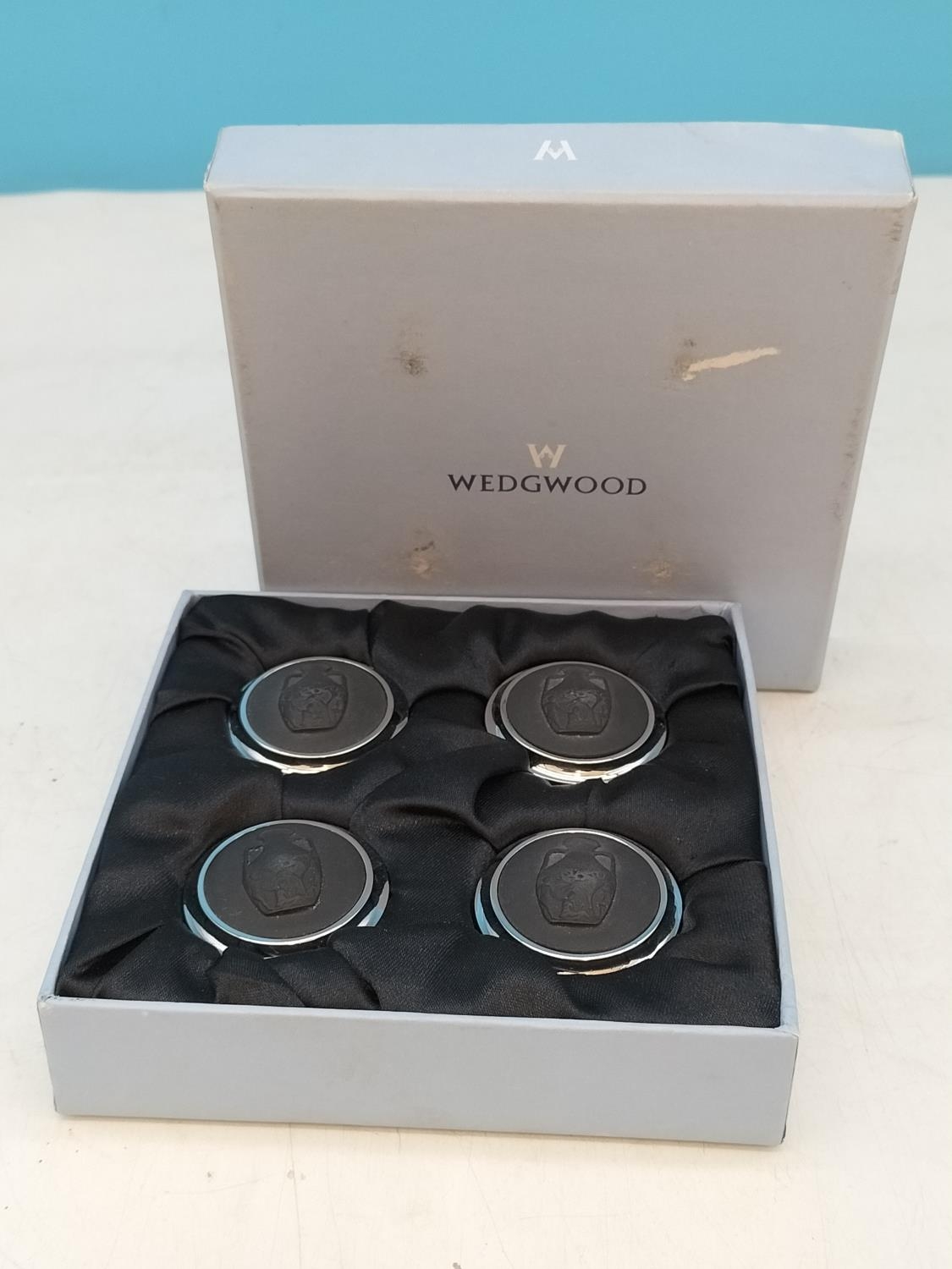 Boxed Wedgwood Set of 4 Black Jasper Place Card Holders with Portland Jug Design.