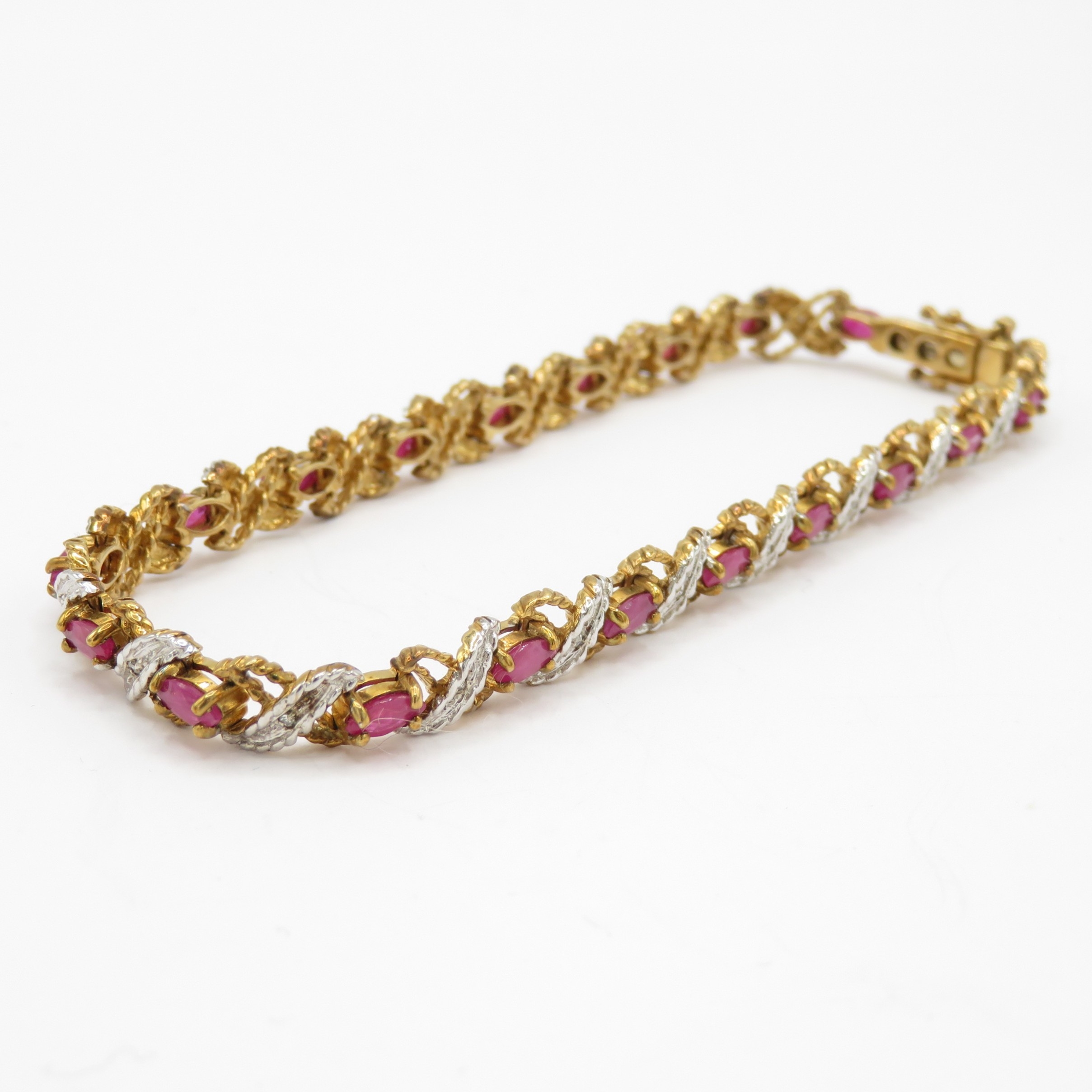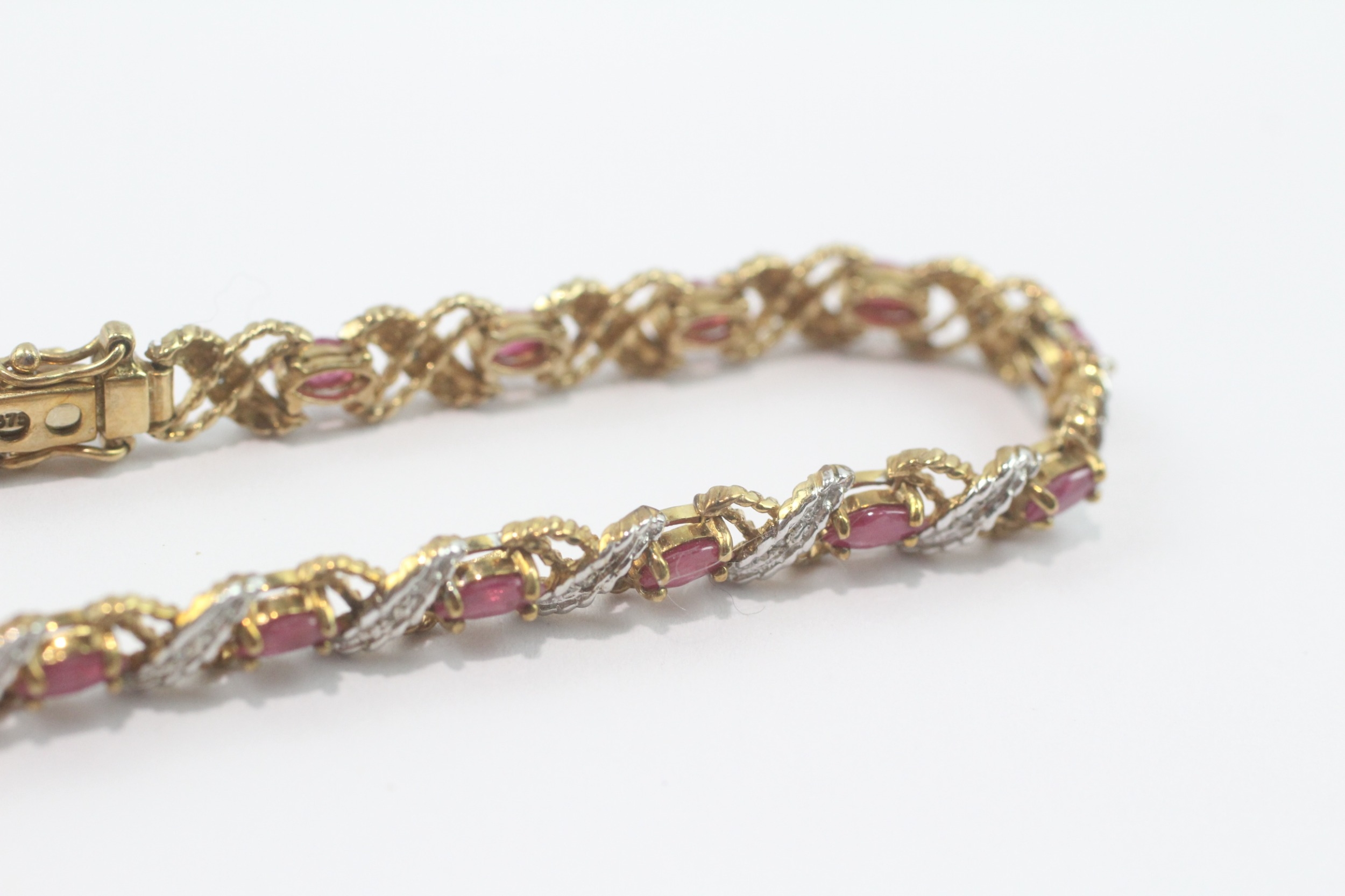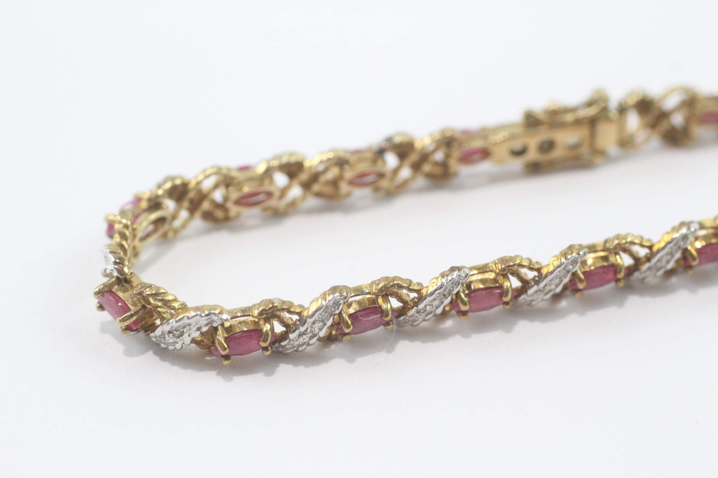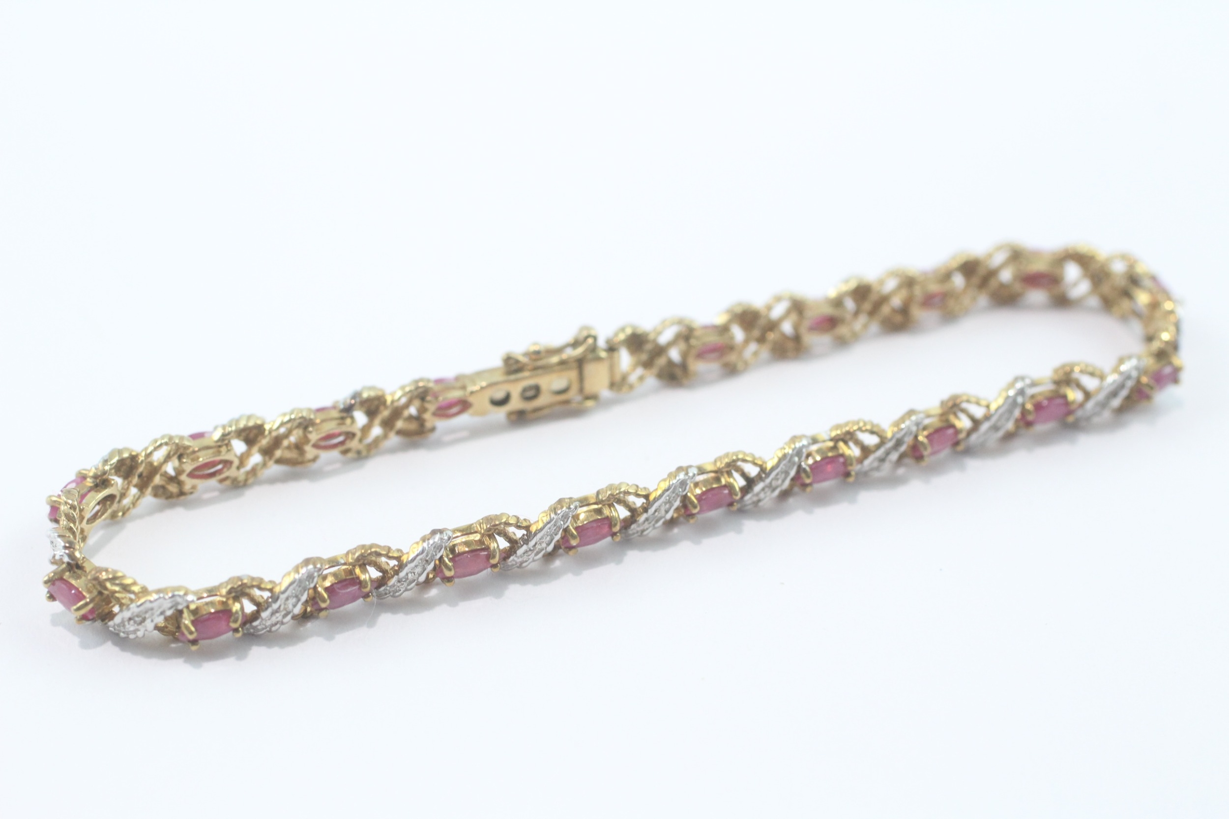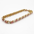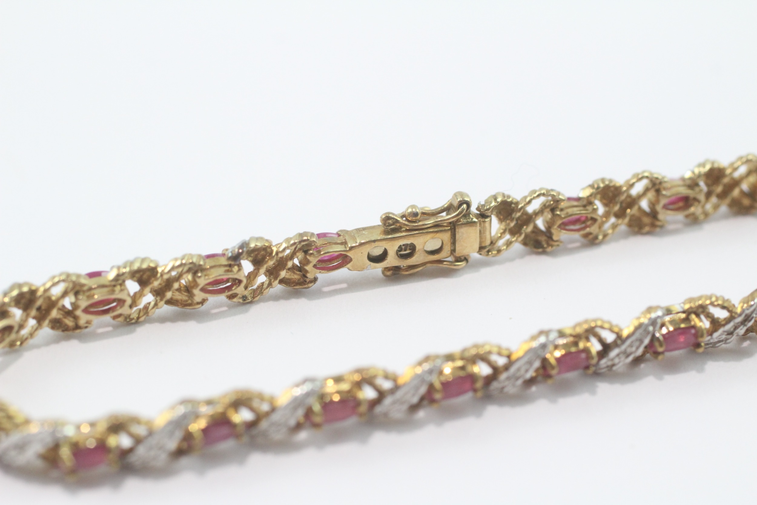 9ct gold marquise cut ruby diamond tennis bracelet (9.7g)