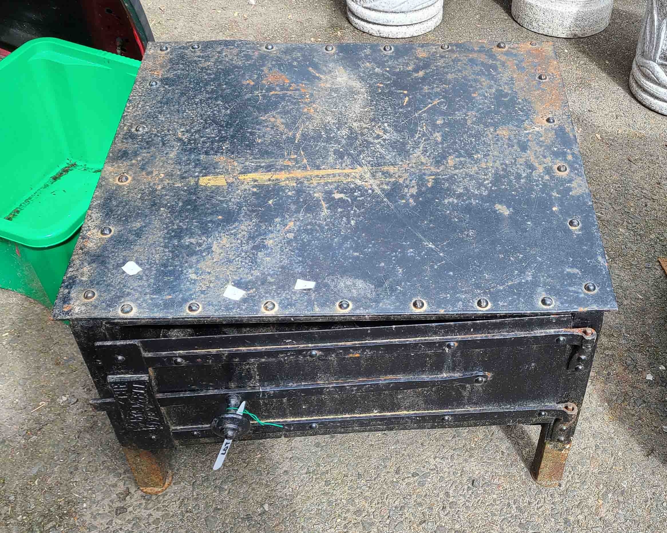 A low cast iron garden oven stamped 'The Bakewell Oven' - door latch a/f