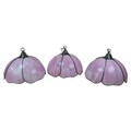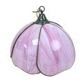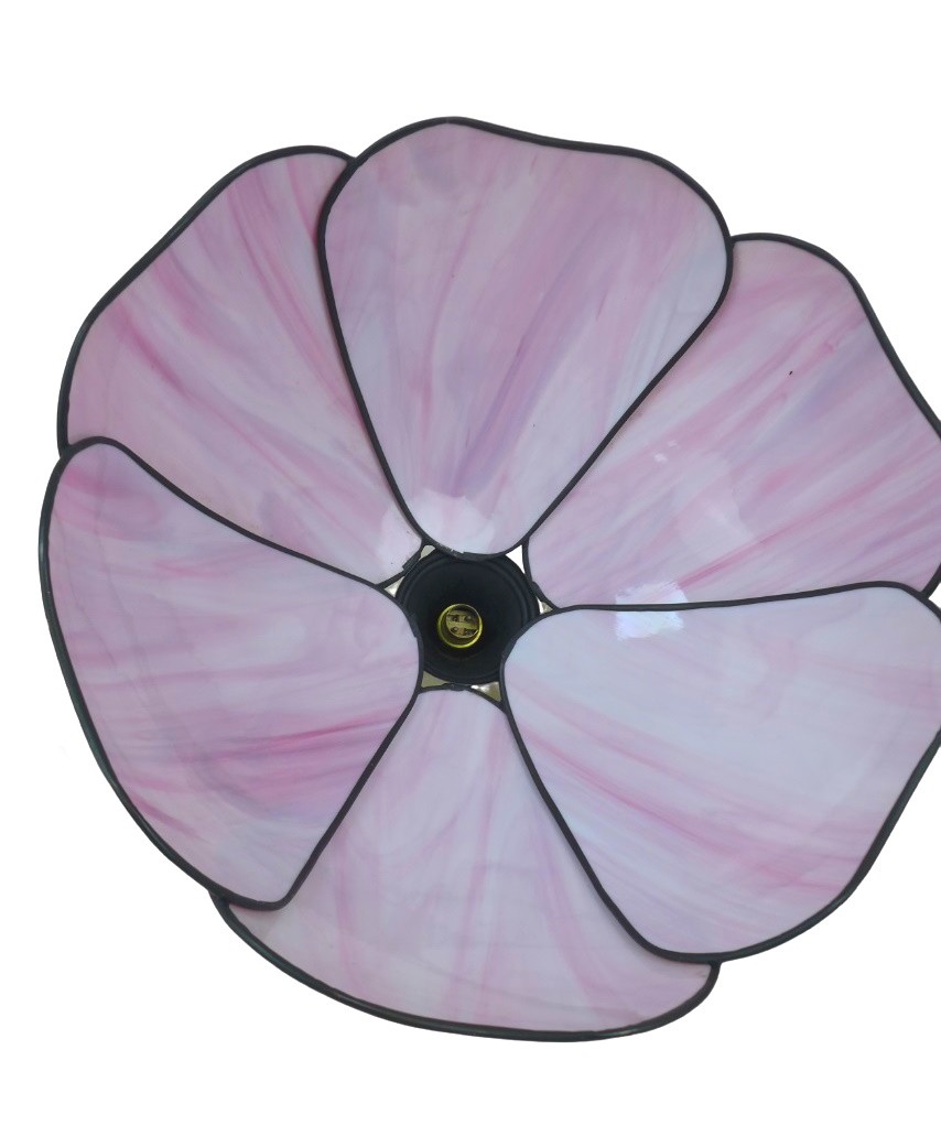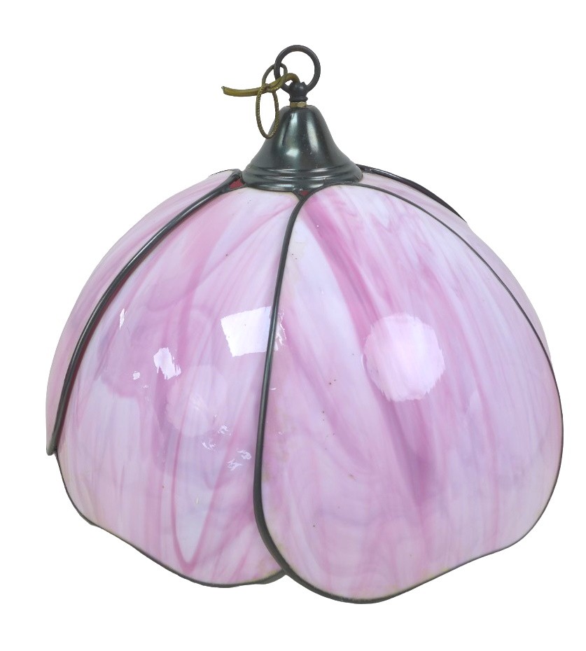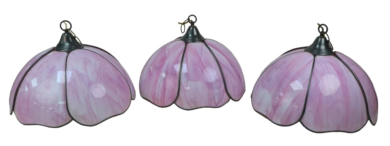 Three large modern Tiffany style ceiling light shades, each shade made up of six pink opaque glass petal shaped panels, 46 by 46 by 32cm high. (3)
