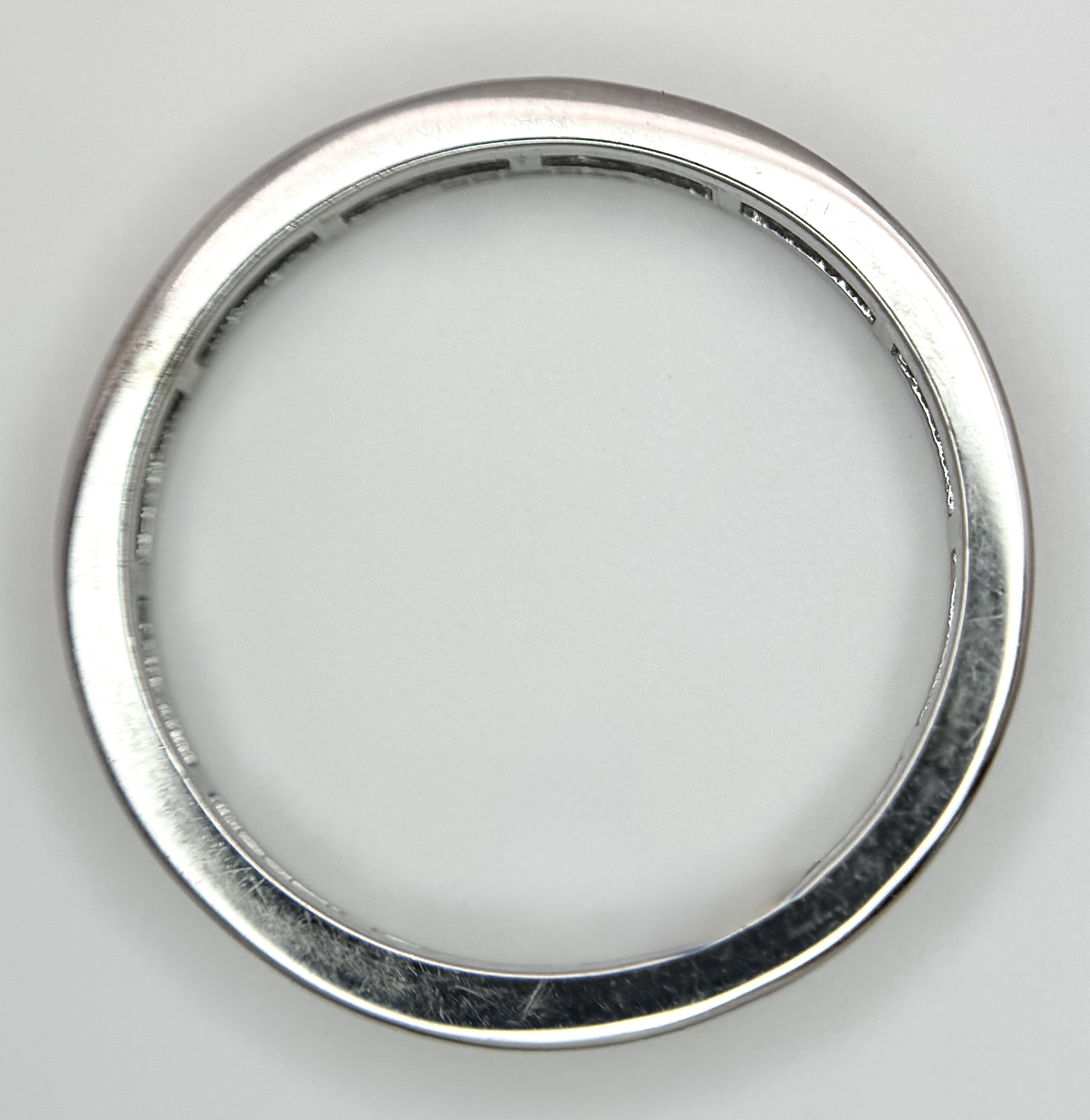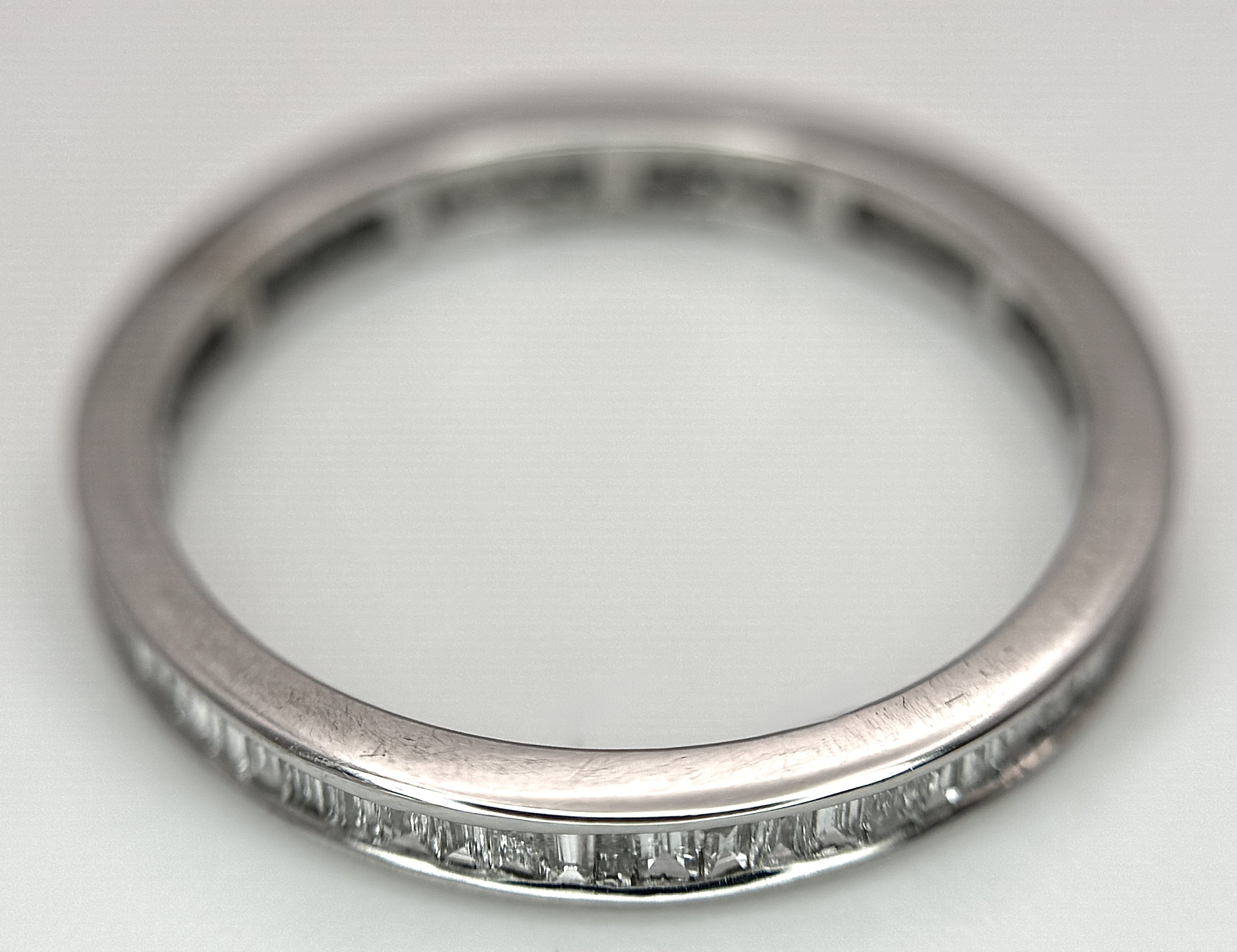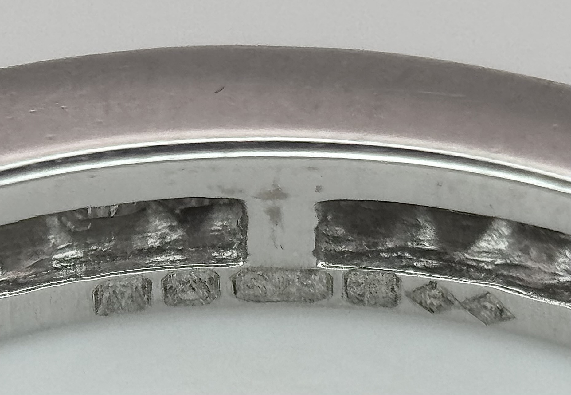 A 9K White Gold Diamond Eternity Ring. 1ctw of baguette channel set diamonds. Size P 1/2. 1/73g. MT71