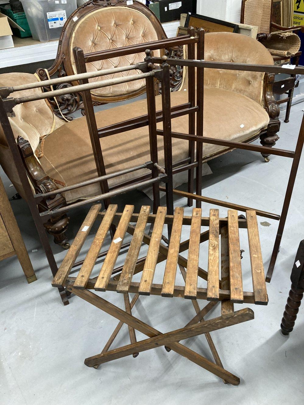 Late 19th early 20th cent. Collection of mahogany household goods to include towel rails, suitcase rack, drying rack.