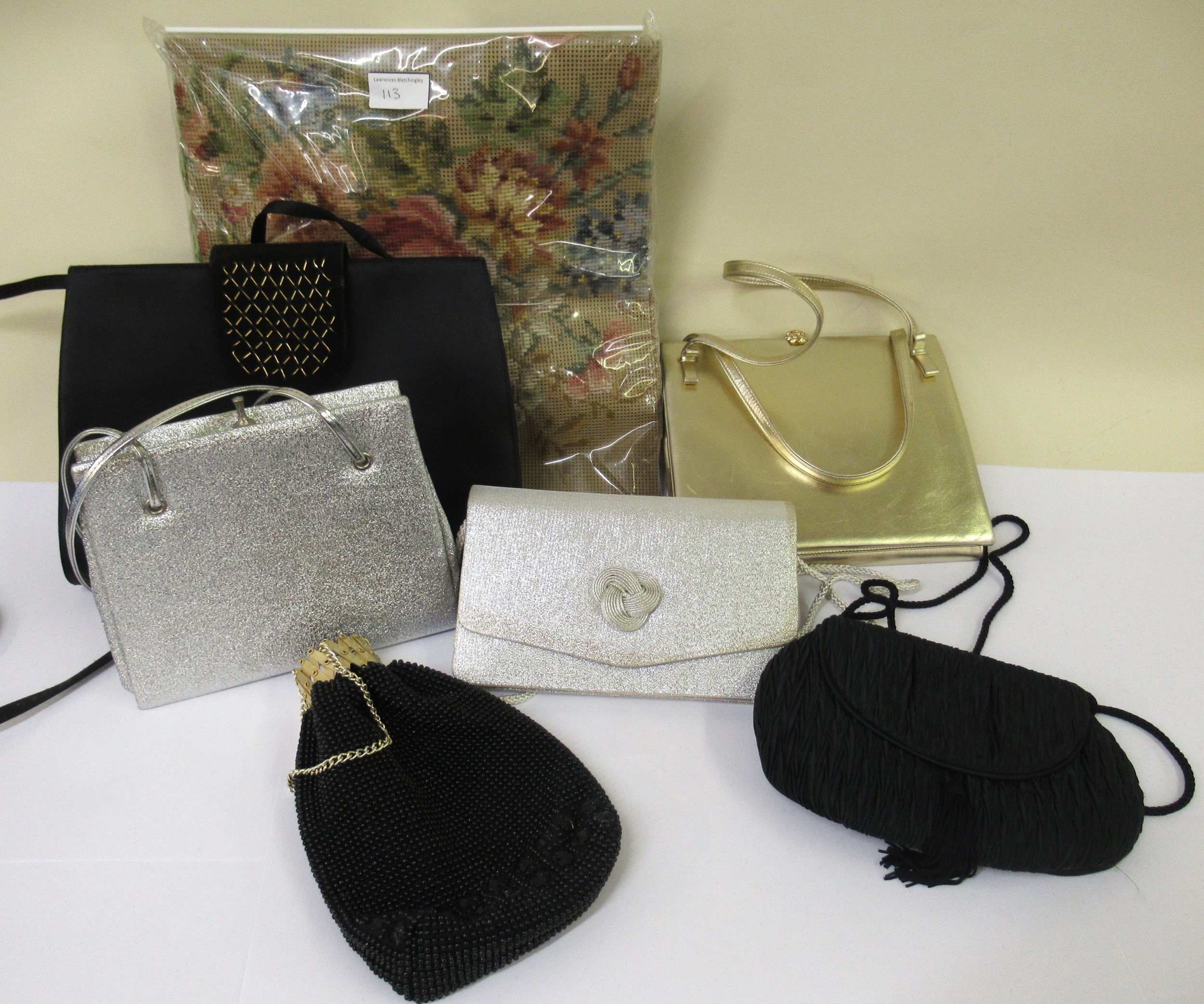 Small quantity of mid 20th Century evening bags and a tapestry kit (partially completed)