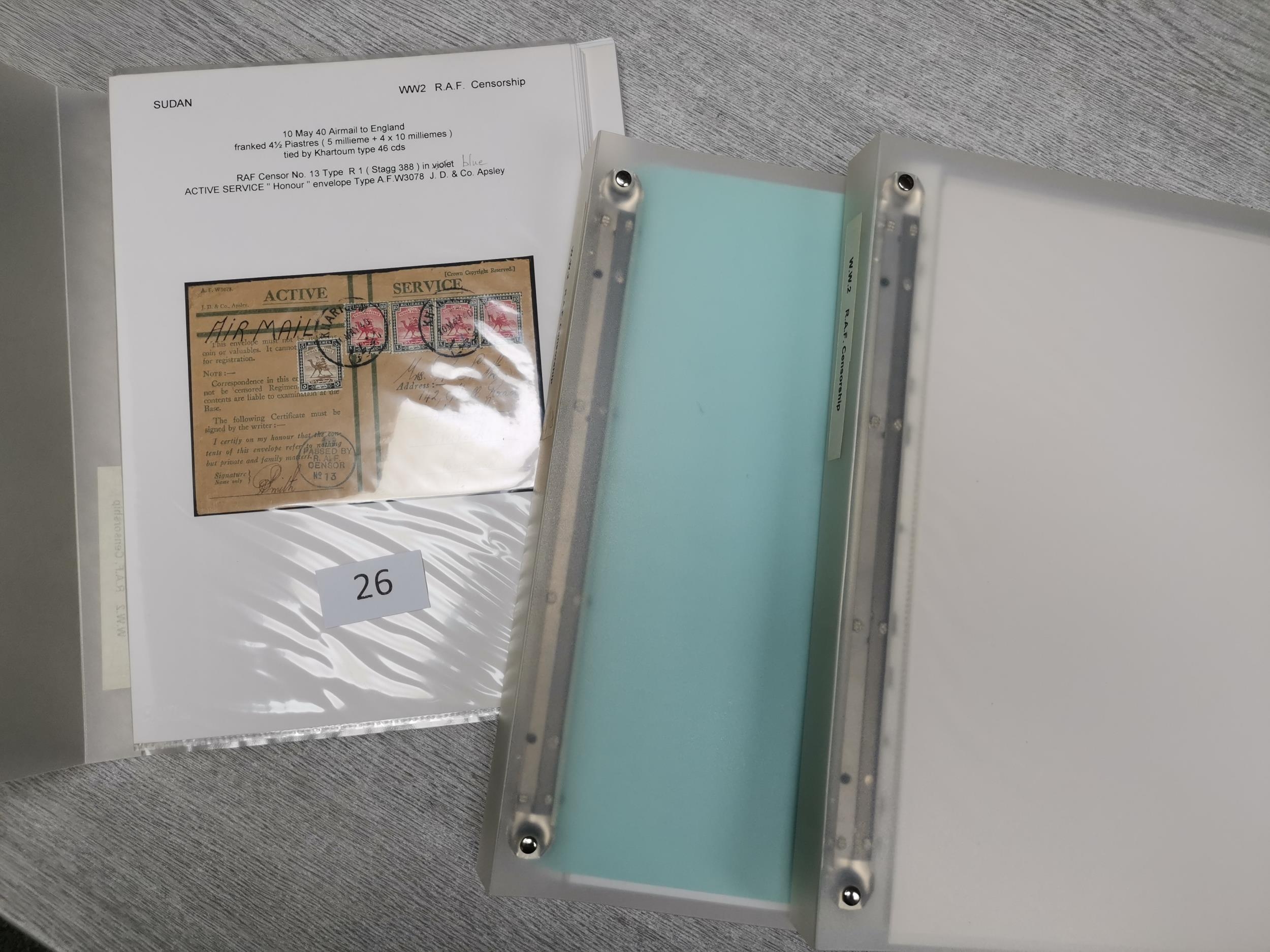 MIXED WORLD. WORLD WAR 2 RAF CENSOR COVERS. A collection written up in 3 binders in box file incl. adhesives from GB India and Sudan. (66 covers)
