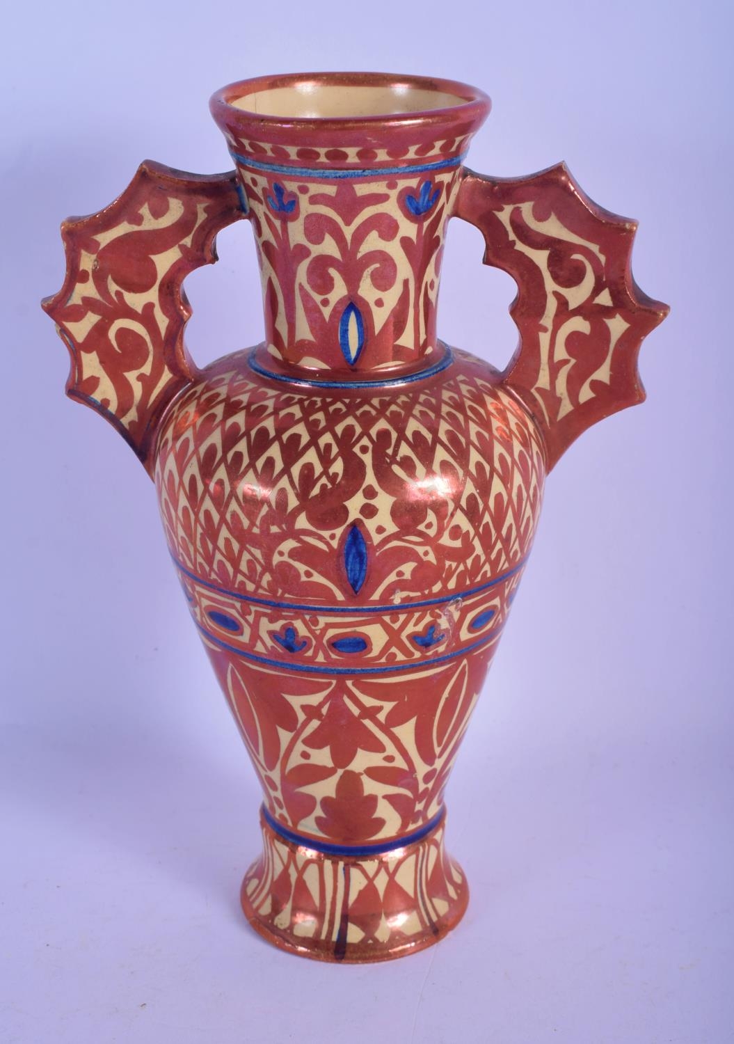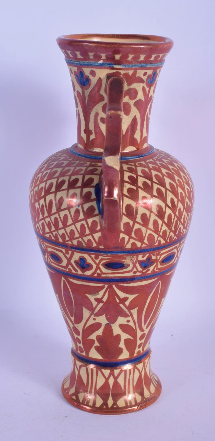 AN ANTIQUE SPANISH HISPANO MORESQUE TIN GLAZED ALHAMBRA VASE painted with motifs. 23 cm high.