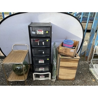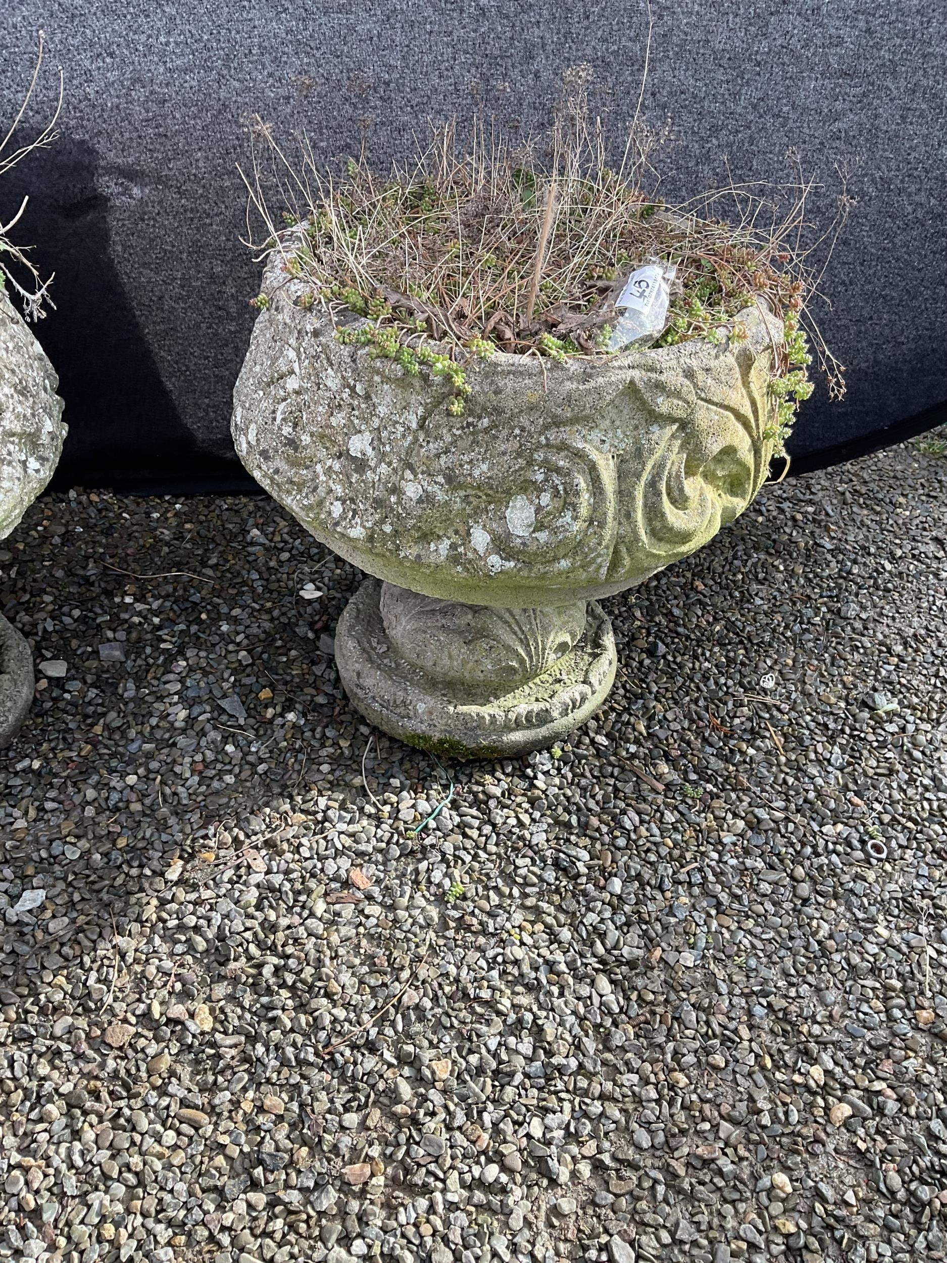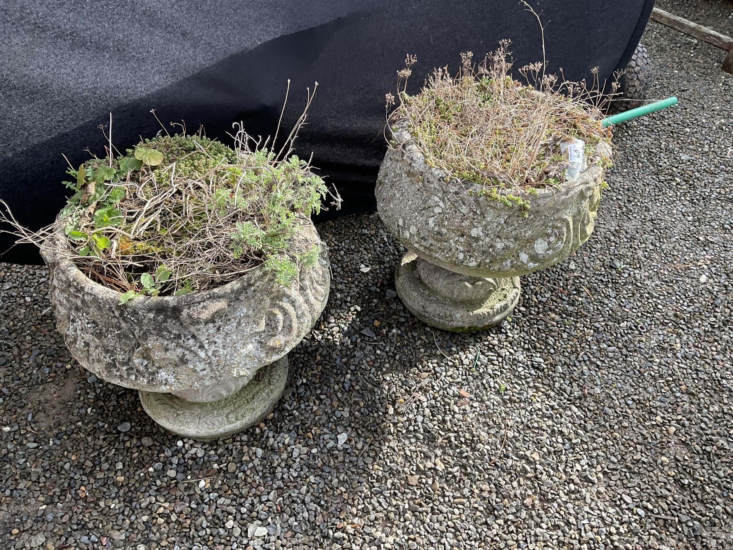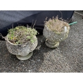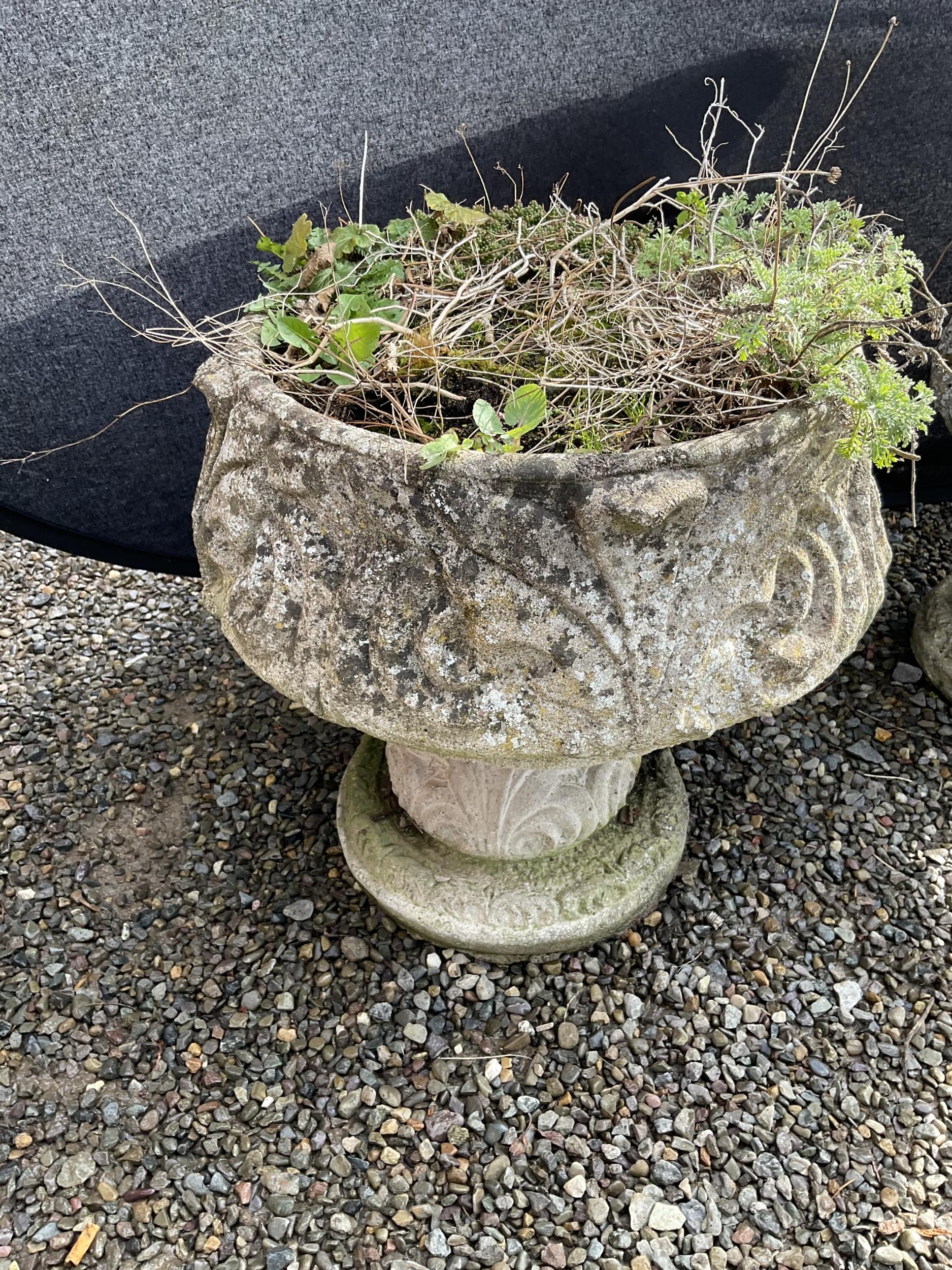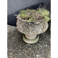 2 CONCRETE PLANTERS ON PLINTHS AND CONTENTSDIA 16" H 19"