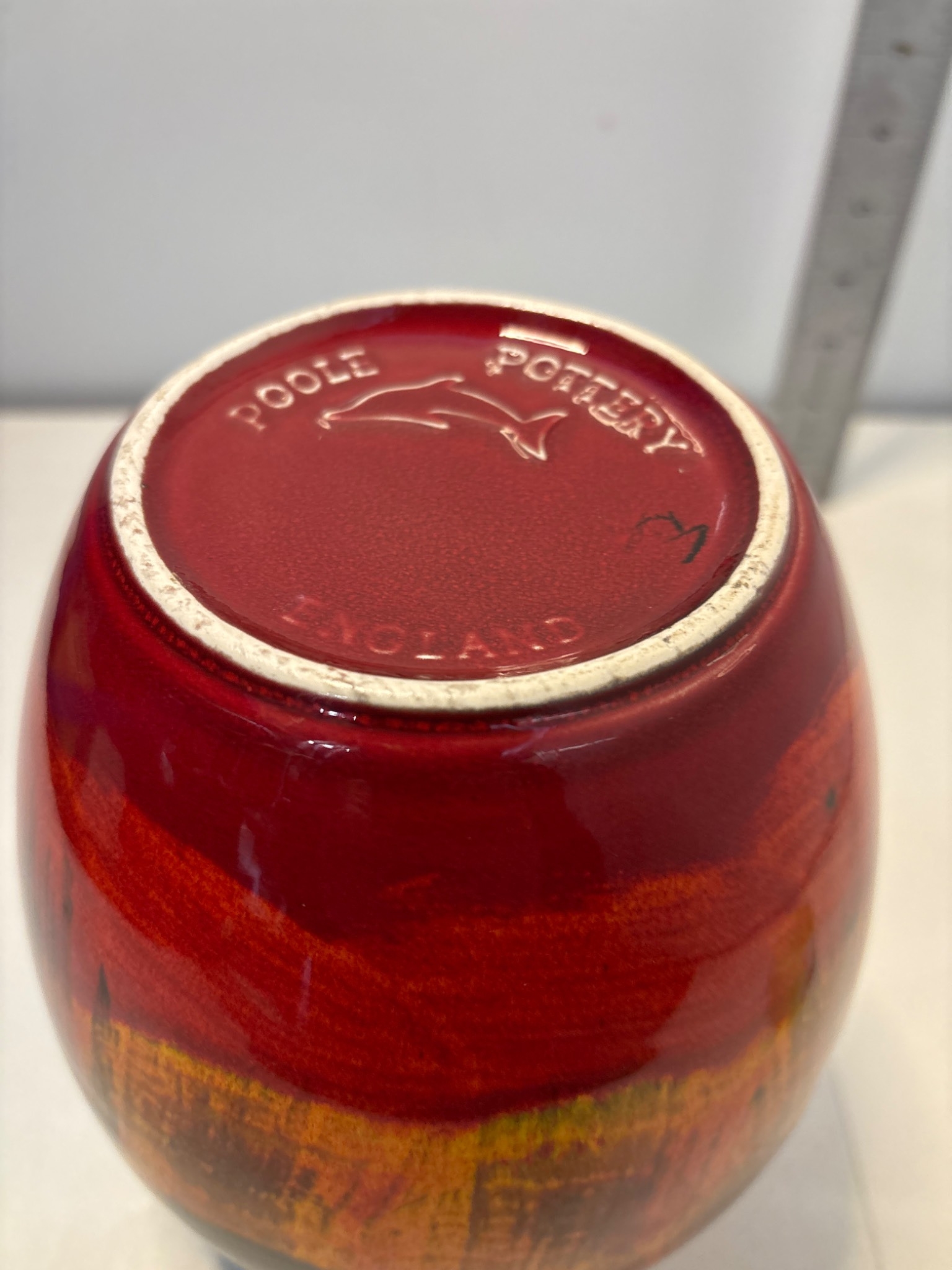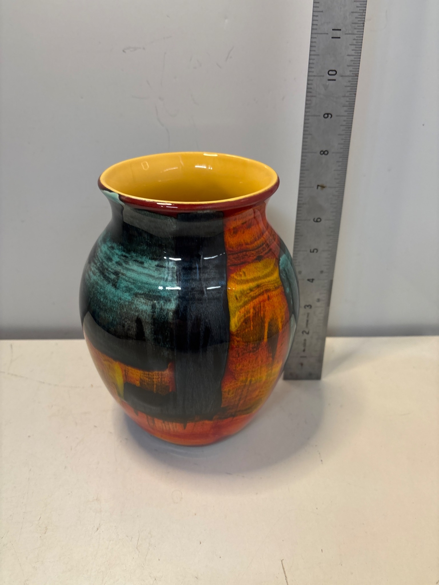 Multicolor ceramic vase by Poole Pottery, 6-inch height.