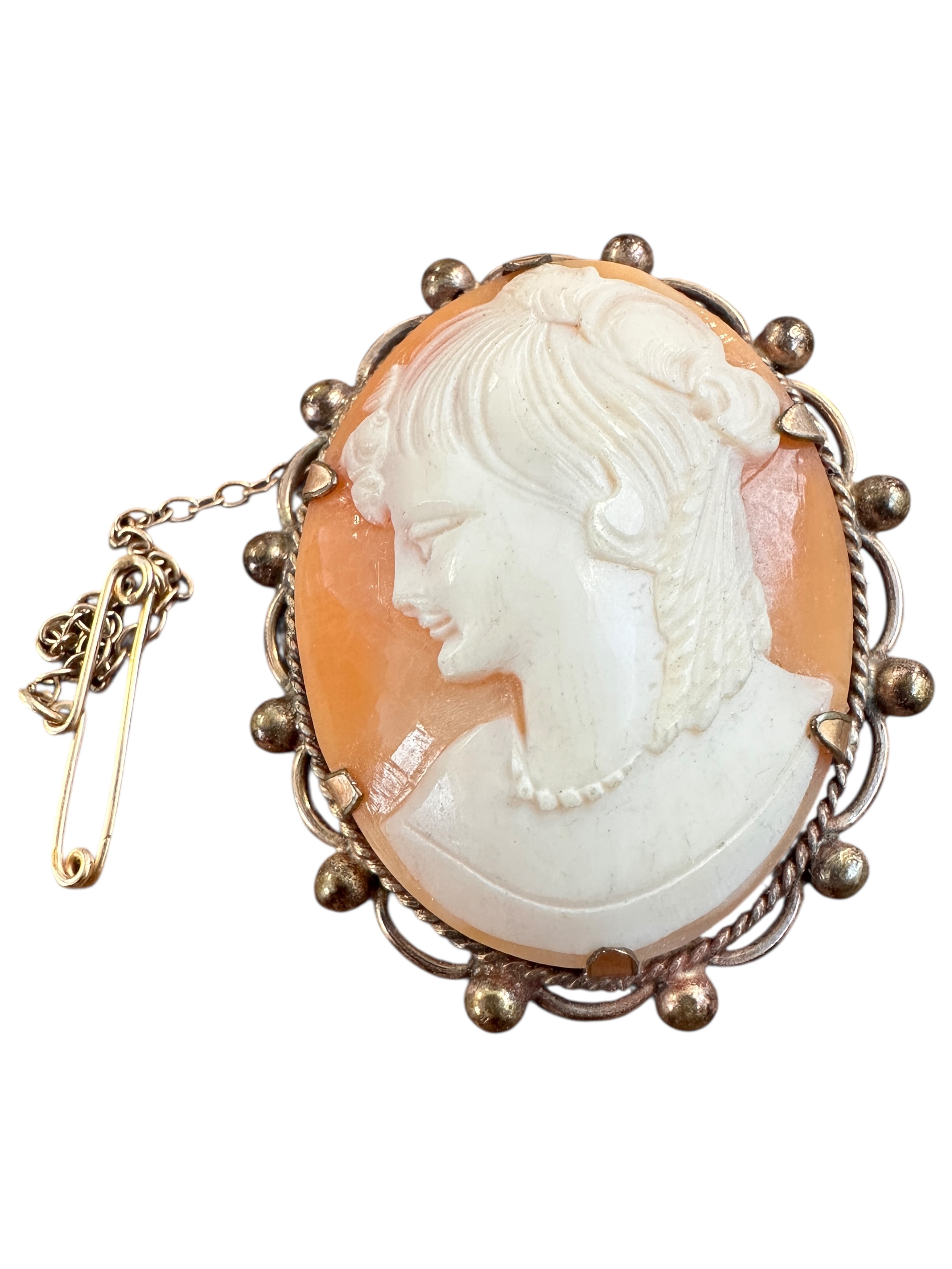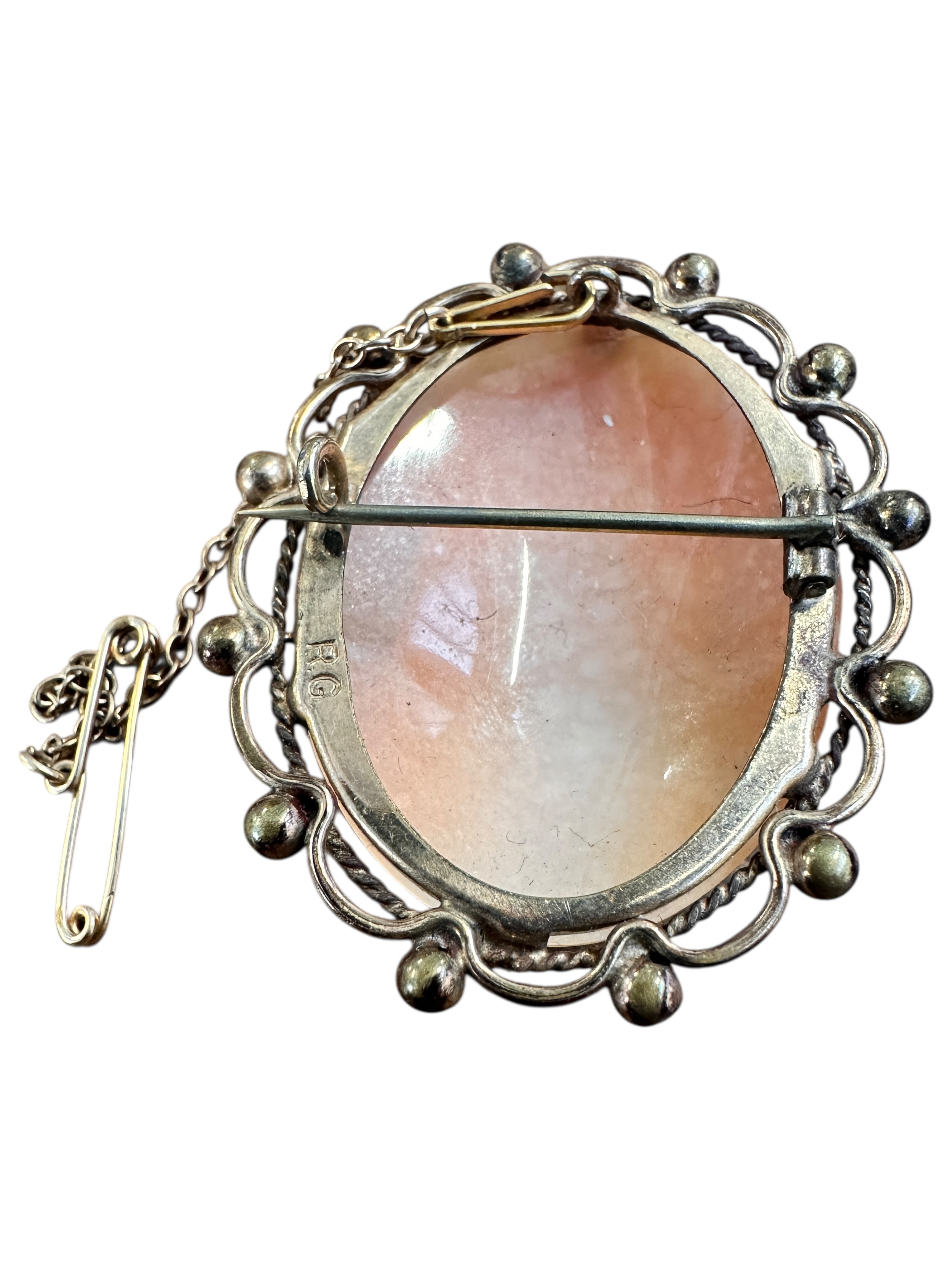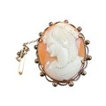 Carved Shell Cameo Brooch in Rolled Gold Mount Stamped 'RG'