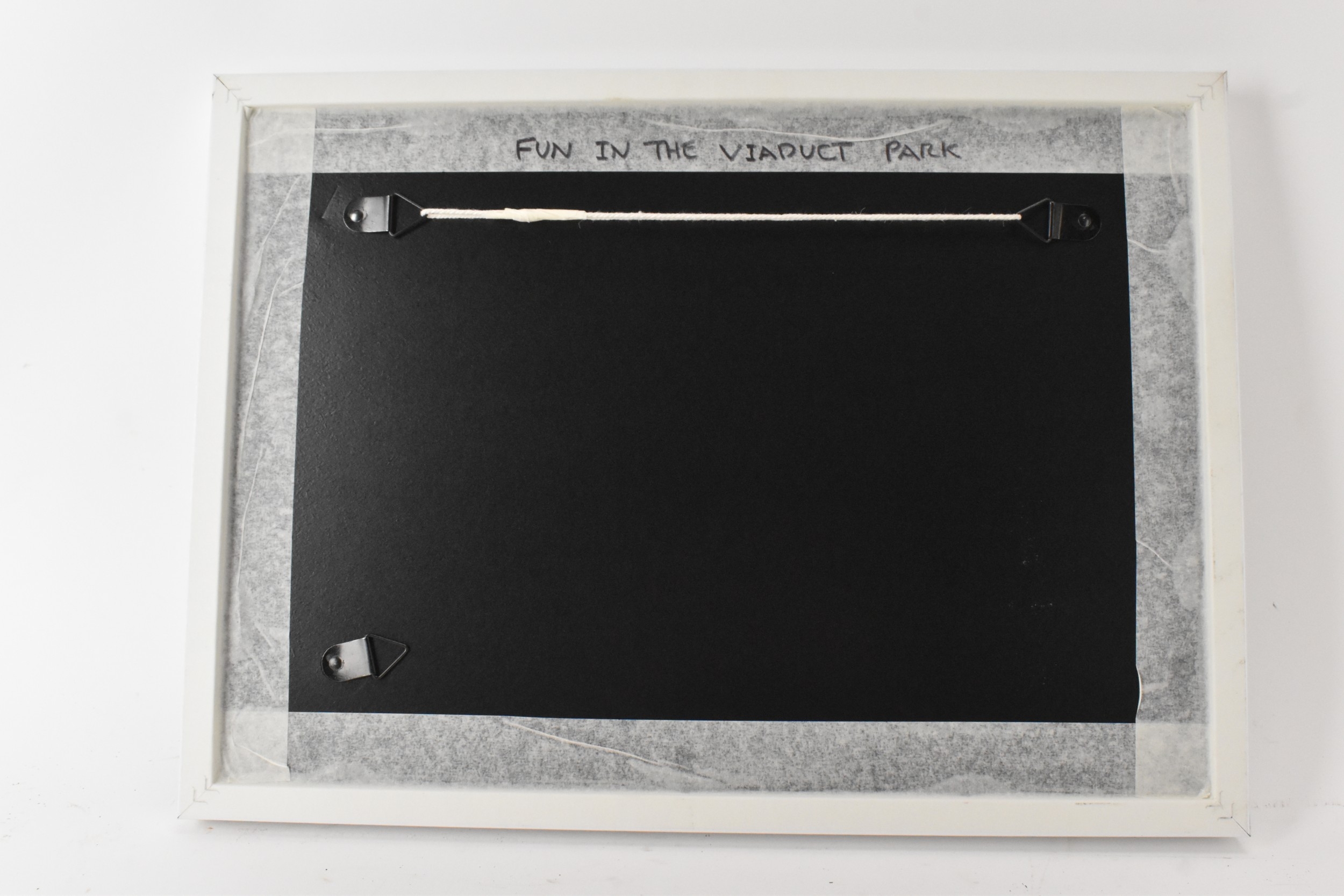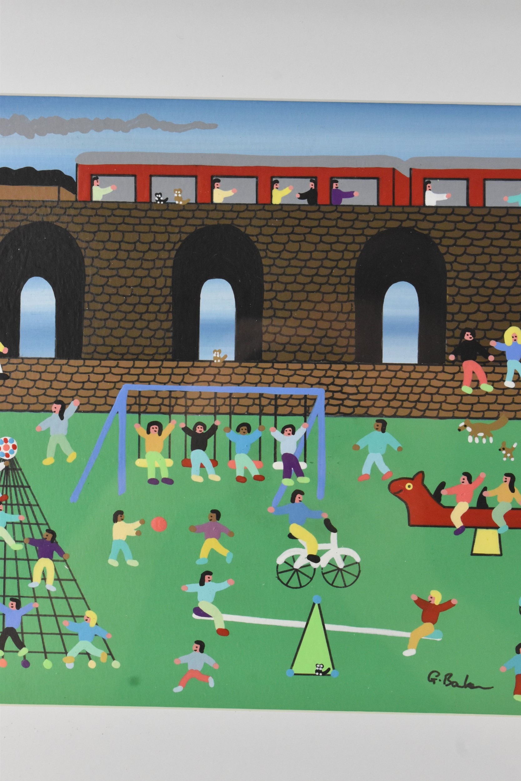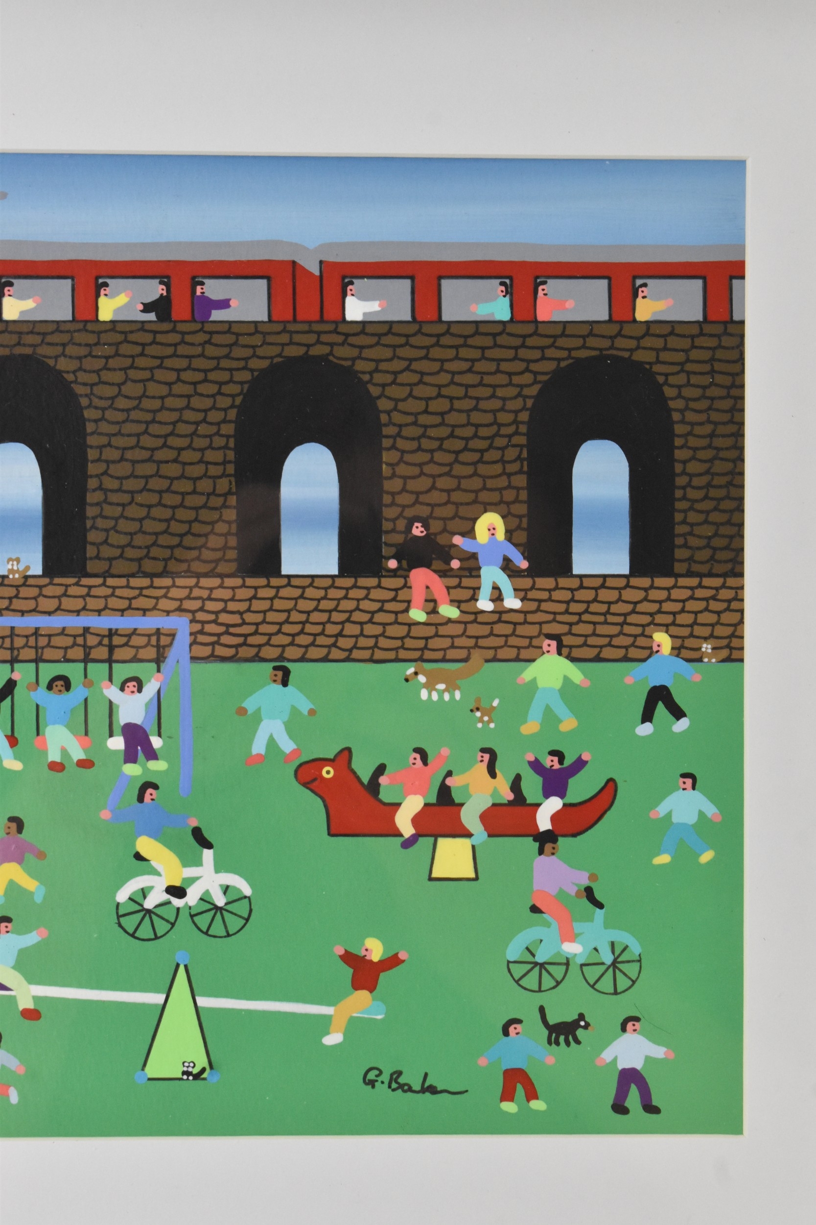 Gordon Barker (contemporary Devon artist), acrylic on board, entitled 'Fun in the Viaduct Park', signed to the lower right corner, 29cm x 20cm, the frame 45.5cm x 33cm
