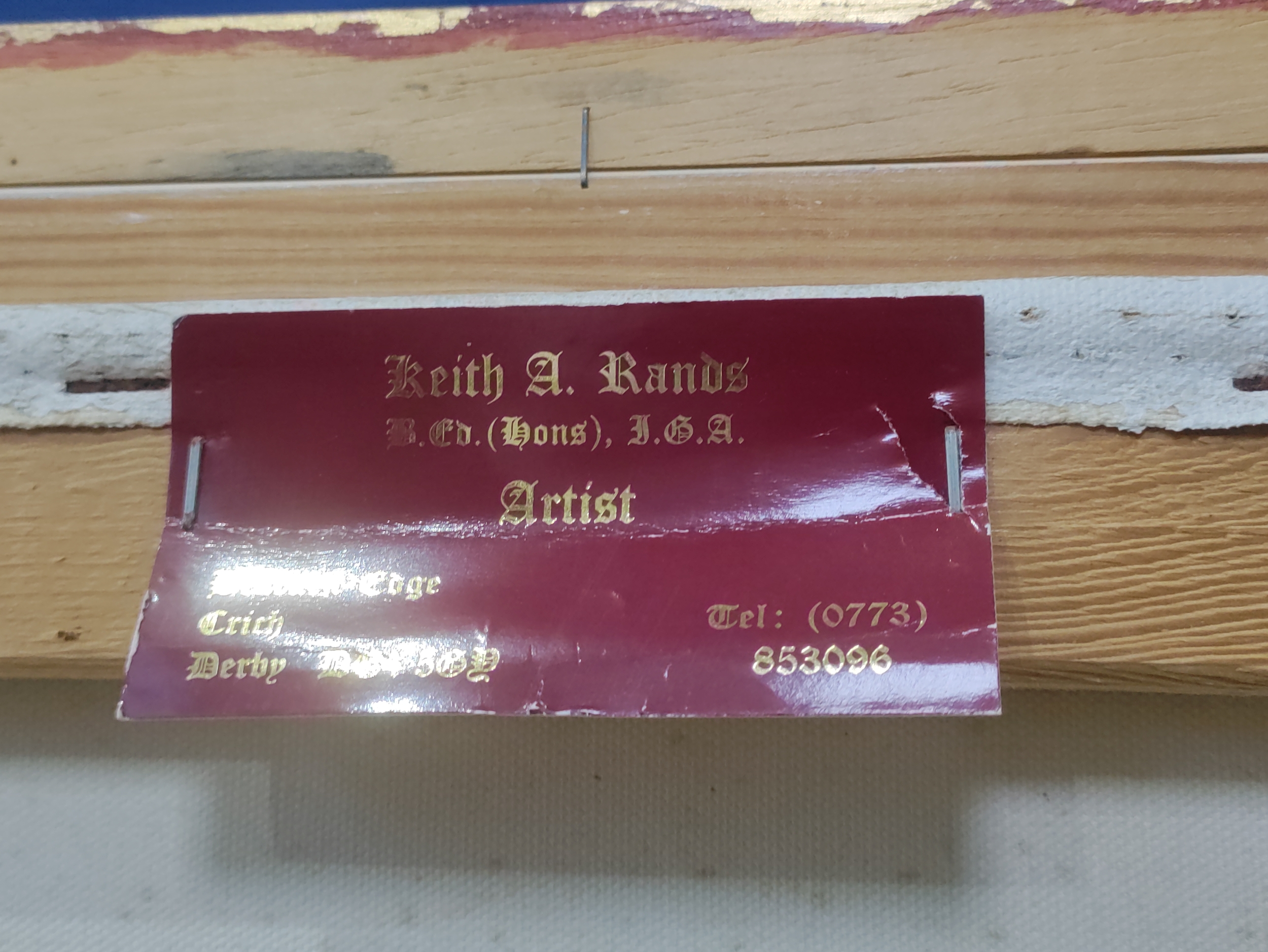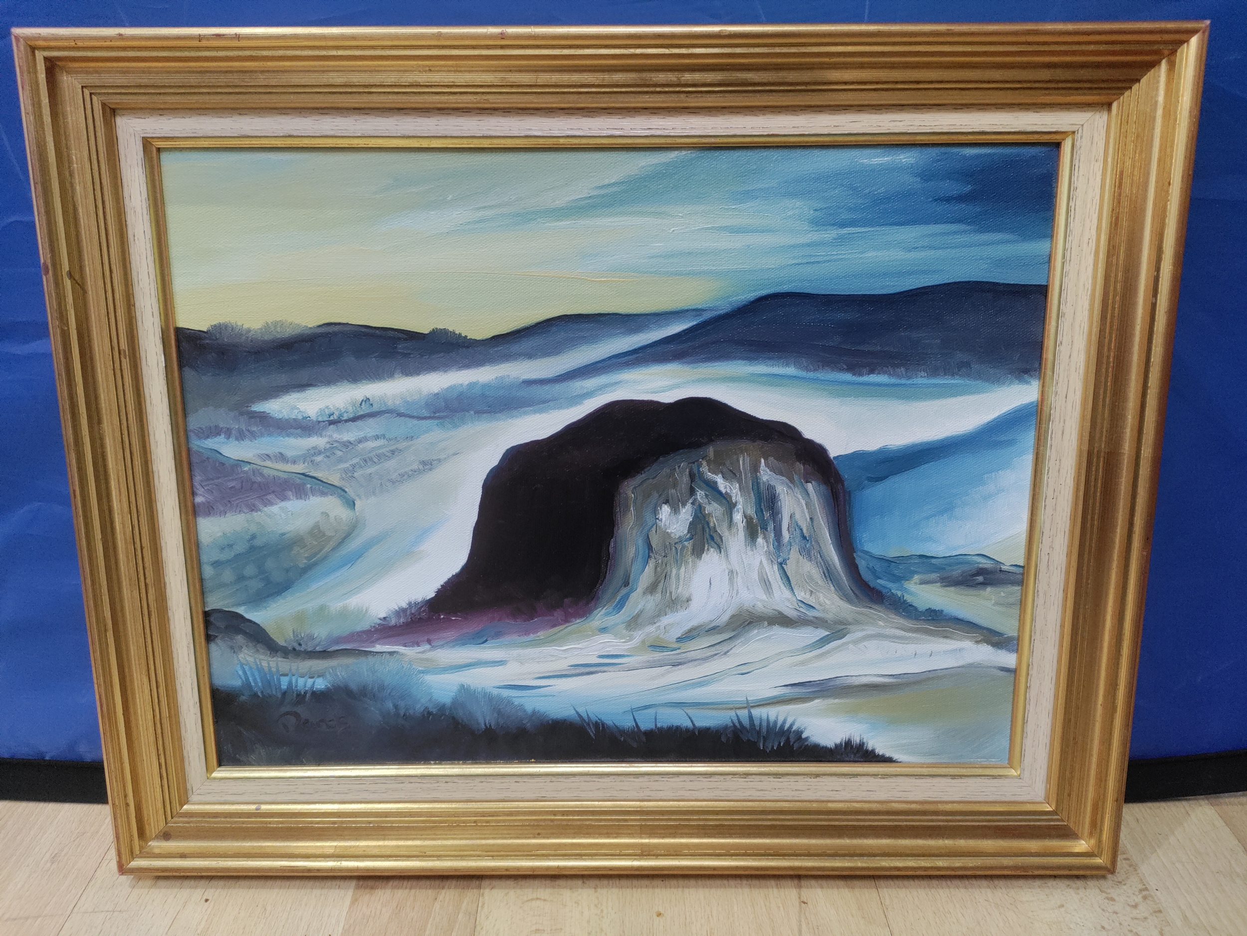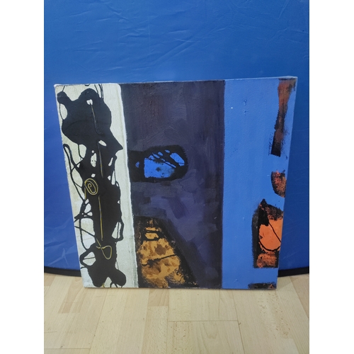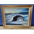 An abstract oil on canvas of a large rock. Signed Rands with a card on the back referring to Keith Rands. H 39cm x 49cm.