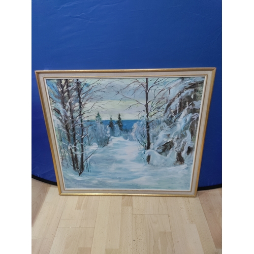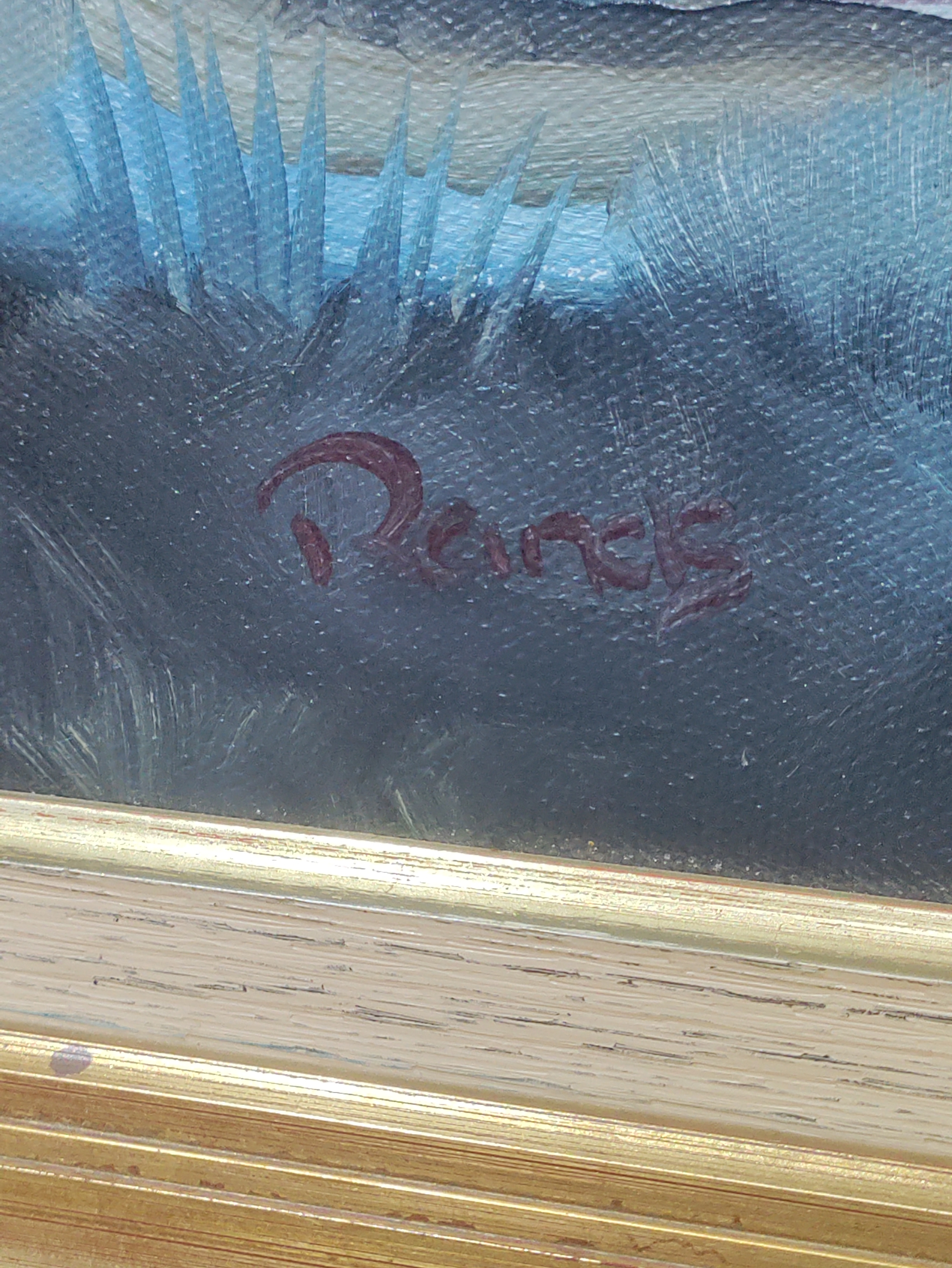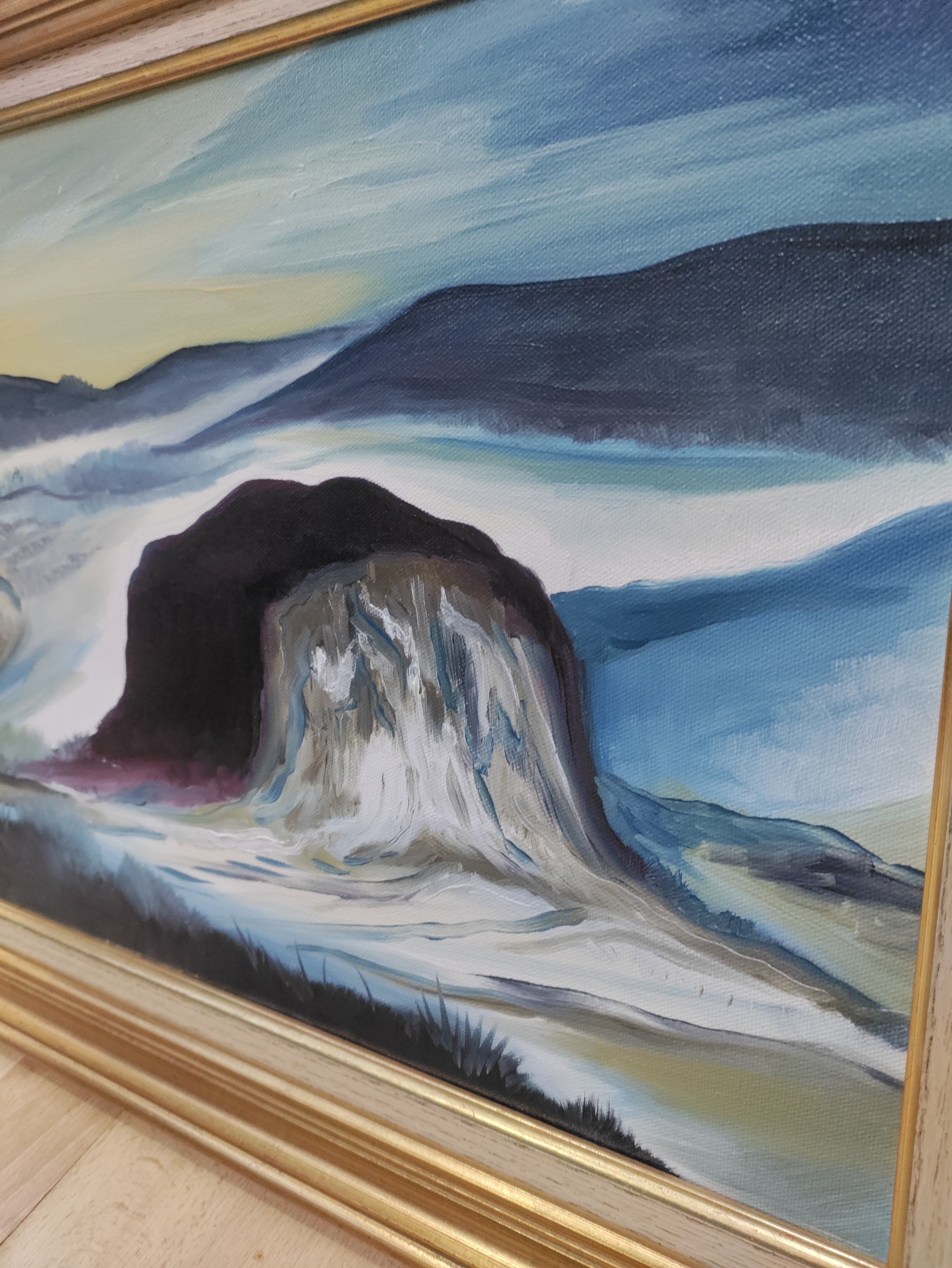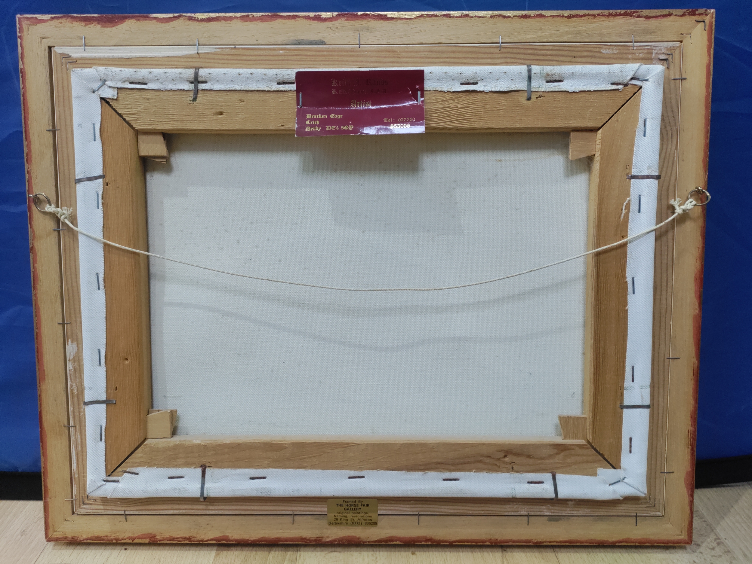 An abstract oil on canvas of a large rock. Signed Rands with a card on the back referring to Keith Rands. H 39cm x 49cm.