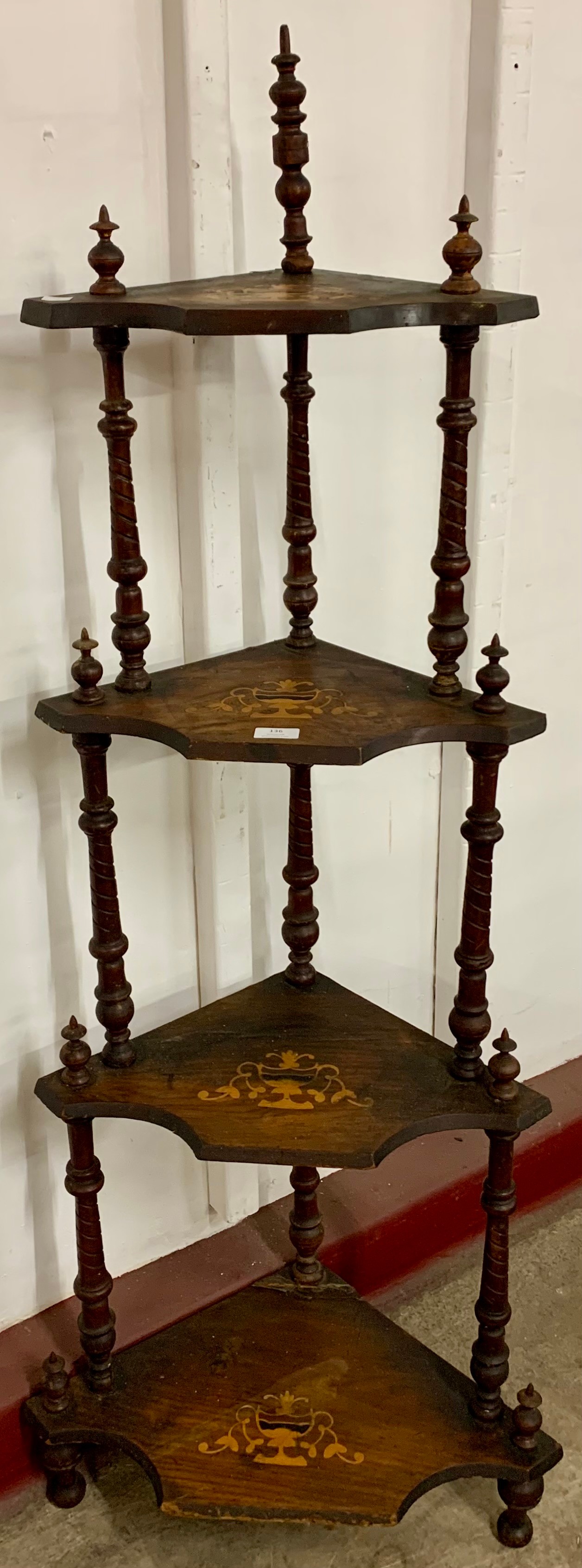 A Victorian inlaid mahogany four tier corner whatnot