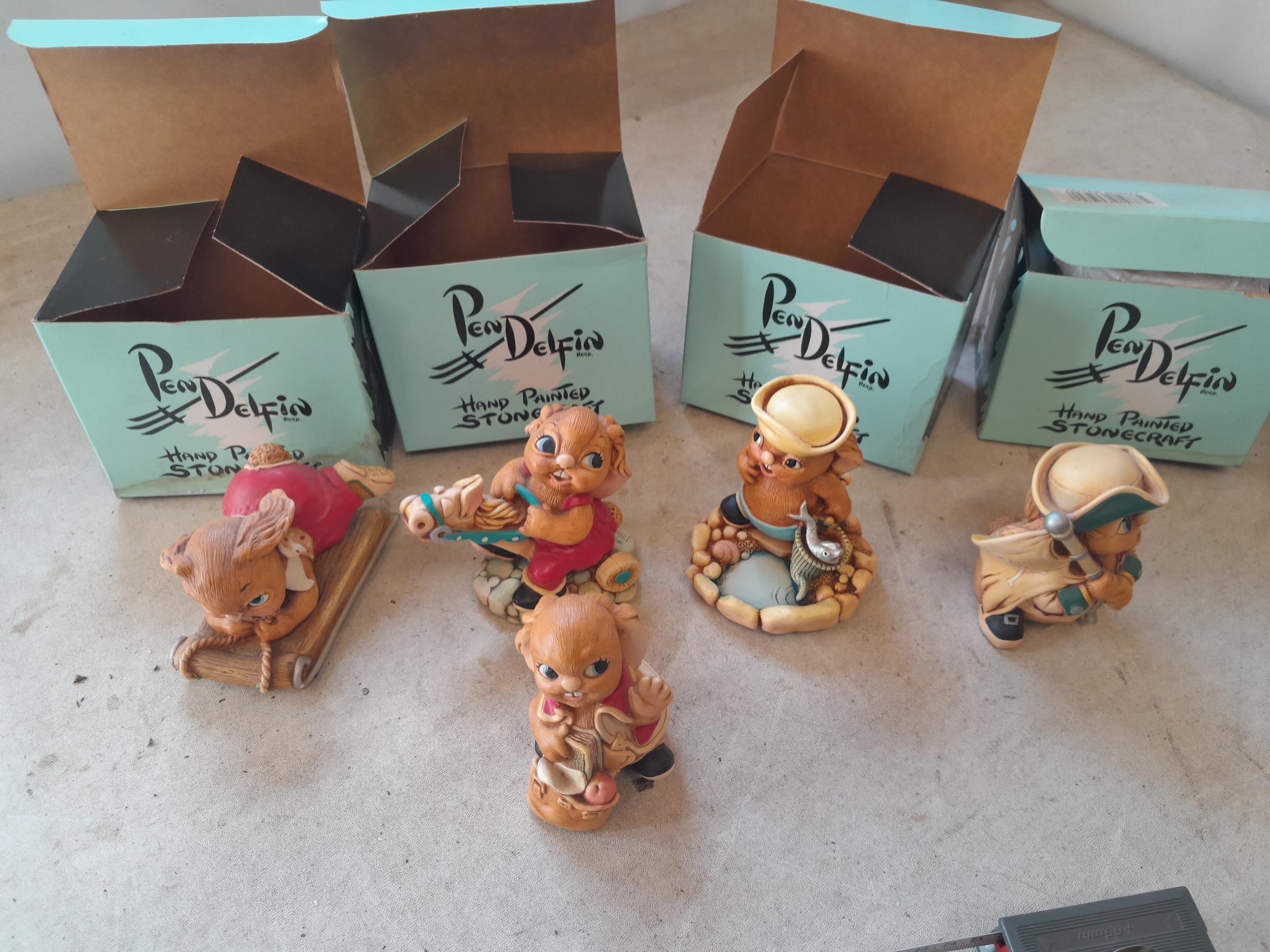 Vintage Pendelfin figures : Captain Musket chip to ear, Shrimpy, New Boy, Sledger, Dobbin
