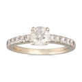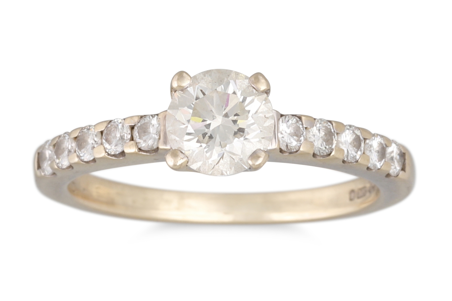 A DIAMOND SOLITAIRE RING, the round brilliant cut diamond to diamond shoulders, mounted in 18ct white gold. Estimated: weight of diamond: 0.60 ct, size K - L