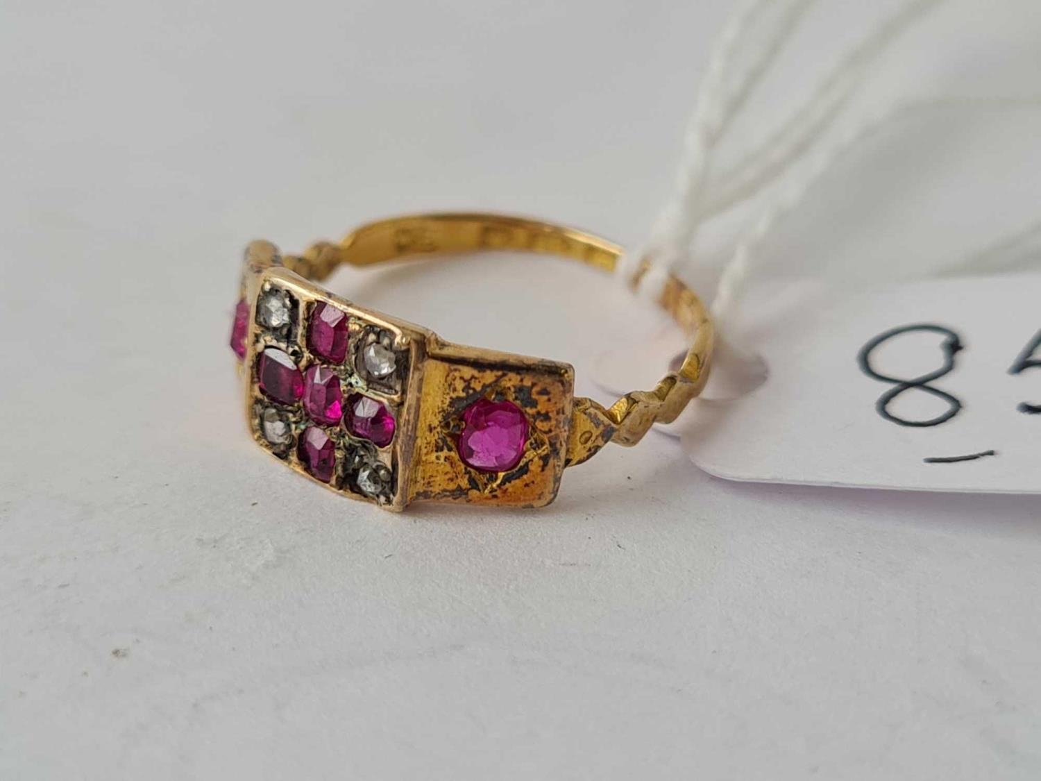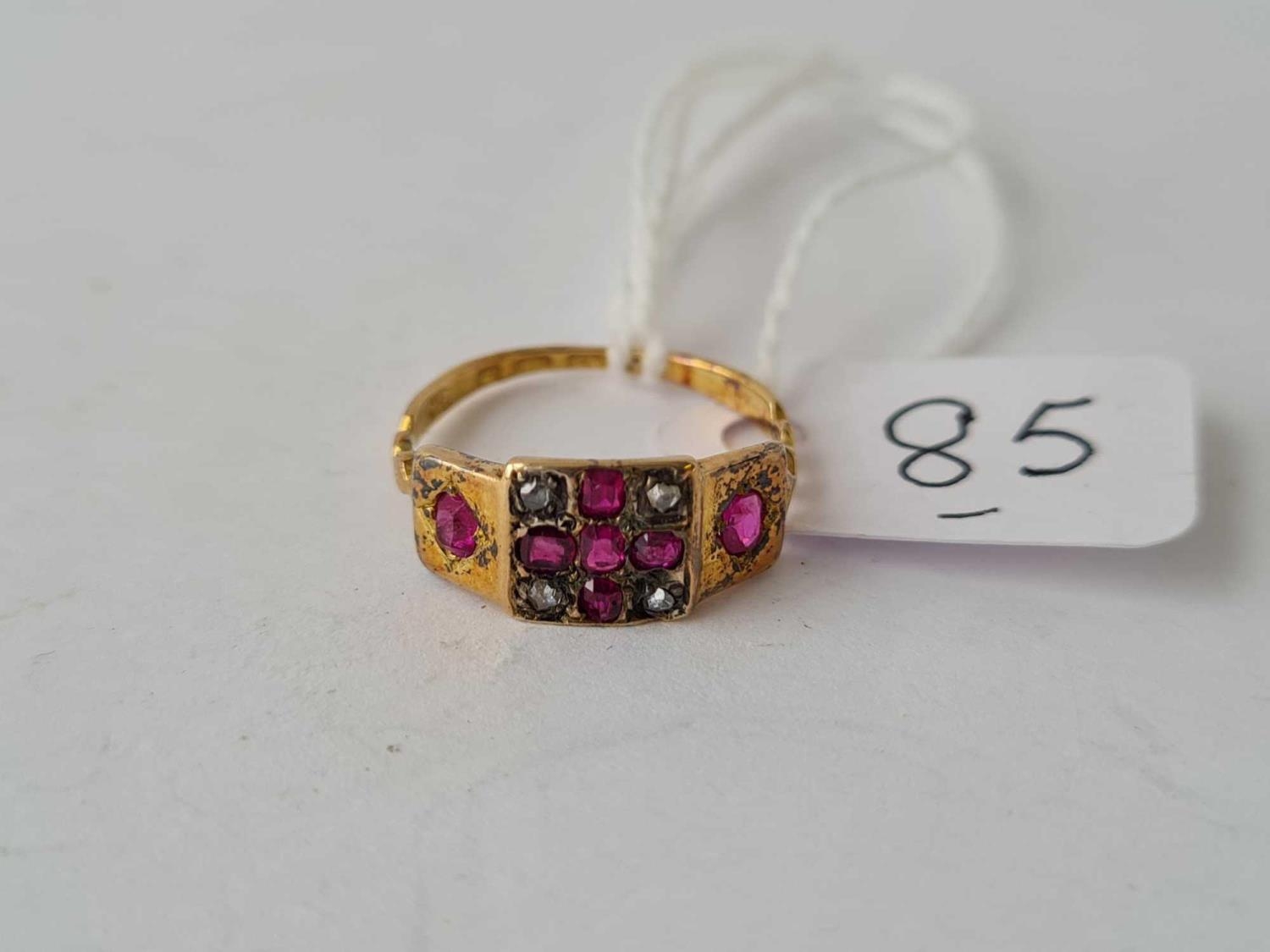 Victorian ruby and diamond 18ct gold ring 2.8g inc