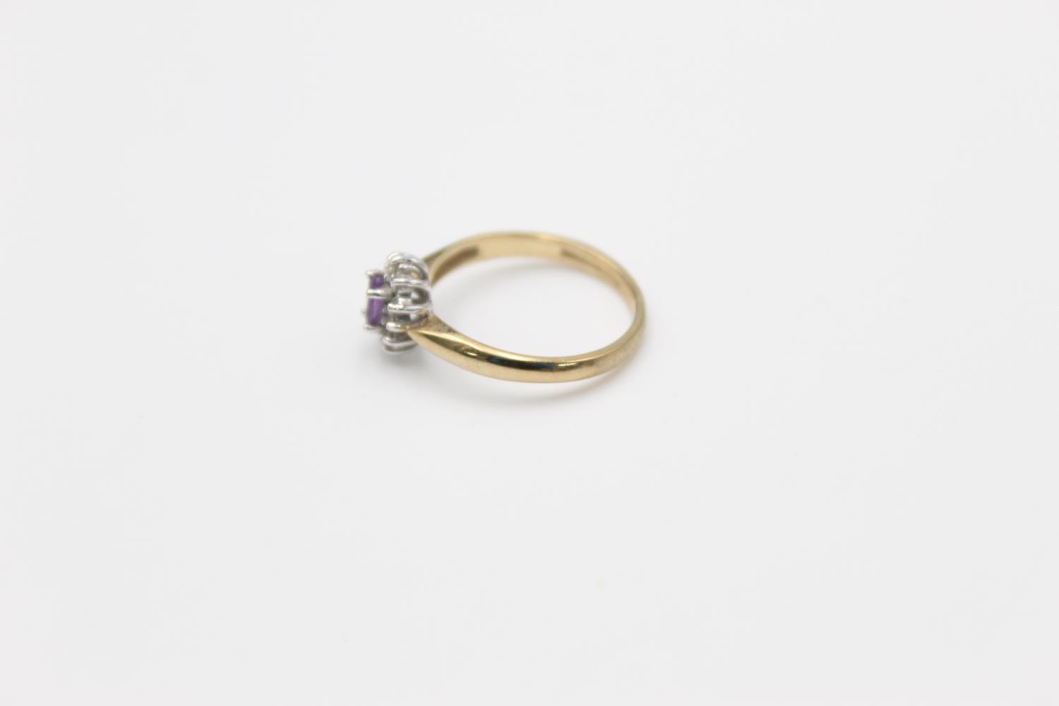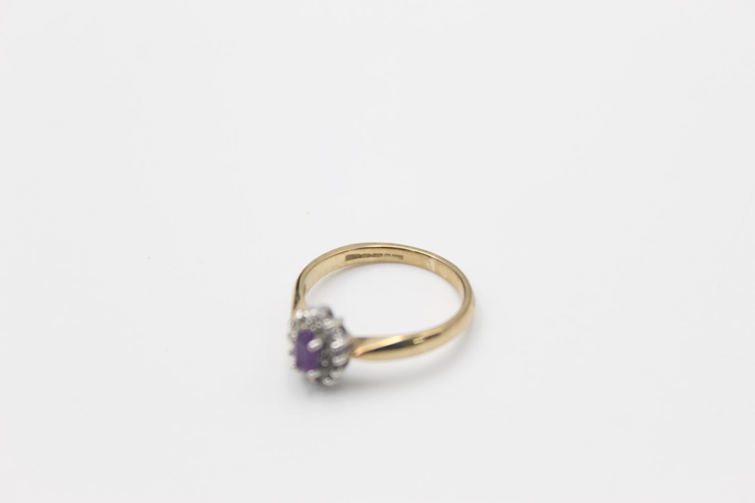 A 9ct gold amethyst diamond halo ring, size L ½ - approx. gross weight 1.9 grams