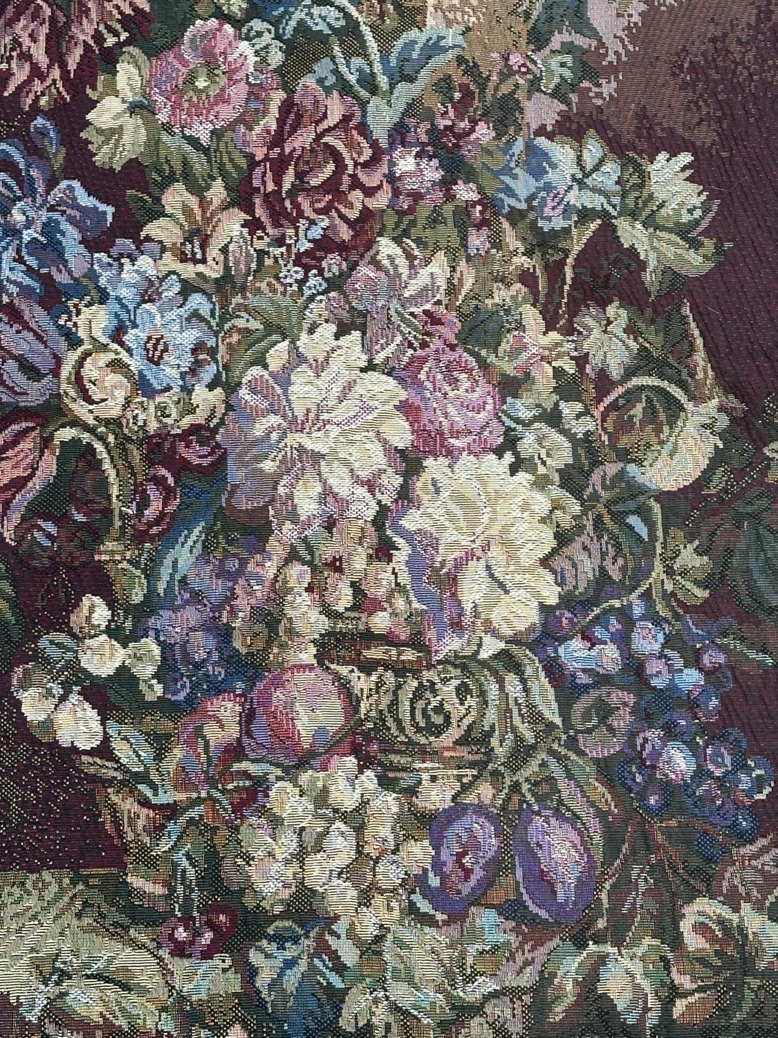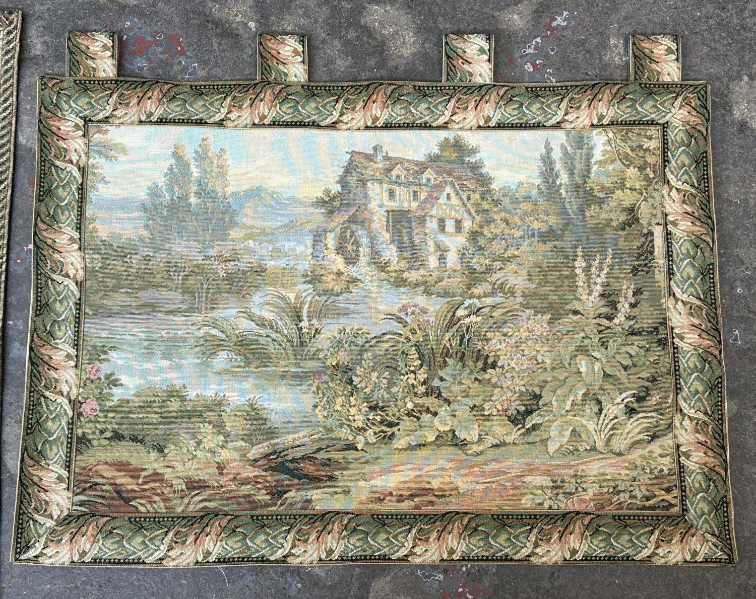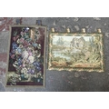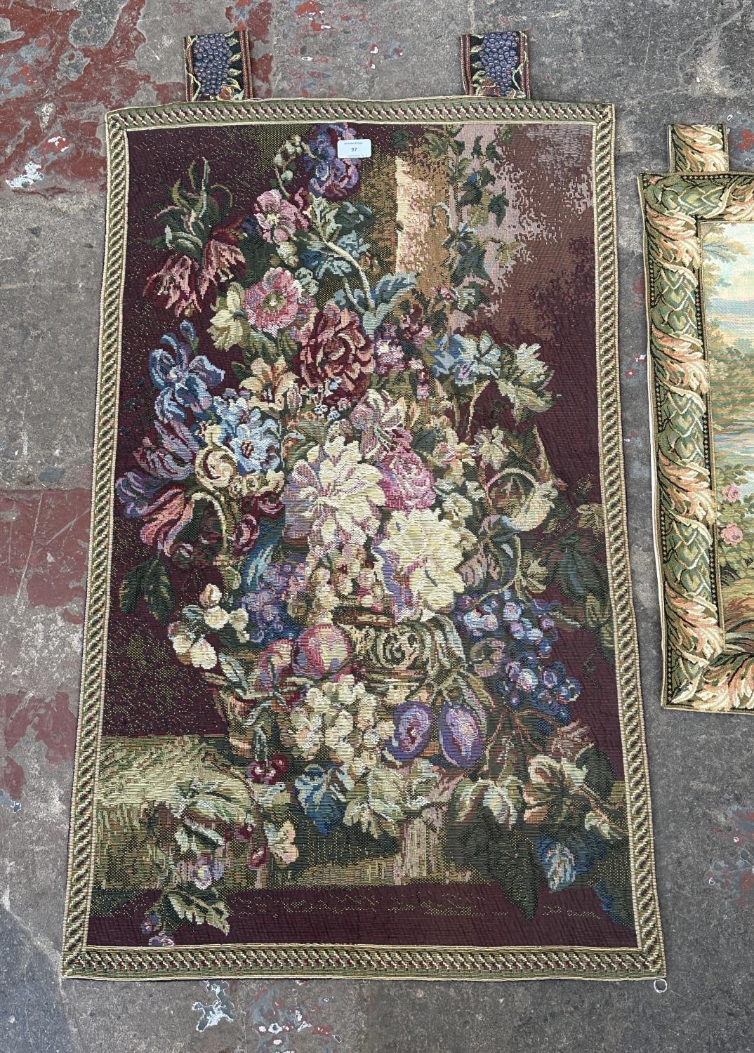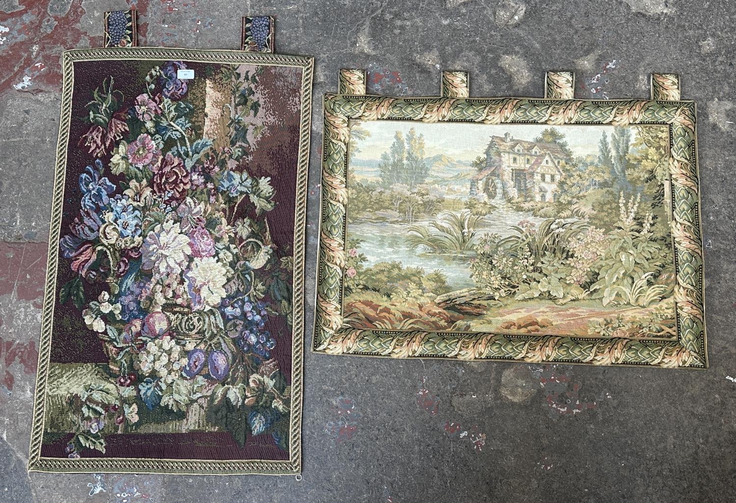 Two late 20th century tapestry wall hangings, one approx. 60cm x 85cm and one approx. 95cm x 58cm