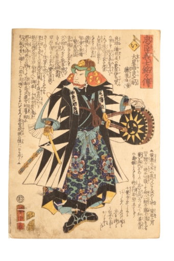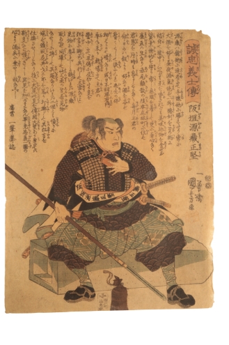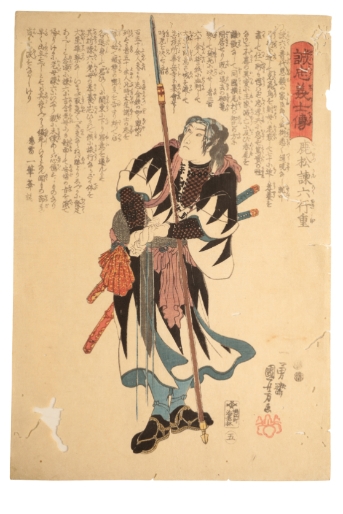 UTAGAWA KUNIYOSHI (1798-1861) AND UTAGAWA YOSHITORA (act. 1840-1880) A collection of prints from the series of The Faithful Samurai mid 19th century, woodblock prints on paper, across three separate sheets, 37.5cm x 25cm; 34cm x 25cm and 25.5cm x 18cm (3).