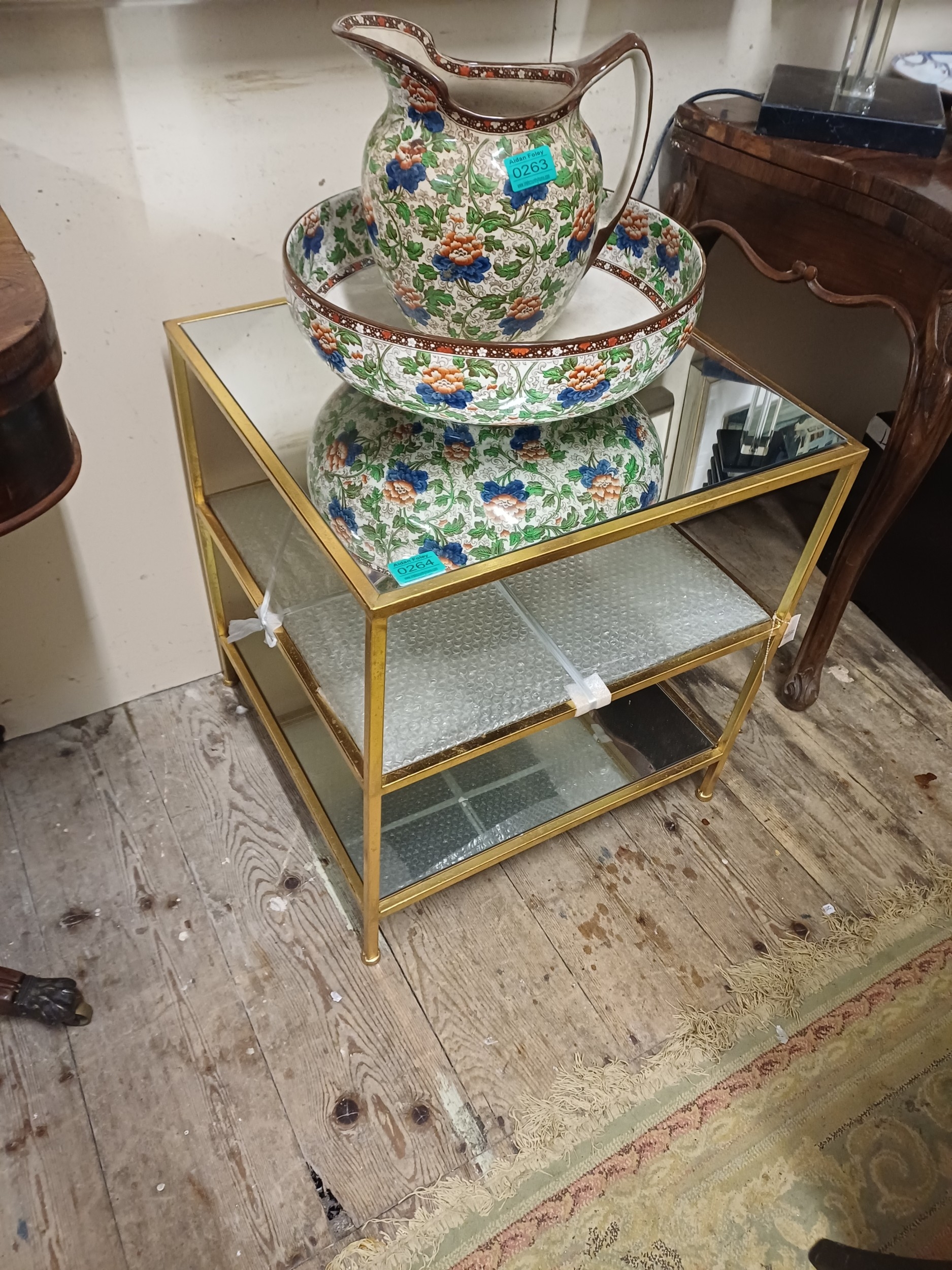 Gilt Metal and Glass 3 Tier Occasional Table (needs attention)