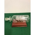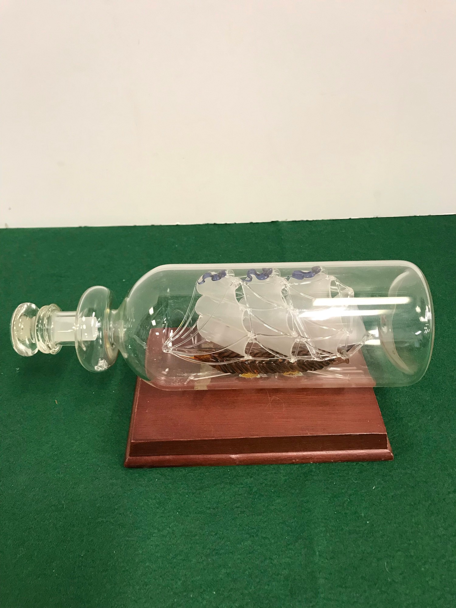 Glass Ship in a Bottle on stand [ mast is loose ]