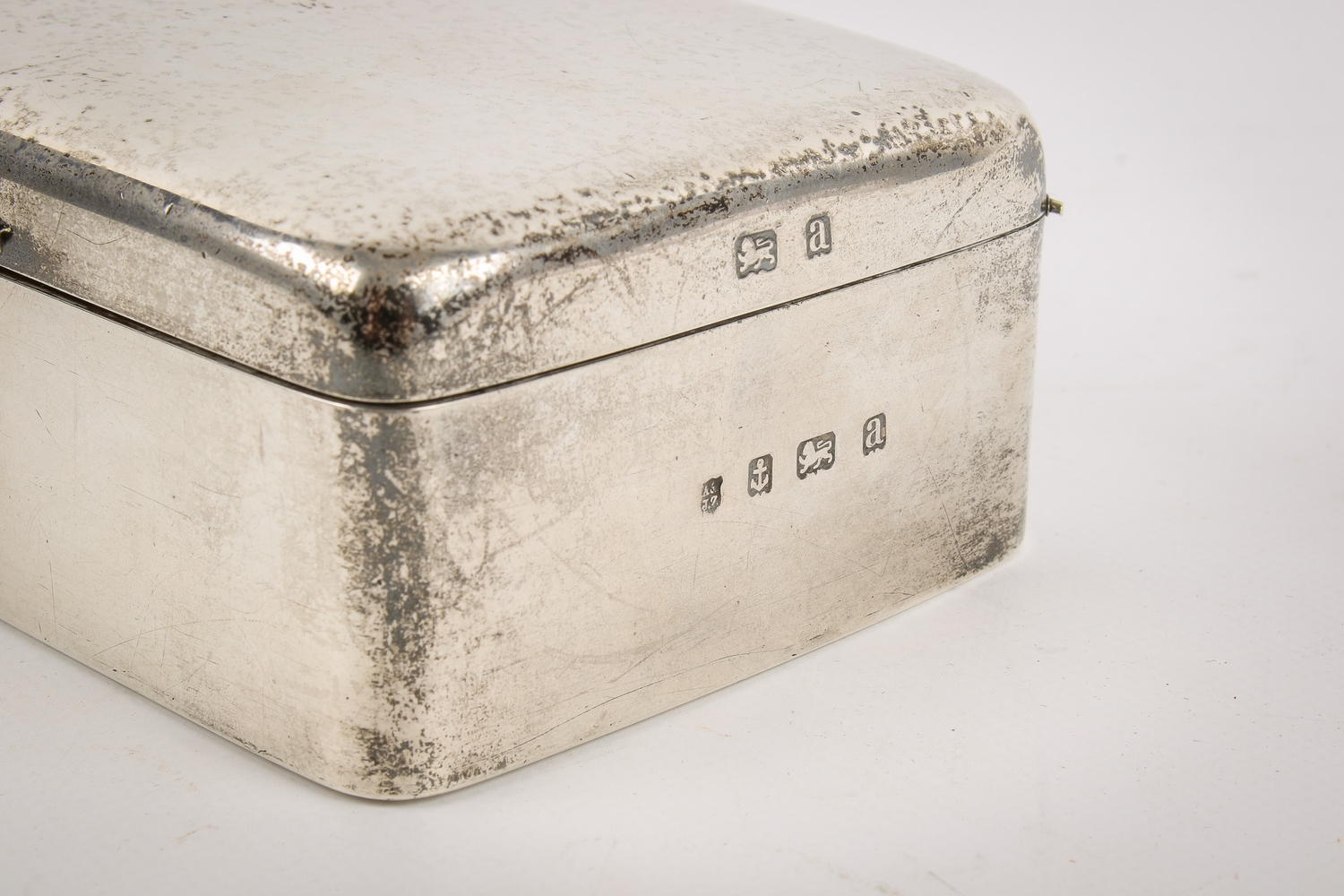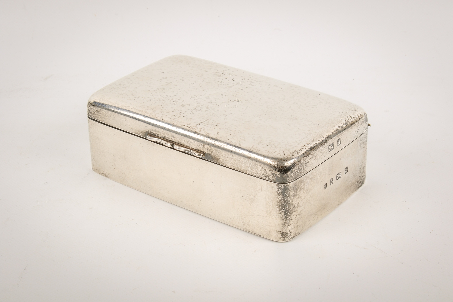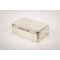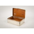 An early 20th century silver cigarette box. Undecorated, with rounded corners and serpentine shallow handle, hallmarks for A & J Zimmerman Ltd, Birmingham 1900, lined with wood, H4.5cm x W13.7cm x D8.3cm, gross weight 433.5g.