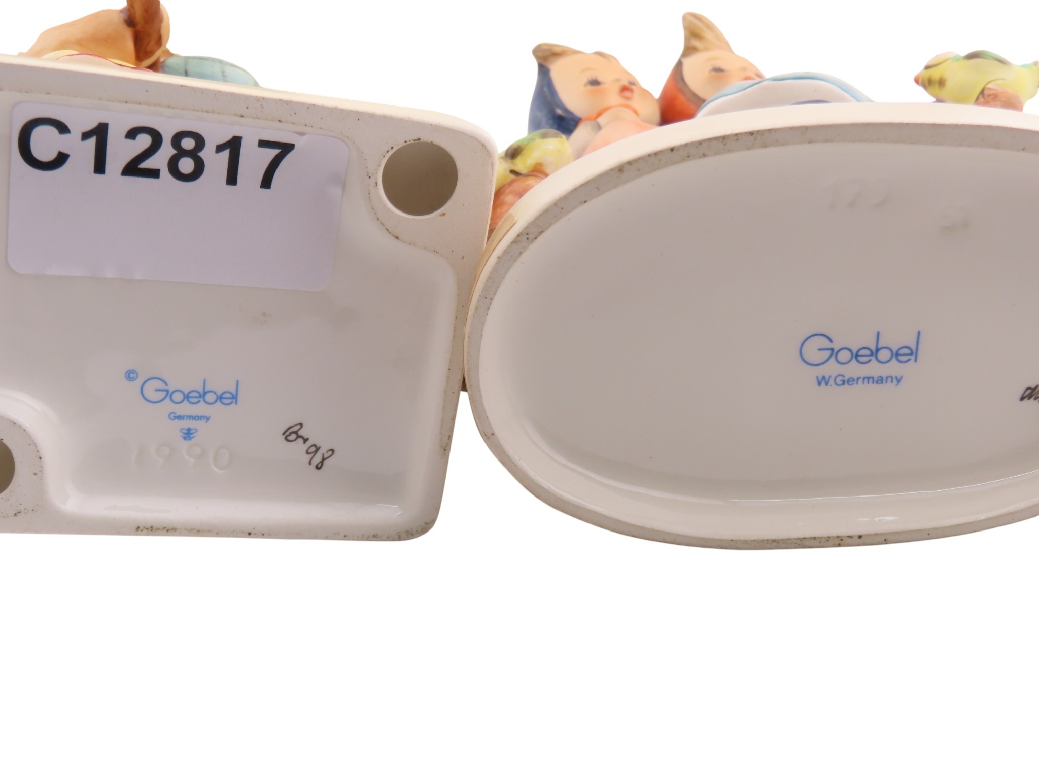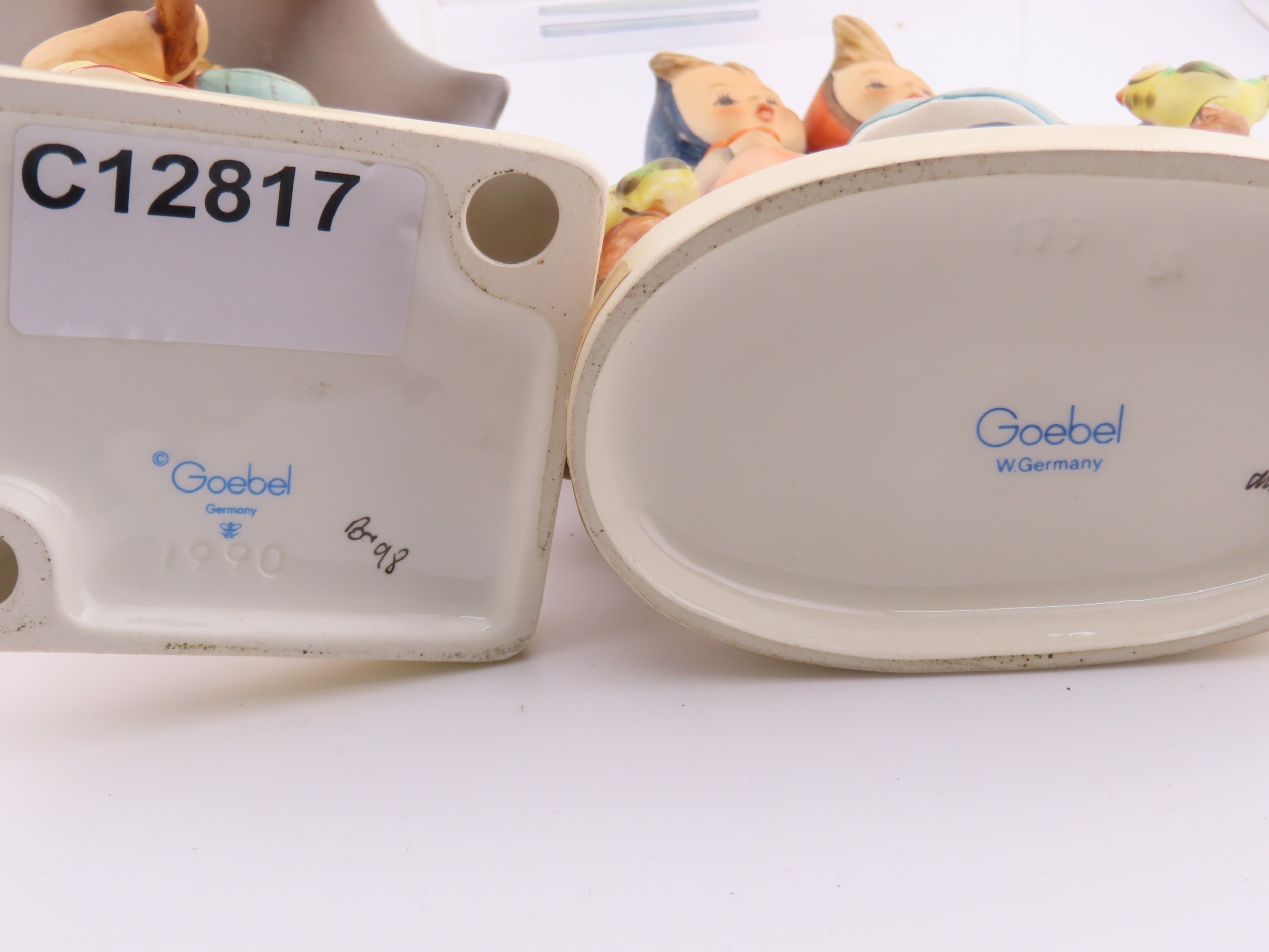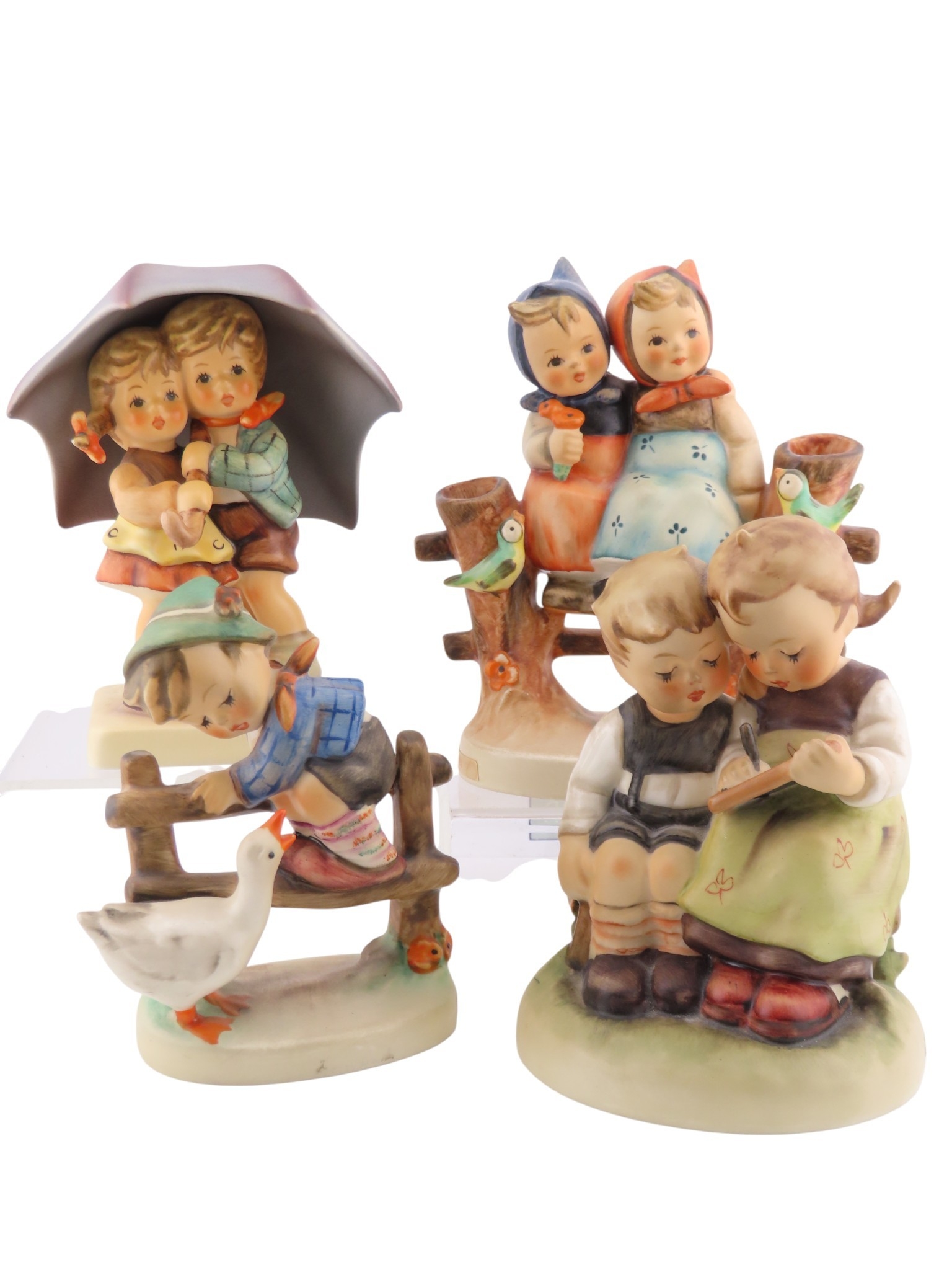 Four Goebel porcelain figures, each modelled as children in playful poses and finished in muted pastel glazes.