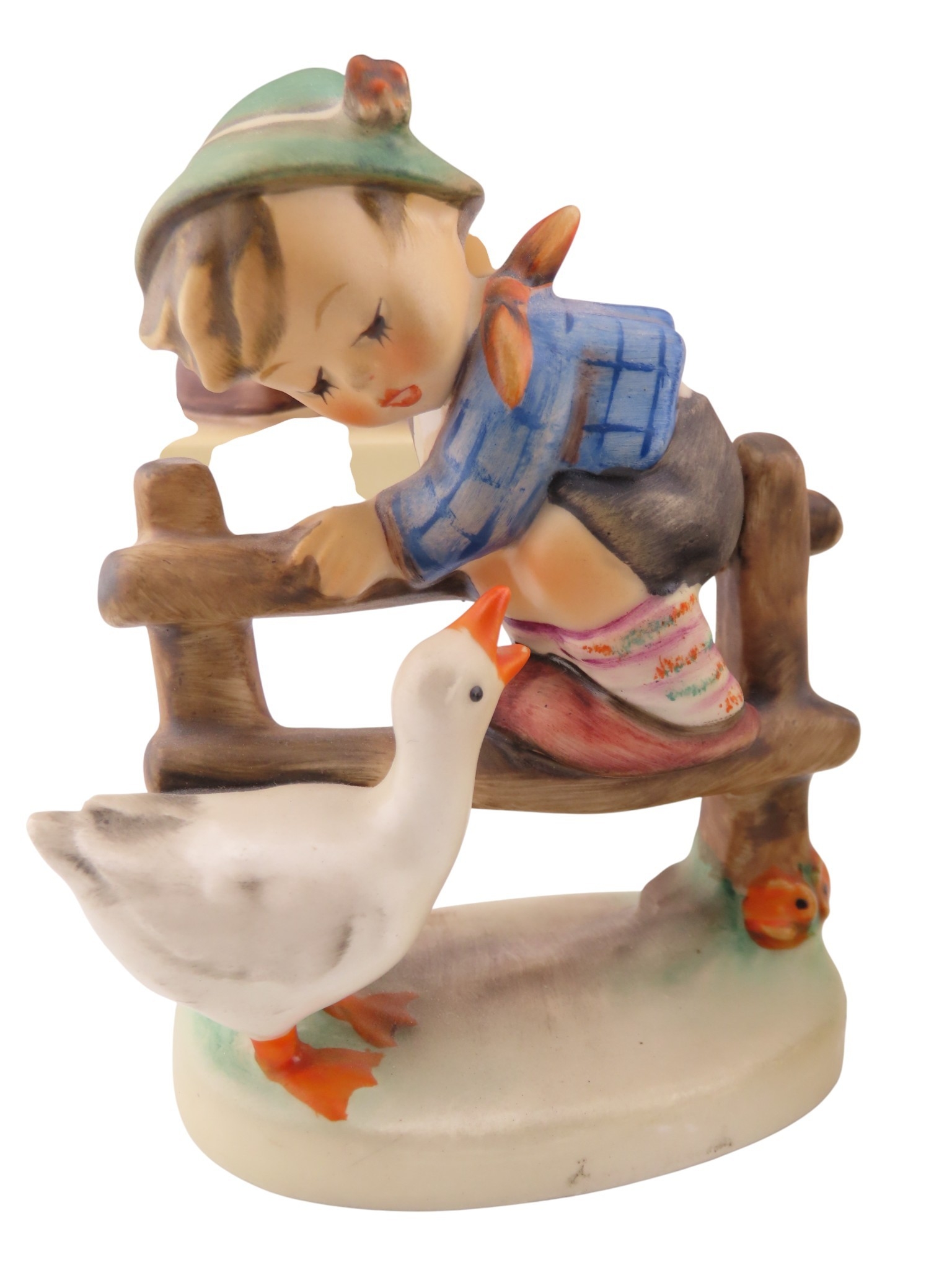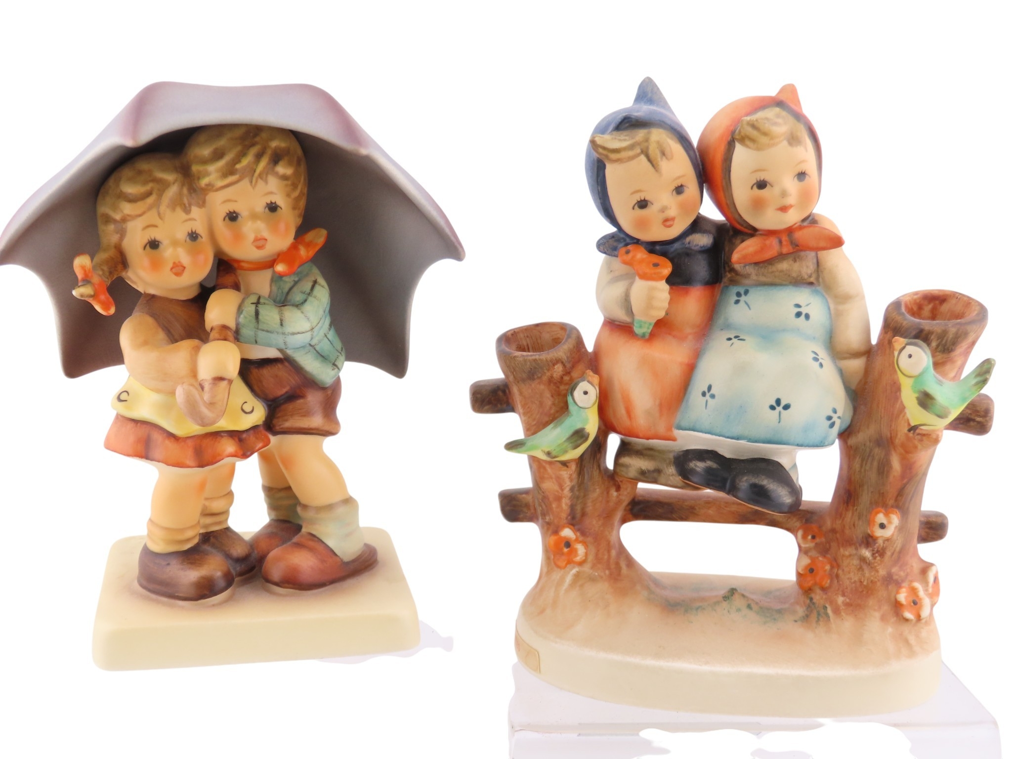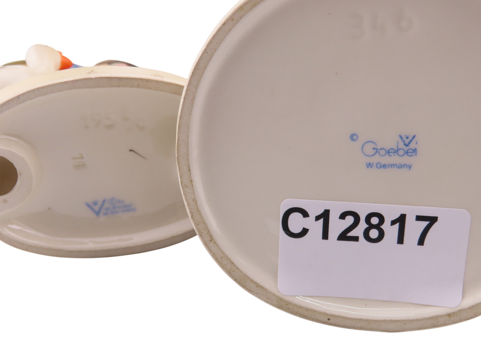 Four Goebel porcelain figures, each modelled as children in playful poses and finished in muted pastel glazes.