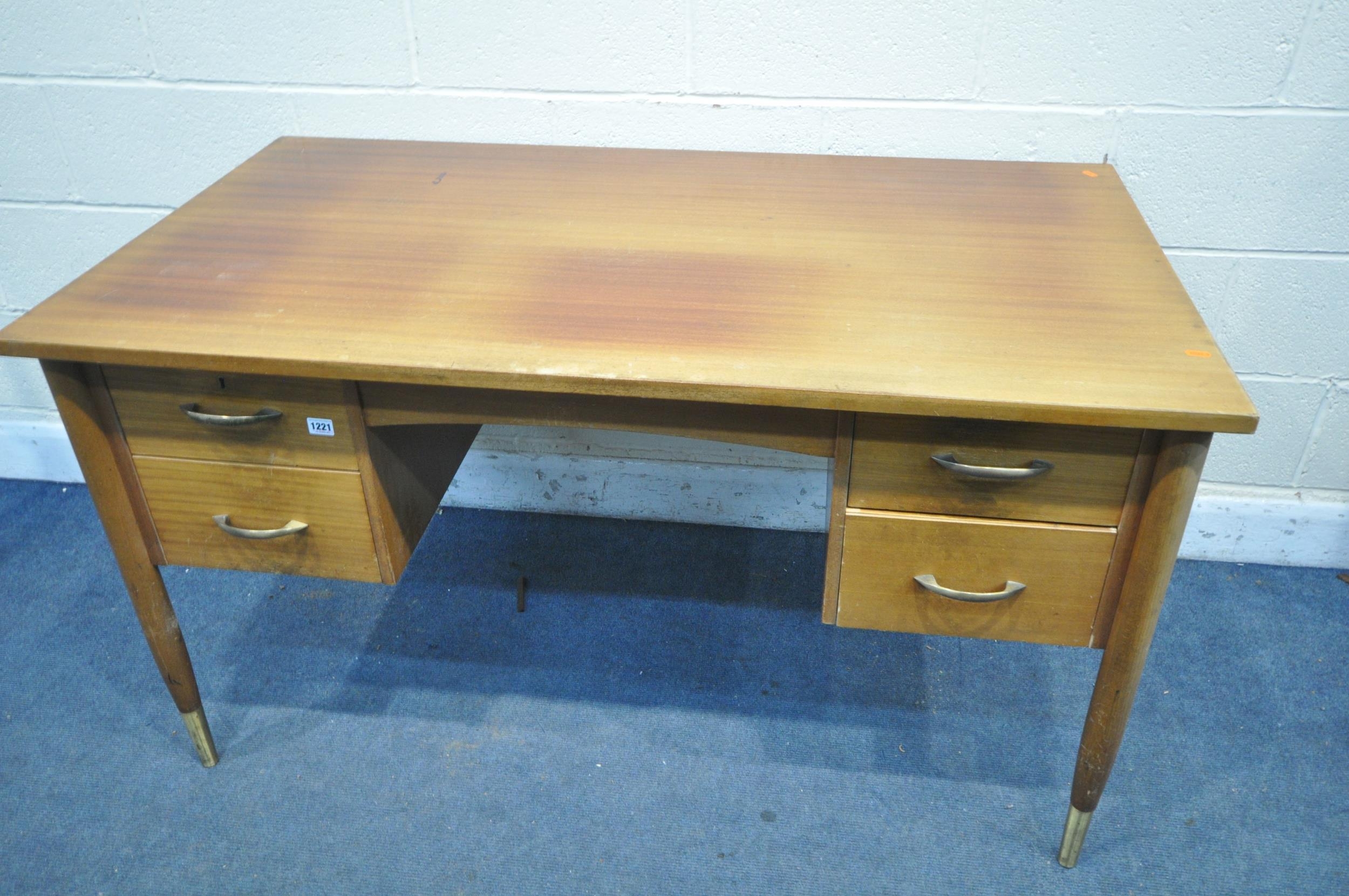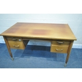 A MID CENTURY TEAK DESK, with four drawers, width 138cm x depth 76cm x height 76cm (condition report: -surface scratches and sun-bleached in places)