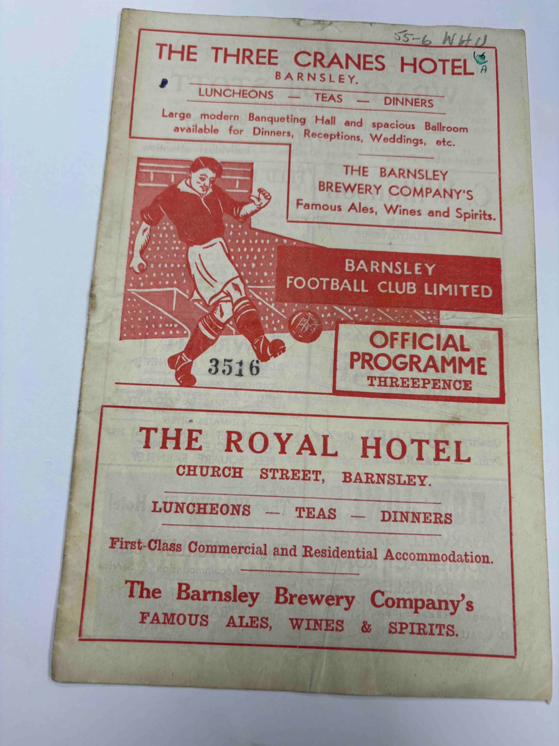11/2/56 BARNSLEY v West Ham couple of slight marks, staple beginning to rust (1)