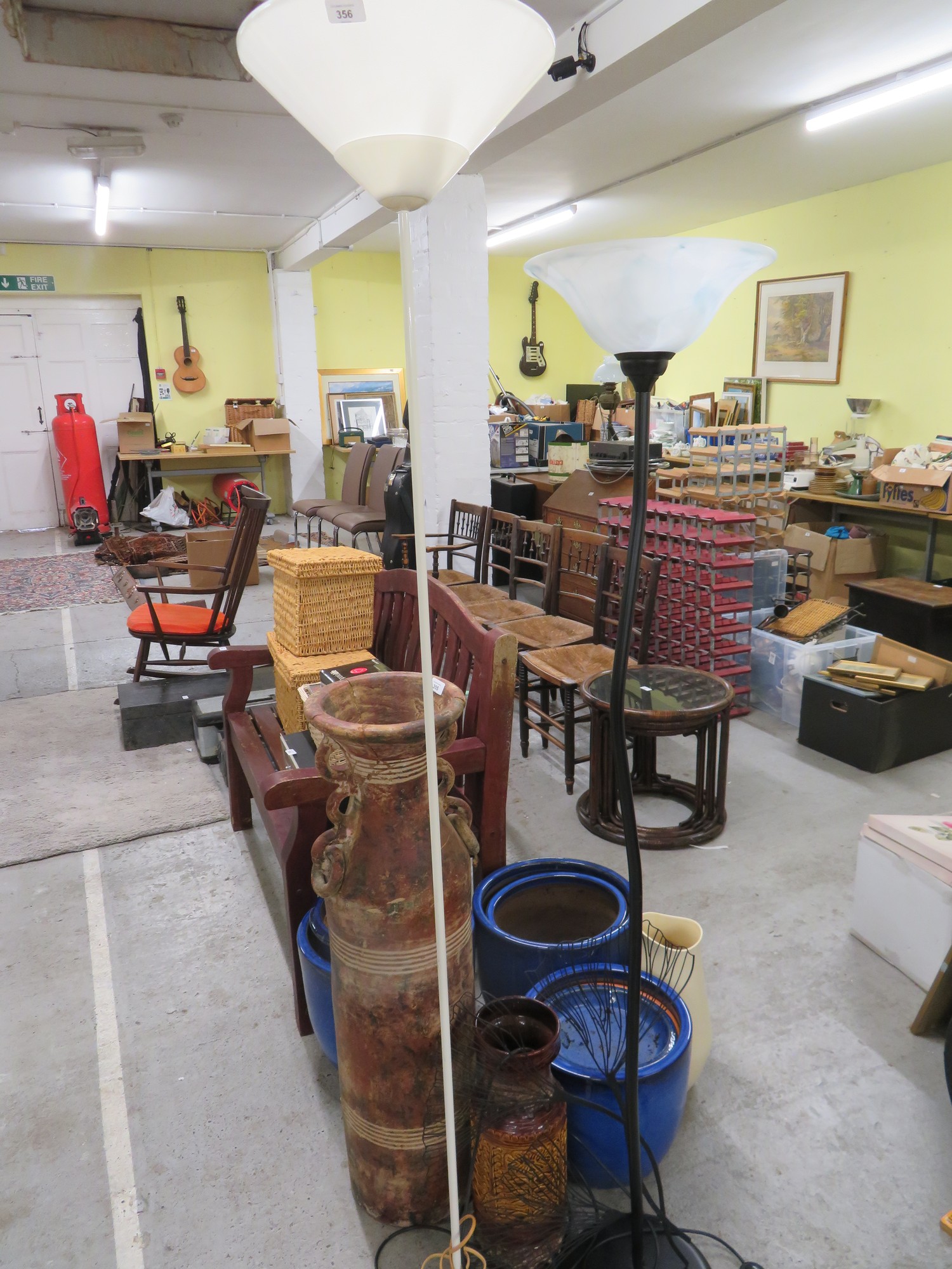 Two floor standing lamps, plus a wall decoration