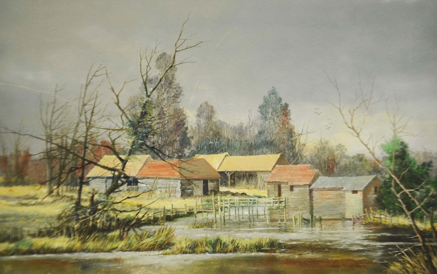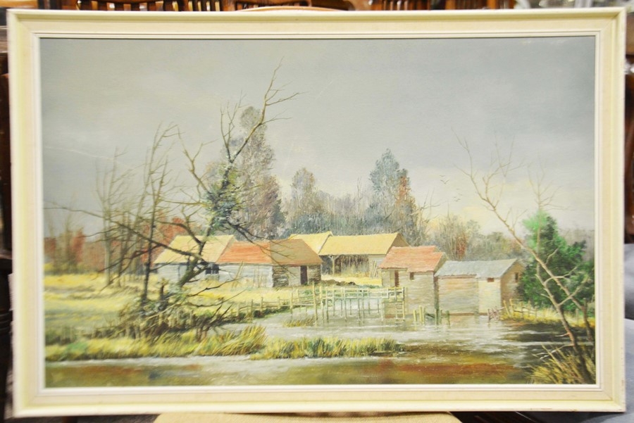 W. Dunn (20th century), Mill Stream, oil on board, signed, 52cm x 82cm, framed