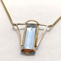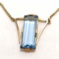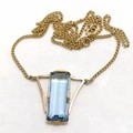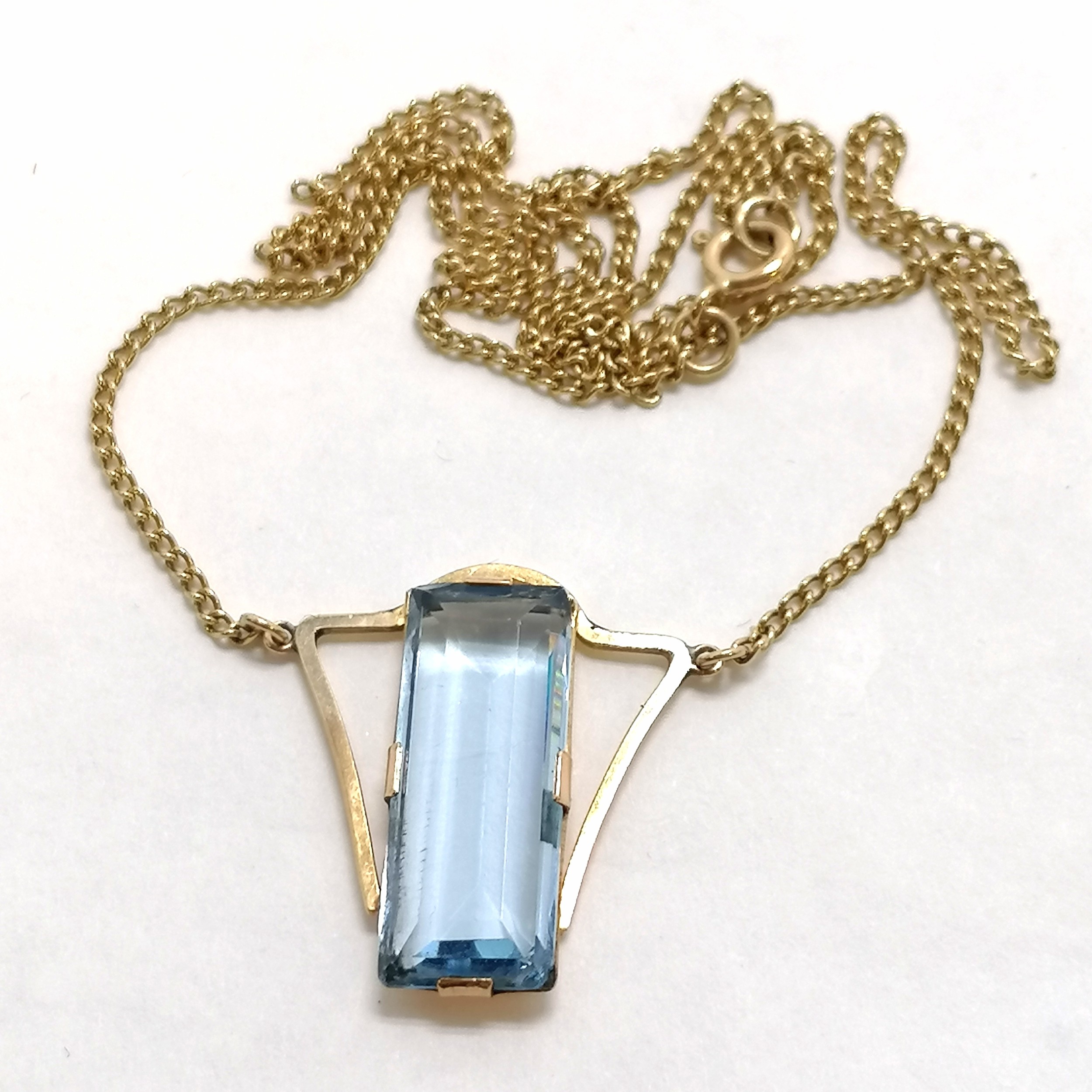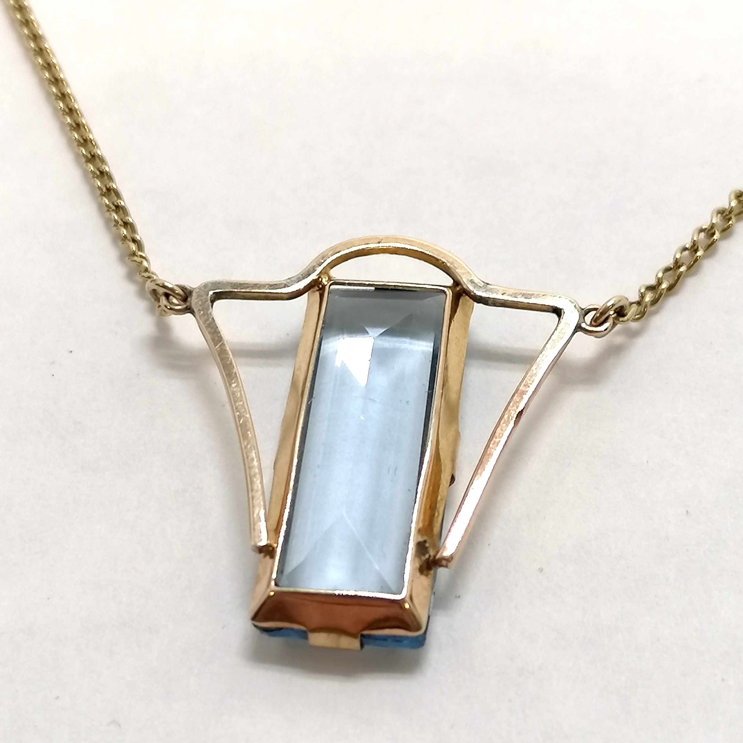 9ct marked gold Art Nouveau style blue stone pendant on a chain - 44cm long & 6.5g total weight