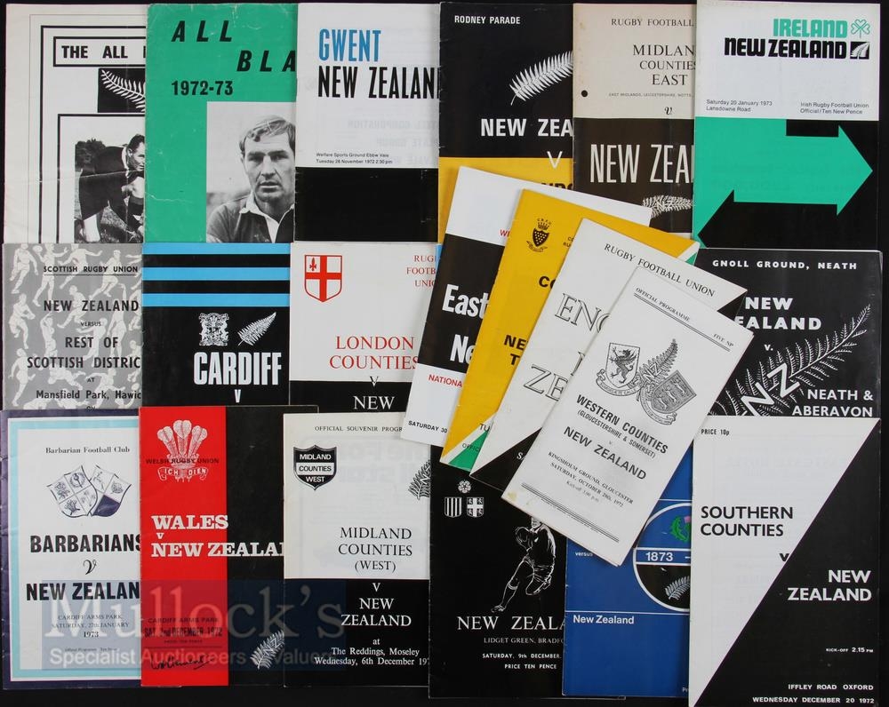 1972-3 NZ All Blacks Tour Rugby Programmes etc (22): No fewer than twenty issues, inc all tests in the UK & Ireland, from this controversial tour; plus two different souvenir picture brochures. Fine chance to start or fill a collection.VG